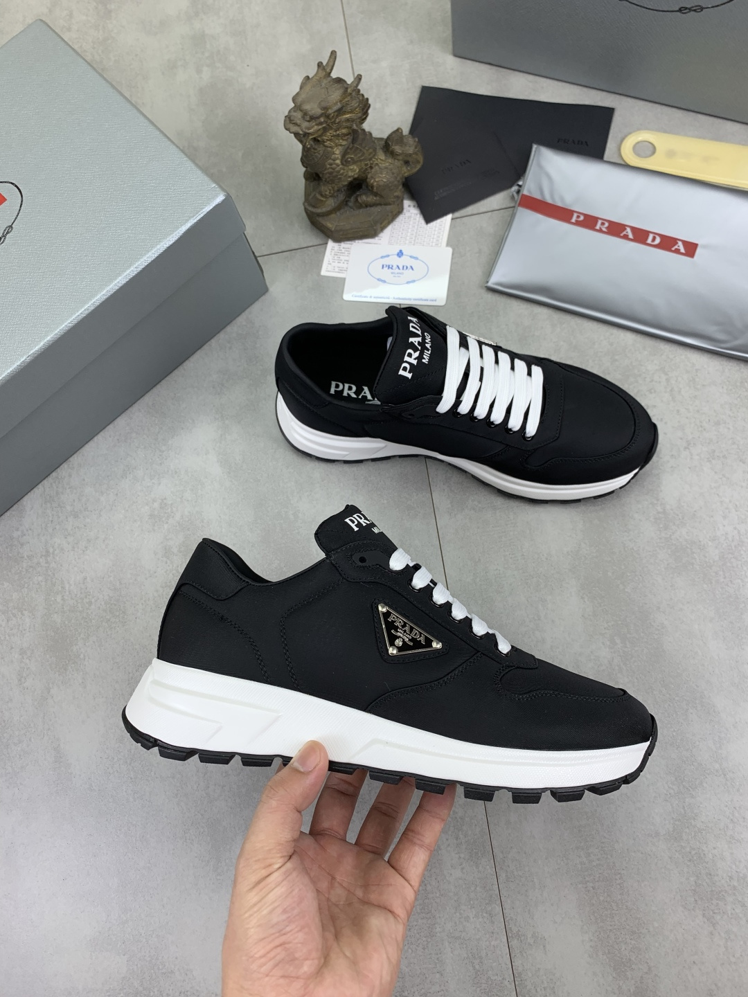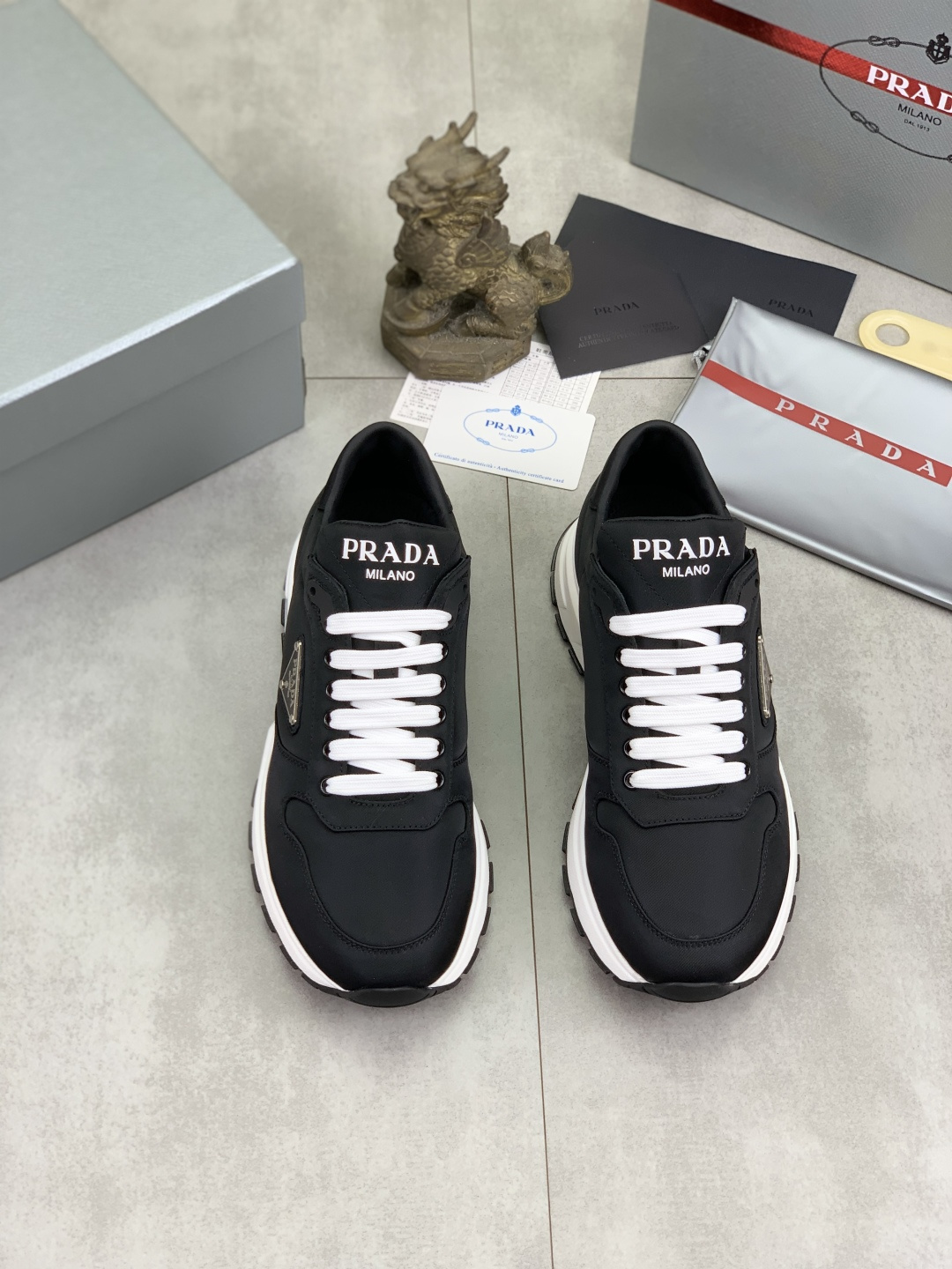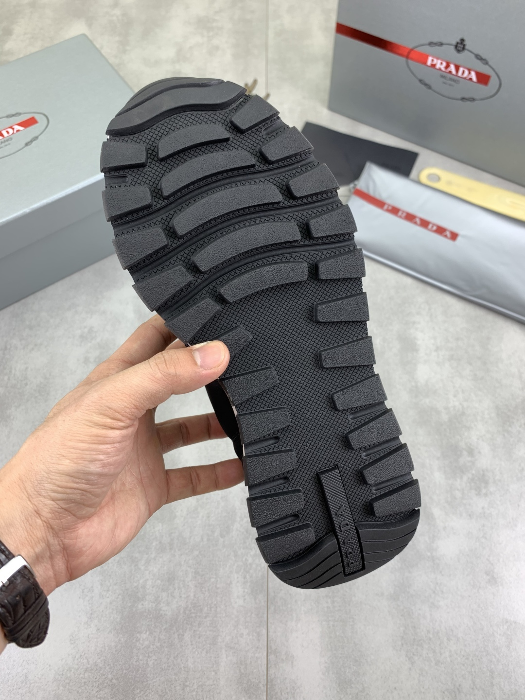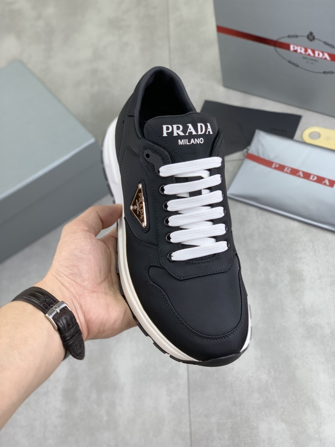 This shoes is AAAAA 1:1 quality (superb). Materials used are identical to the original ones. Prada trademark marks are indistinguishable to the authentic. Photos take by actual shoes, what you receive will be 100% same with our photos.