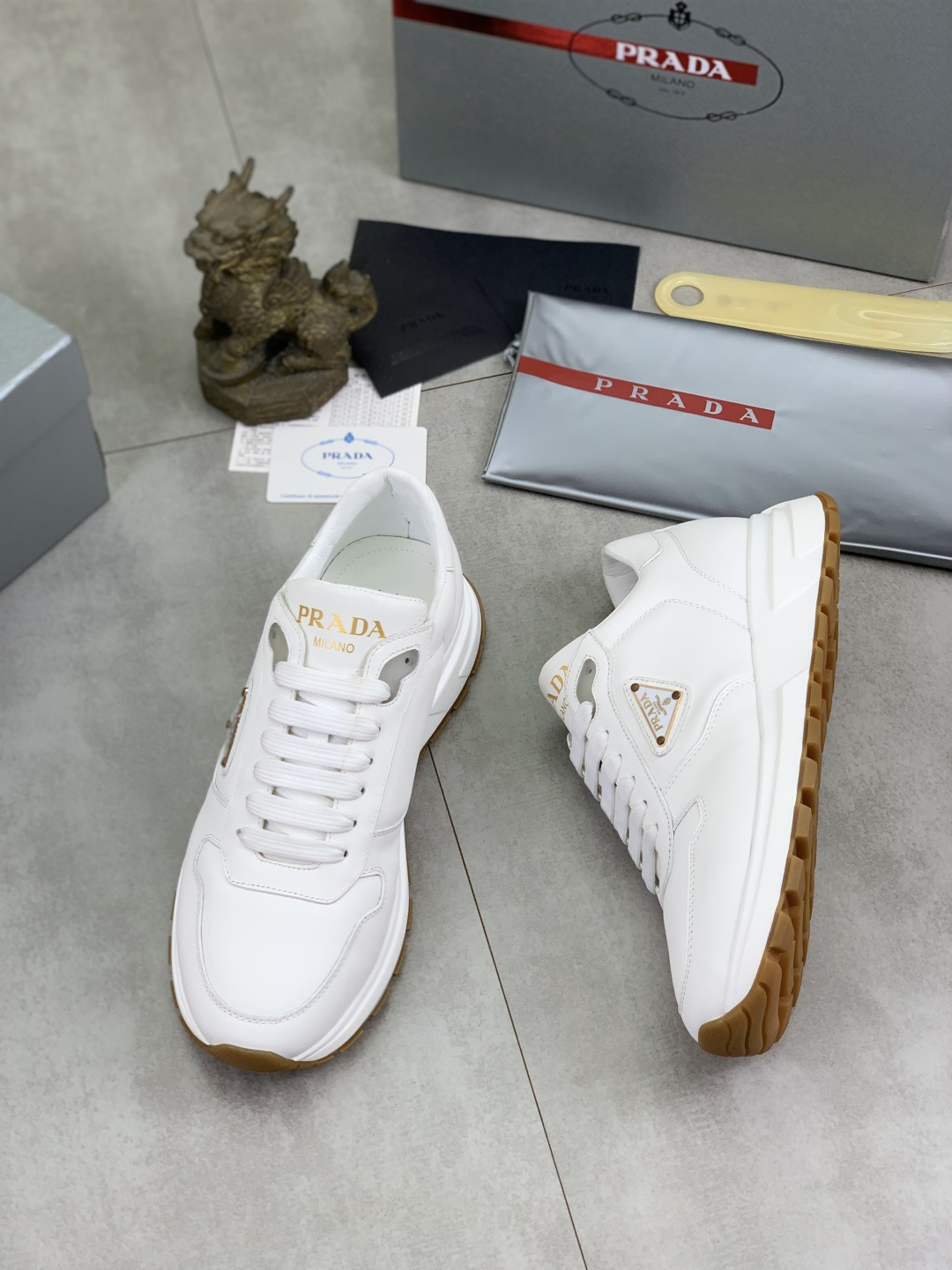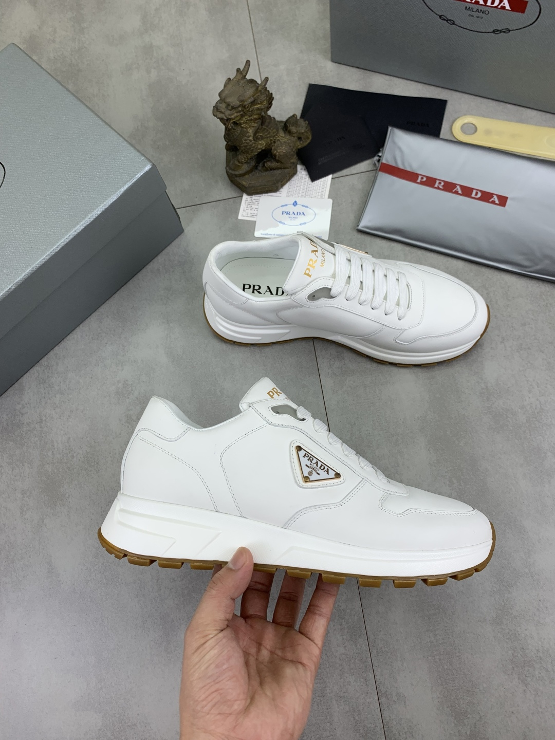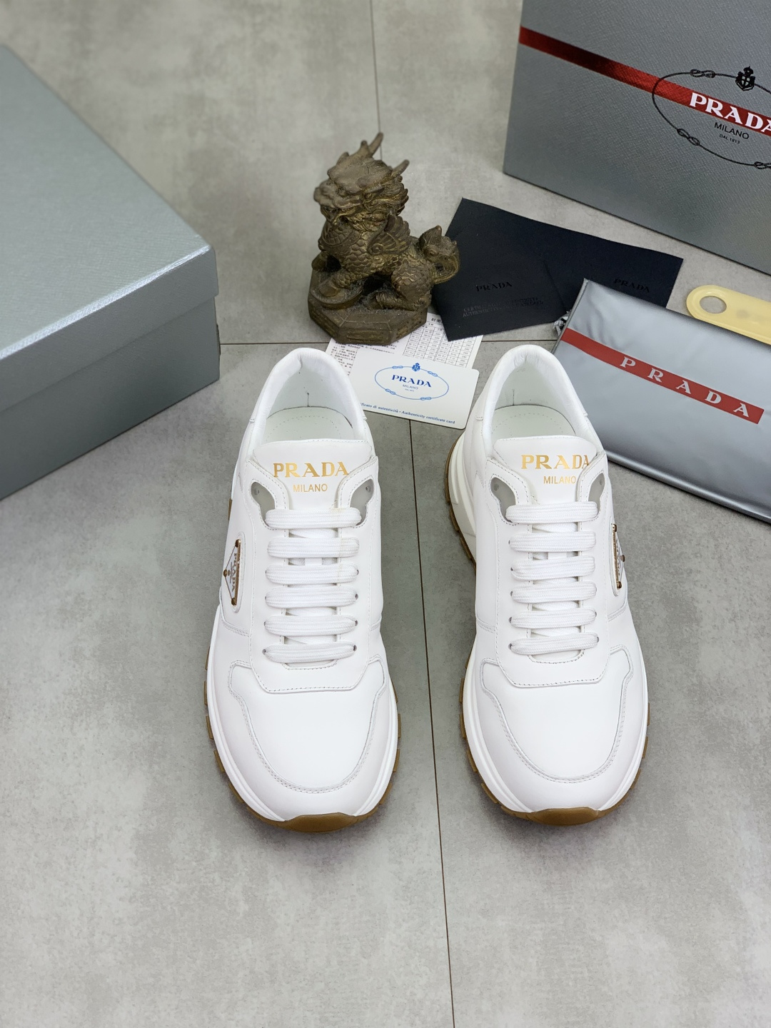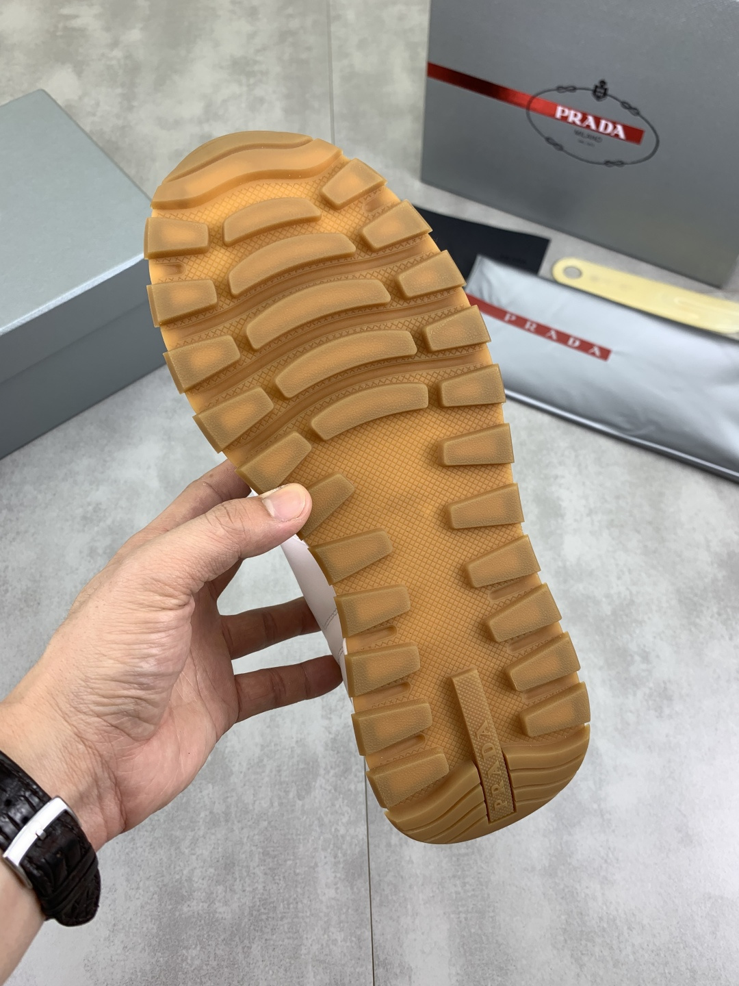 This shoes is AAAAA 1:1 quality (superb). Materials used are identical to the original ones. Prada trademark marks are indistinguishable to the authentic. Photos take by actual shoes, what you receive will be 100% same with our photos.