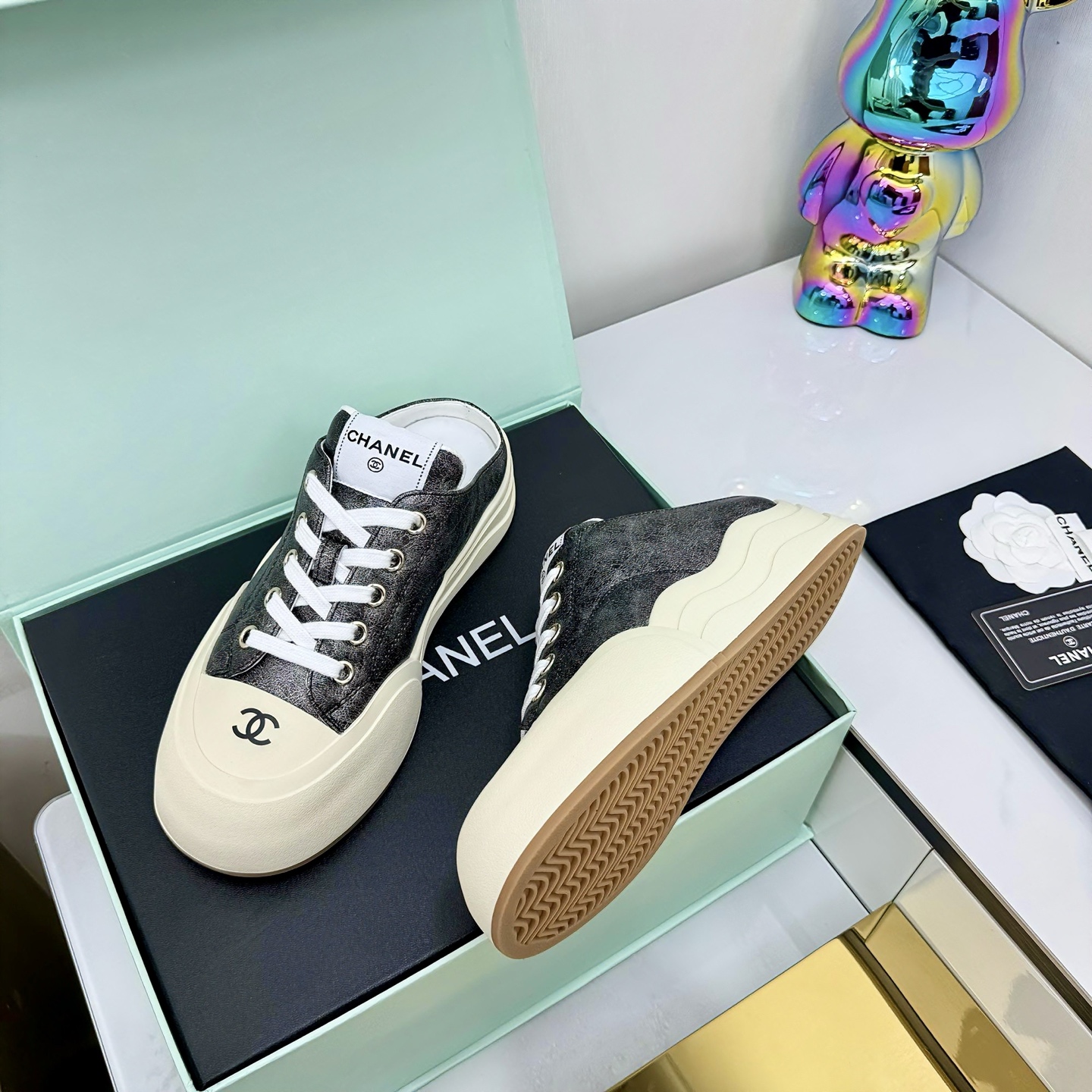 This shoes is AAAAA 1:1 quality (superb). Materials used are identical to the original ones. Chanel trademark marks are indistinguishable to the authentic. Photos take by actual shoes, what you receive will be 100% same with our photos.