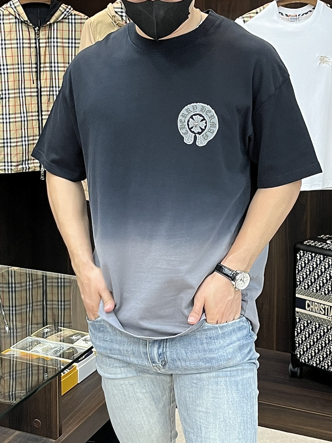 NO:3087472. The clothes is from Chrome Hearts designer.