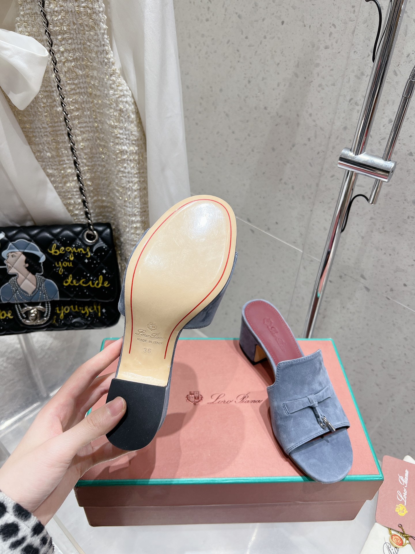 NO:3098204. The shoes is from Loro Piana designer.