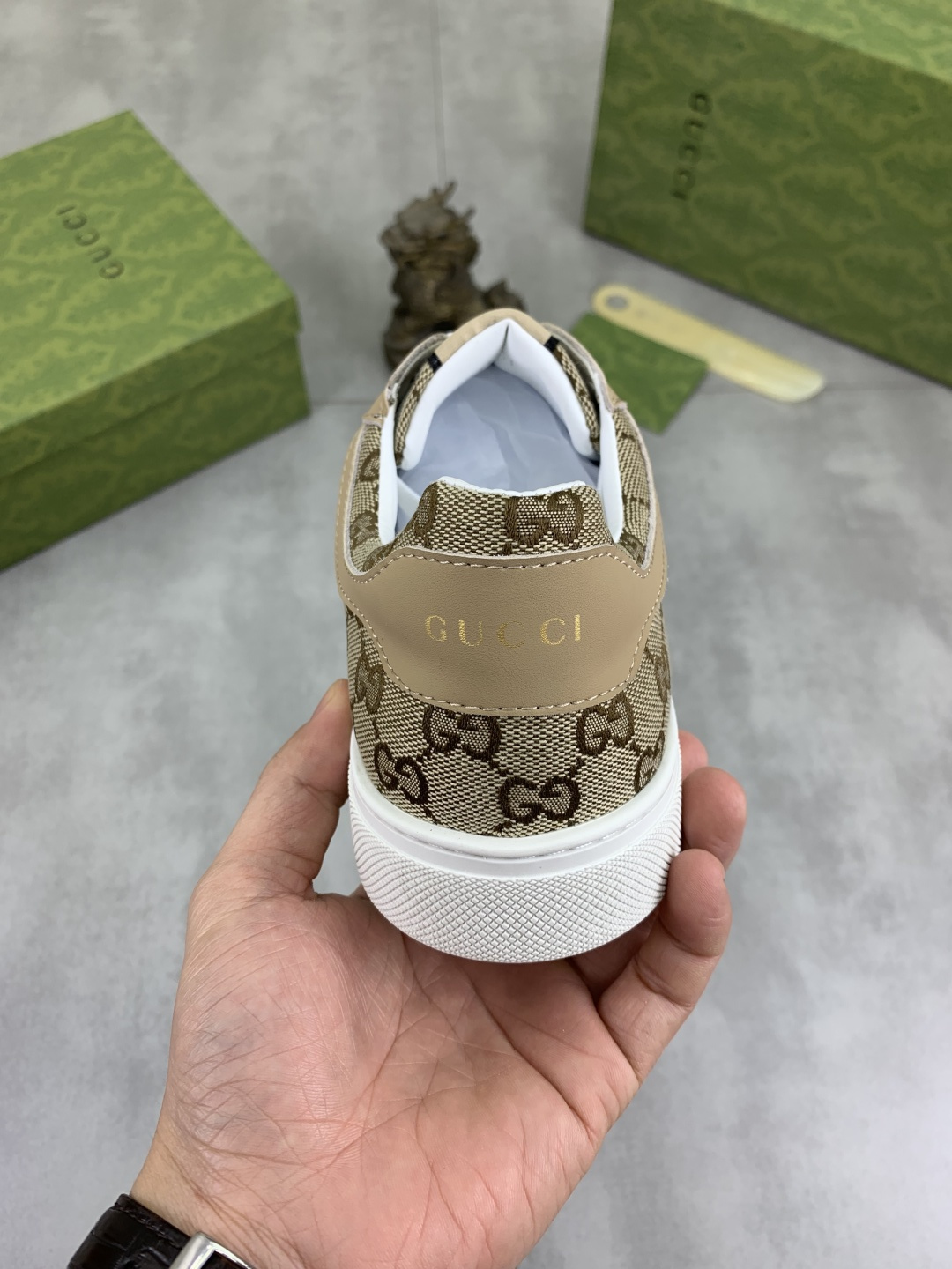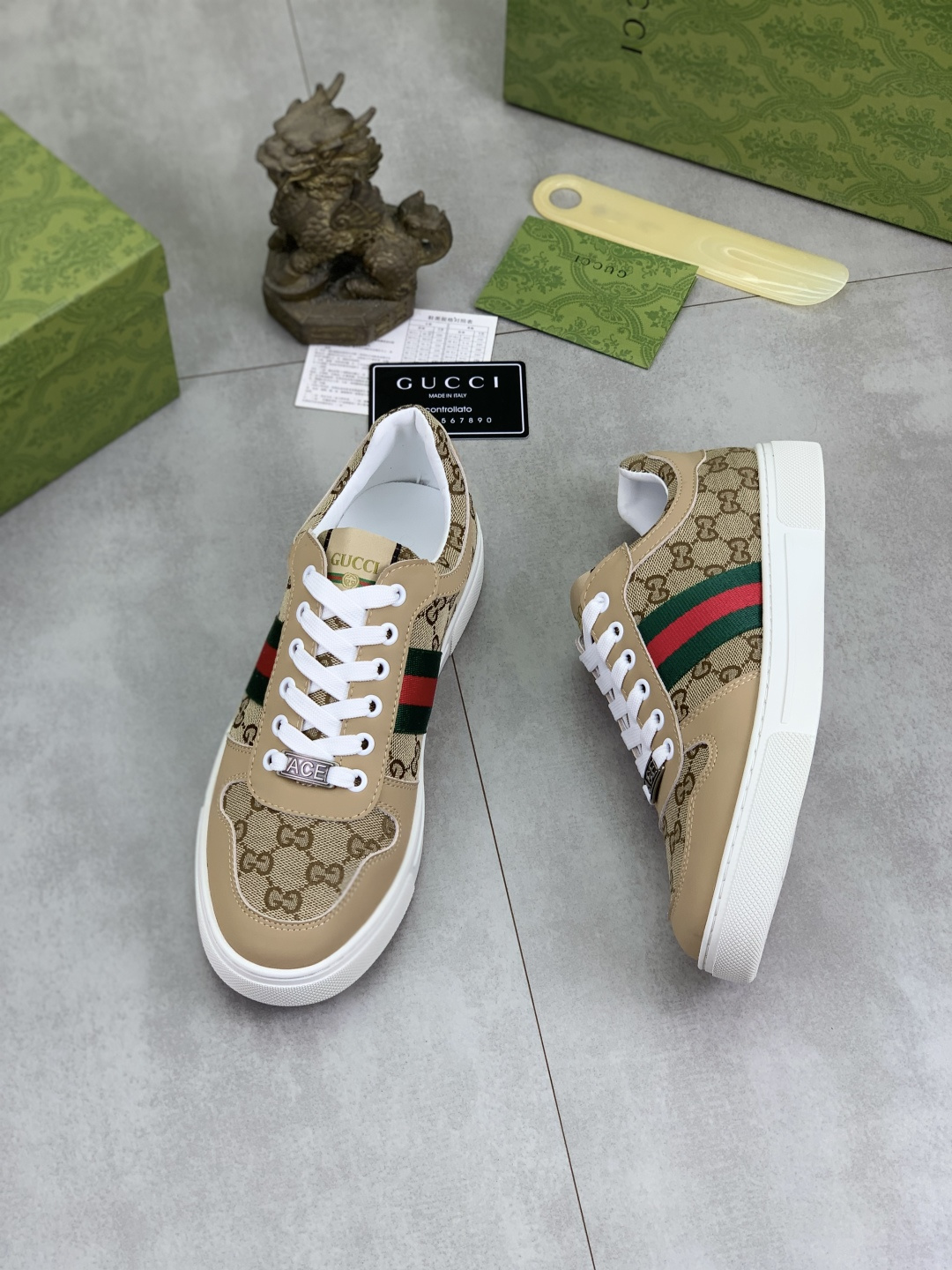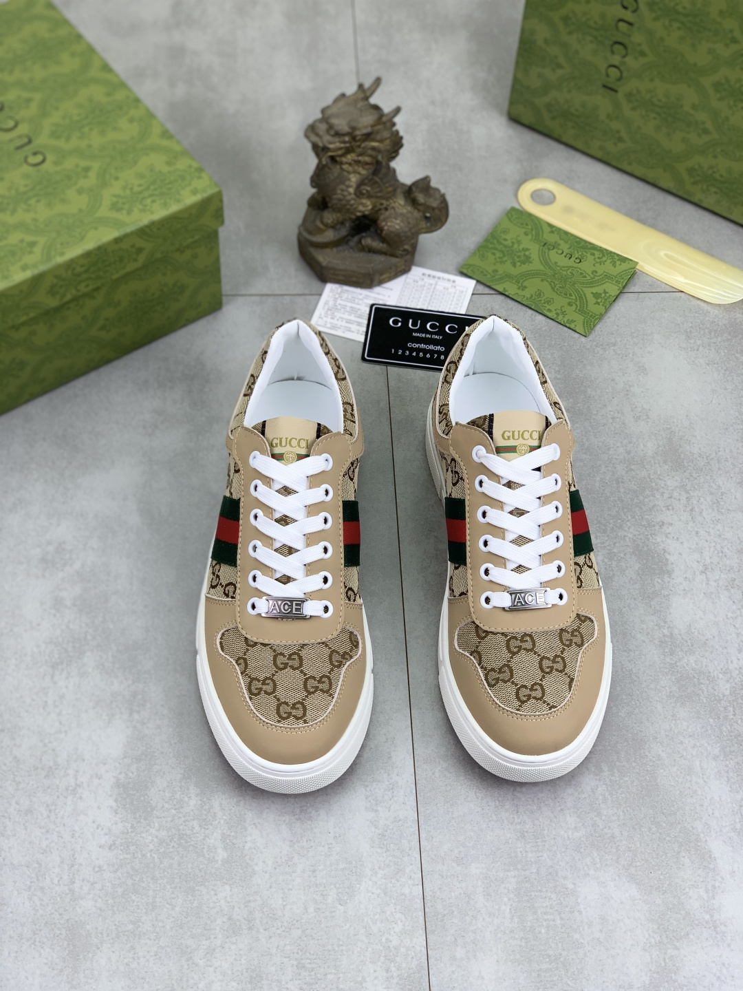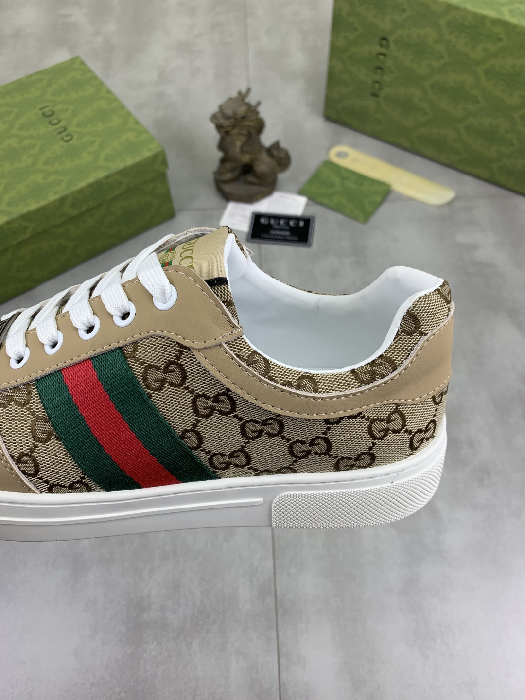 This shoes is AAAAA 1:1 quality (superb). Materials used are identical to the original ones. Gucci trademark marks are indistinguishable to the authentic. Photos take by actual shoes, what you receive will be 100% same with our photos.