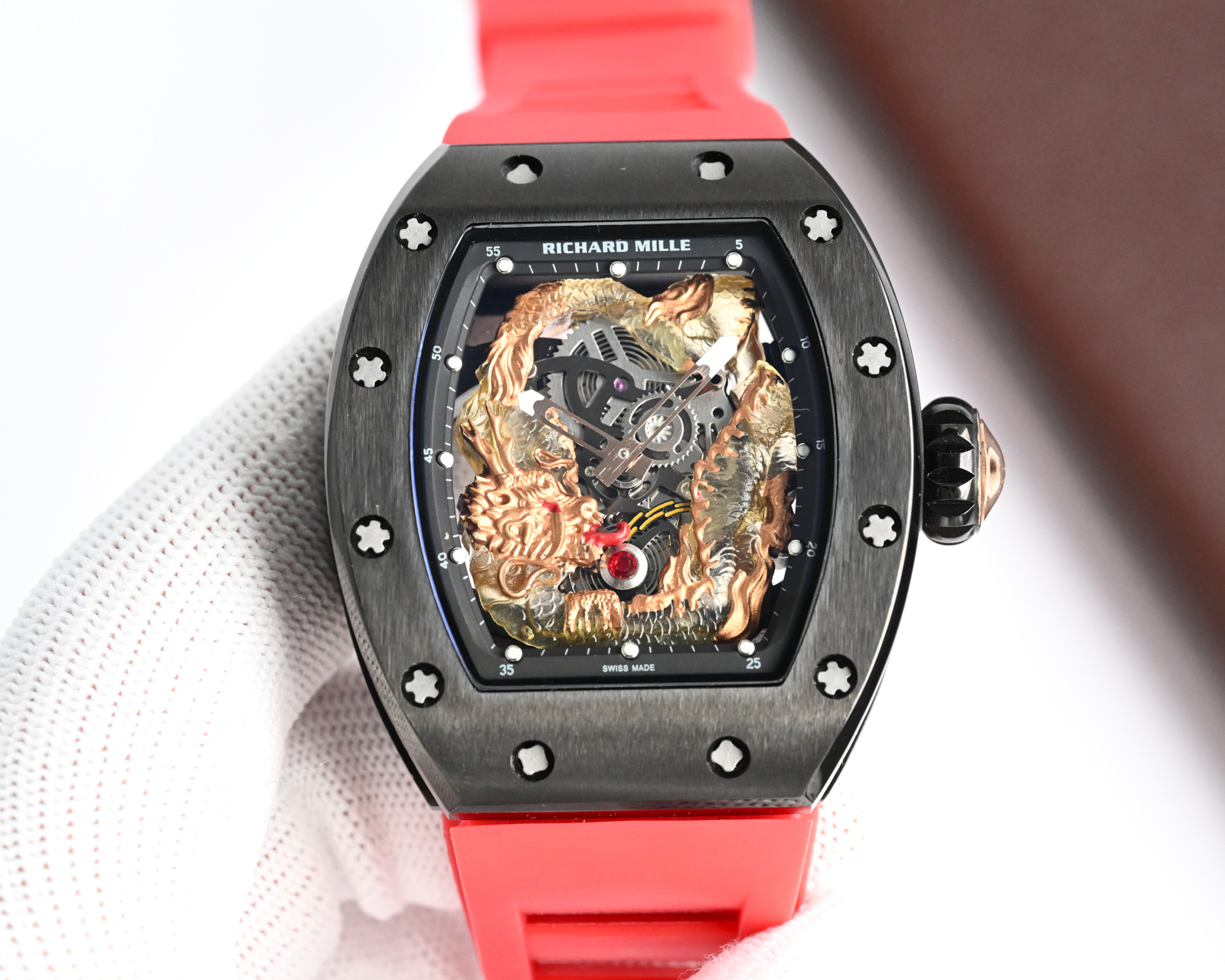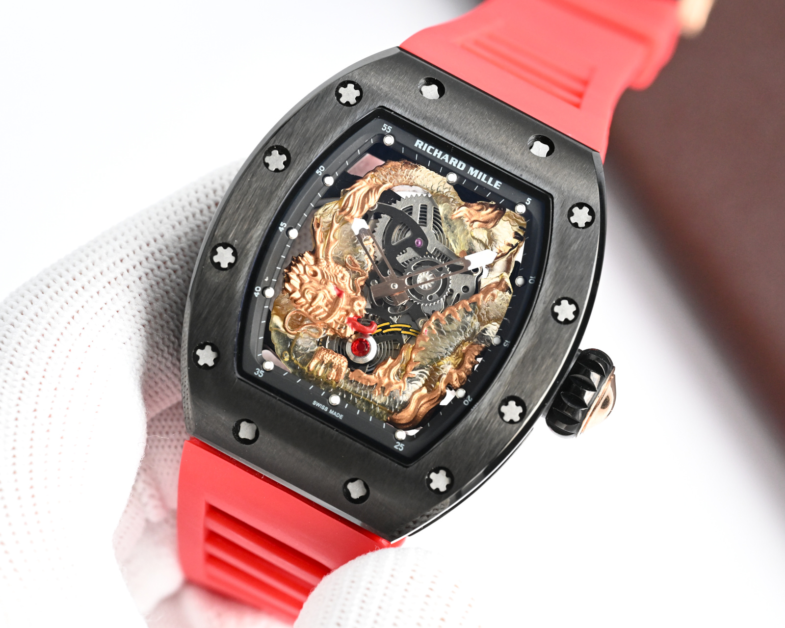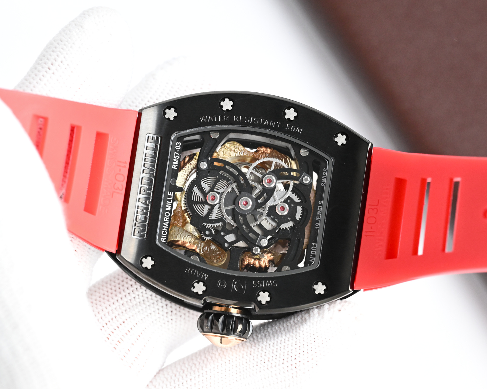 This watches is AAAAA 1:1 quality (superb). Materials used are identical to the original ones. Richard Mille trademark marks are indistinguishable to the authentic. Photos take by actual watches, what you receive will be 100% same with our photos.