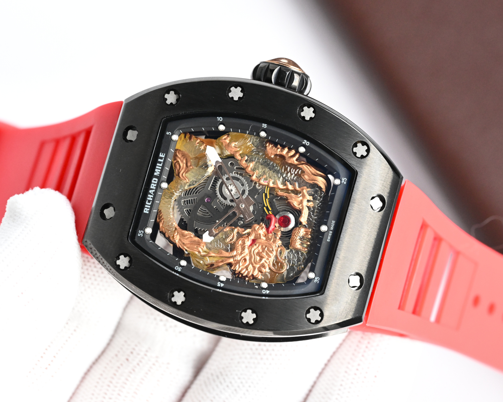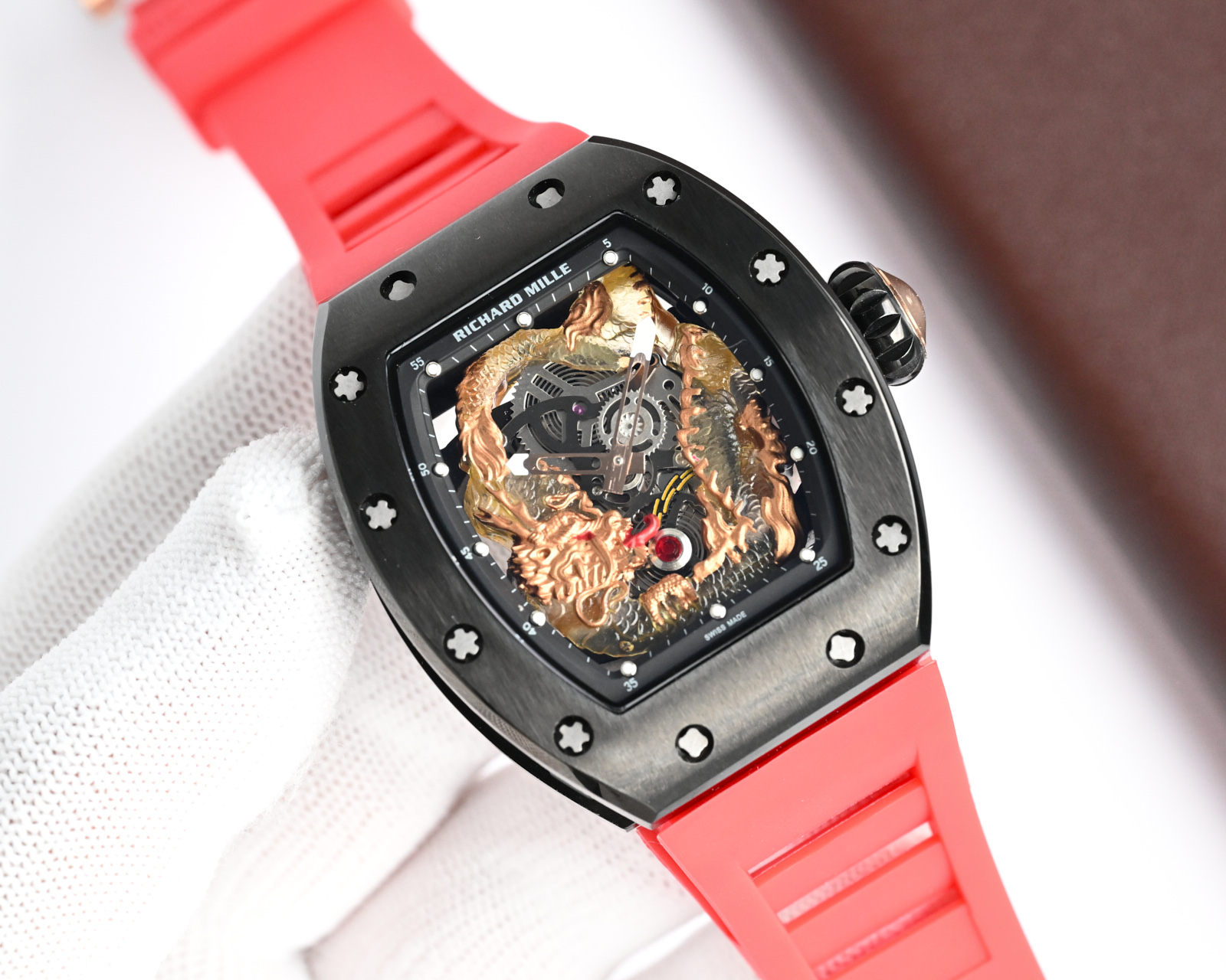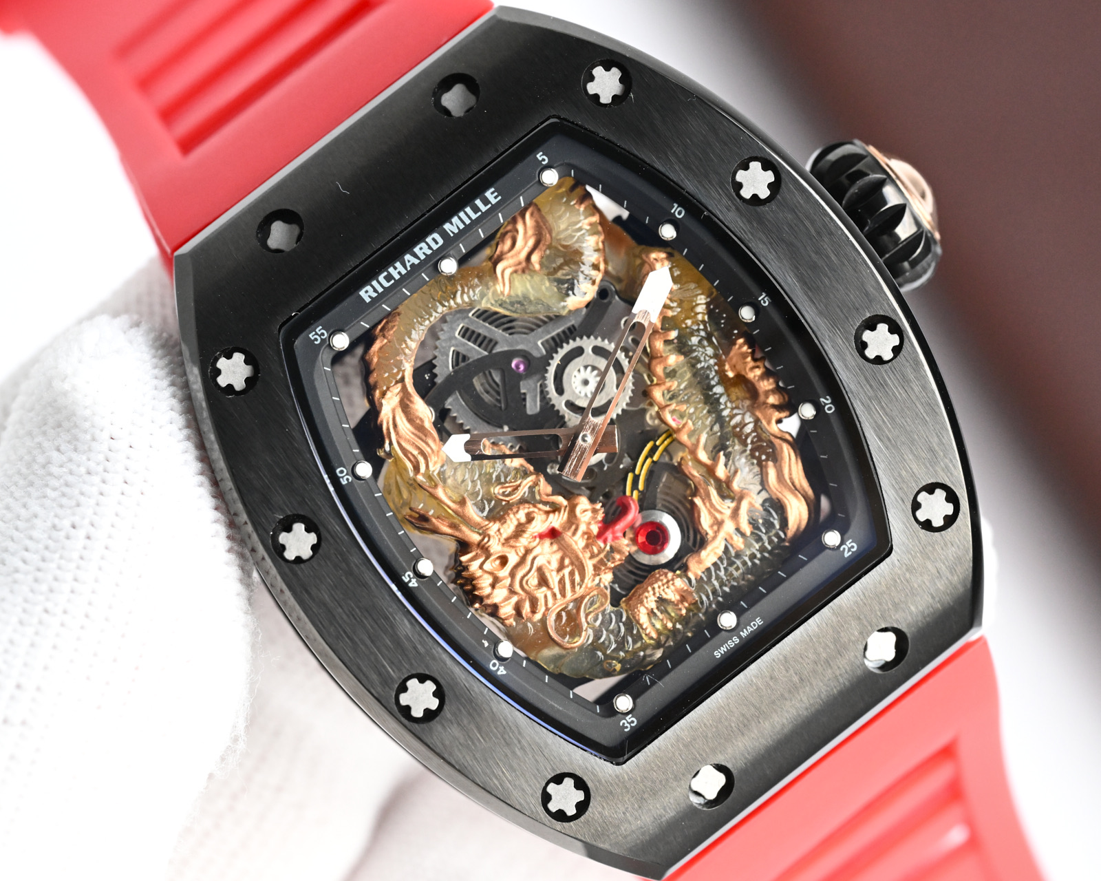 This watches is AAAAA 1:1 quality (superb). Materials used are identical to the original ones. Richard Mille trademark marks are indistinguishable to the authentic. Photos take by actual watches, what you receive will be 100% same with our photos.