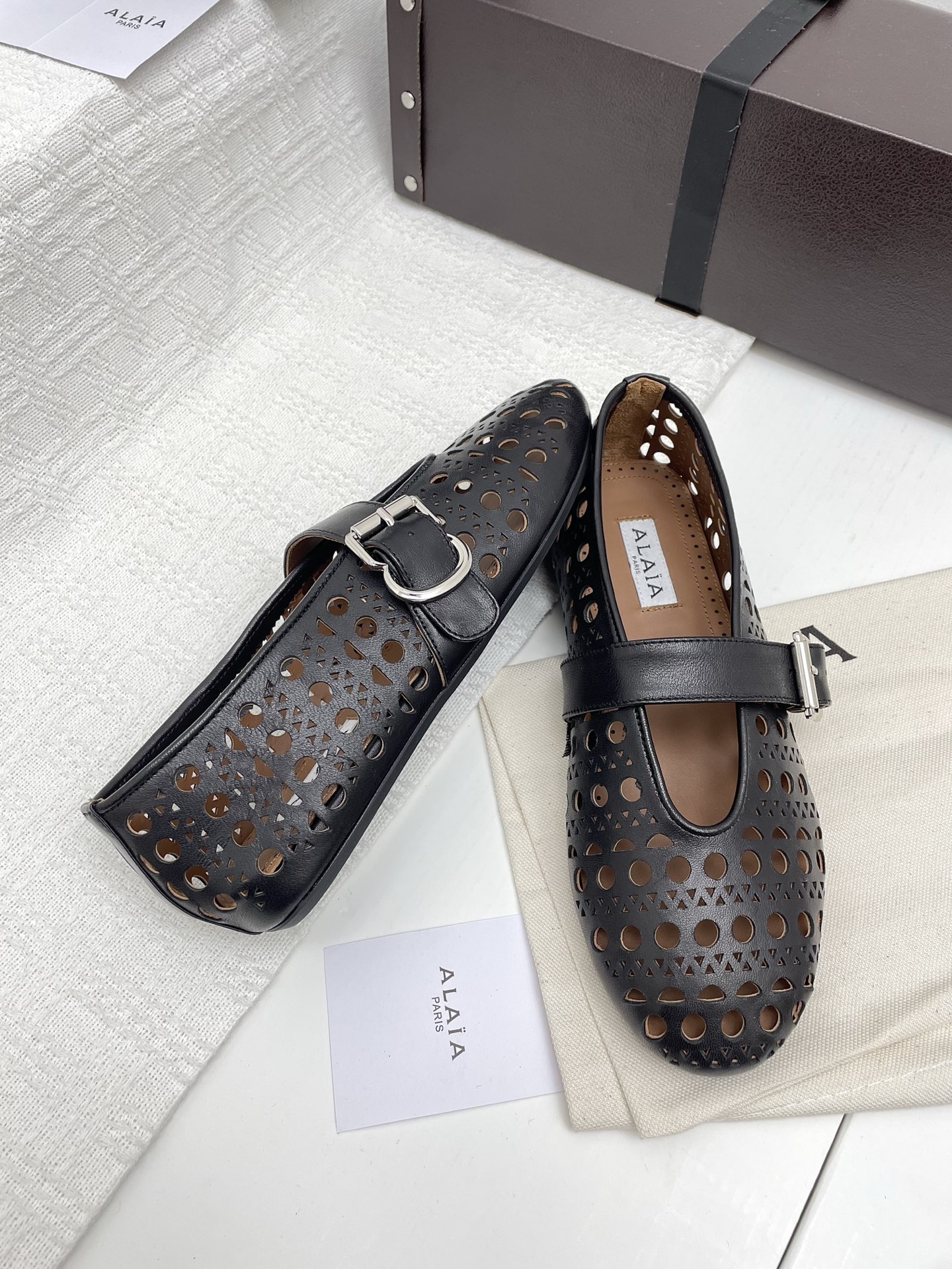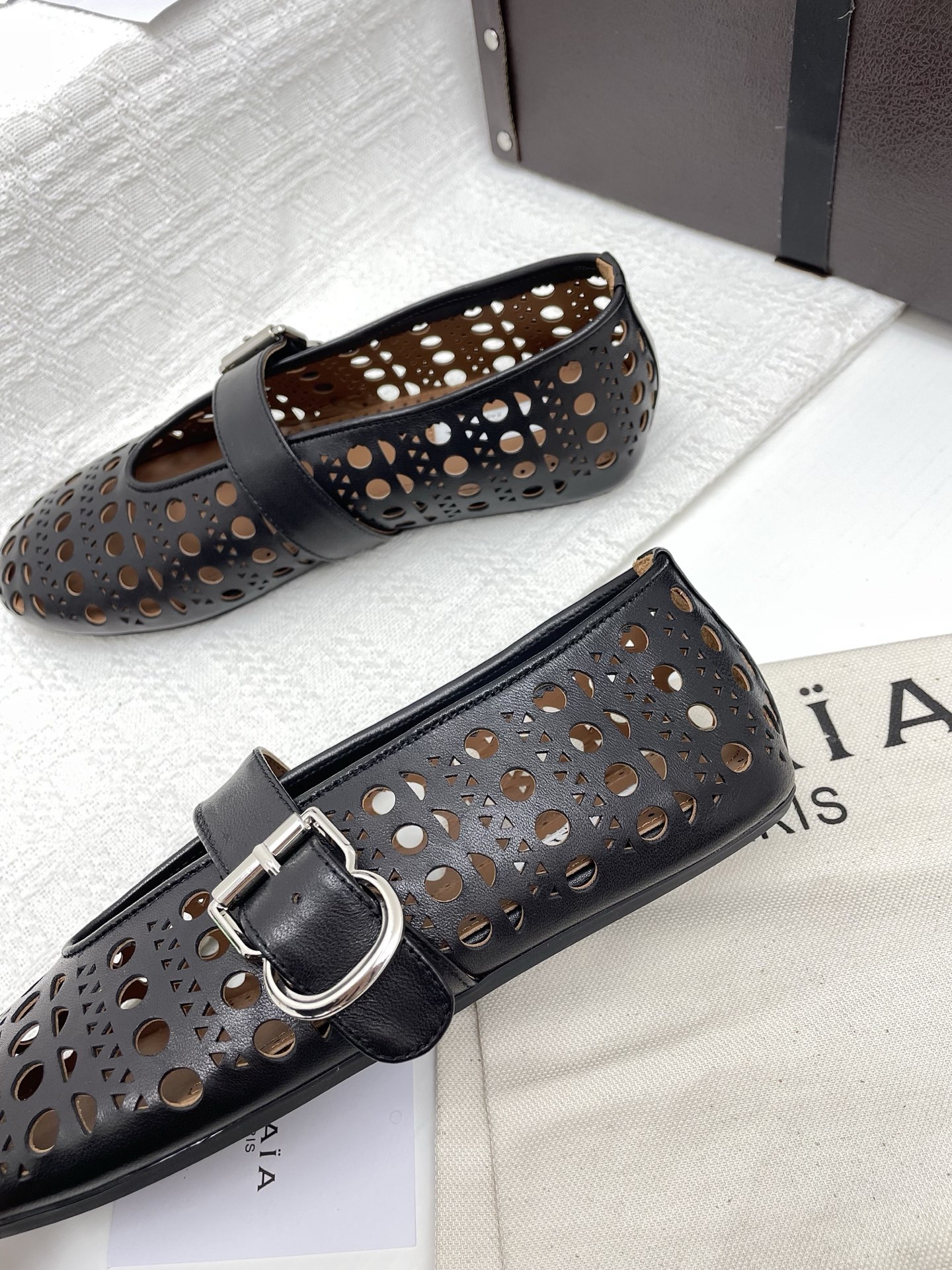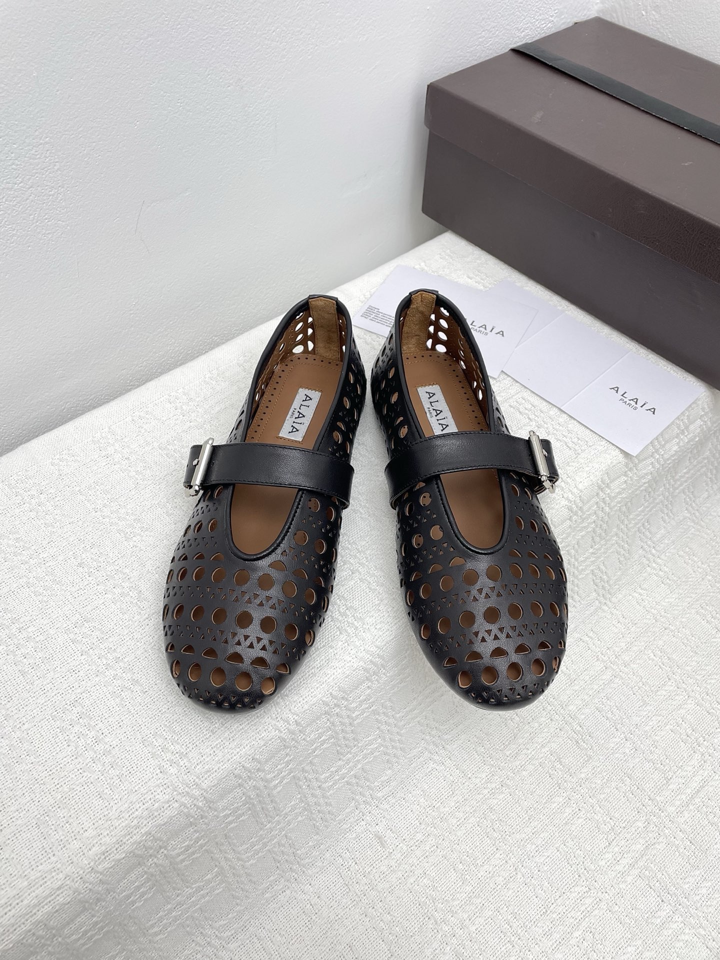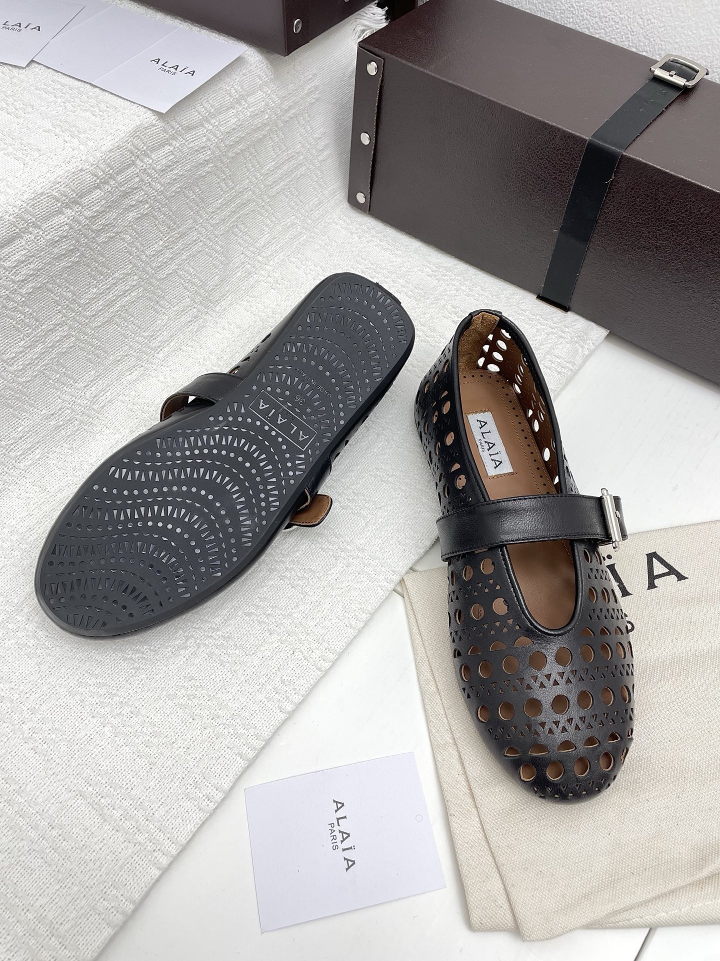 This shoes is AAAAA 1:1 quality (superb). Materials used are identical to the original ones. Alaia trademark marks are indistinguishable to the authentic. Photos take by actual shoes, what you receive will be 100% same with our photos.