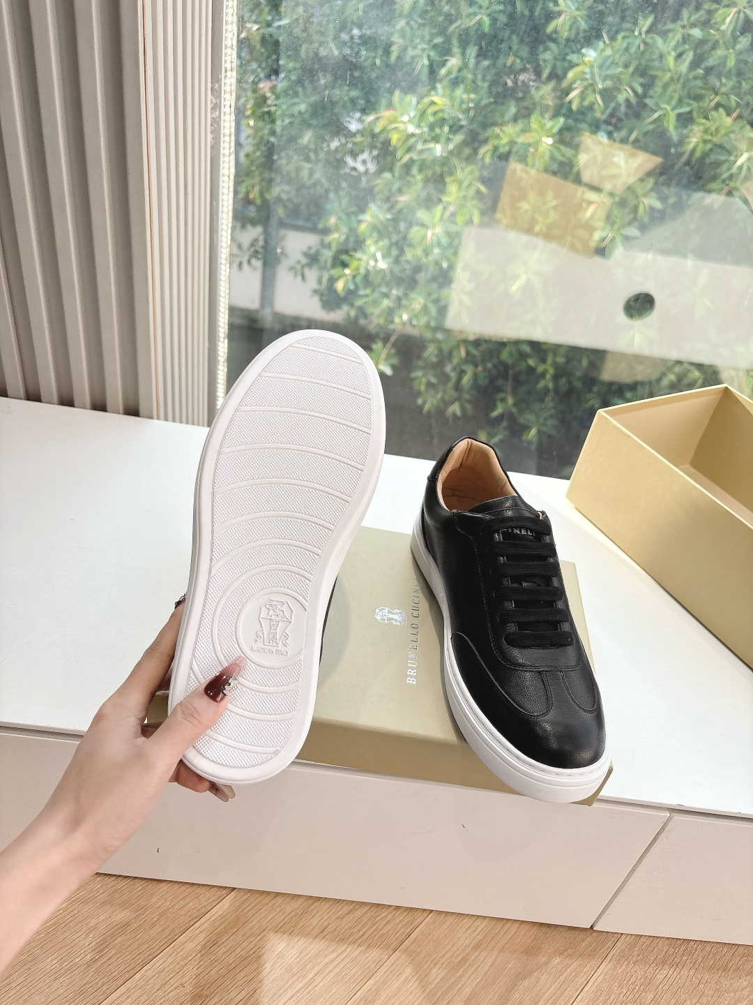This shoes is AAAAA 1:1 quality (superb). Materials used are identical to the original ones. Brunello Cucinelli trademark marks are indistinguishable to the authentic. Photos take by actual shoes, what you receive will be 100% same with our photos.