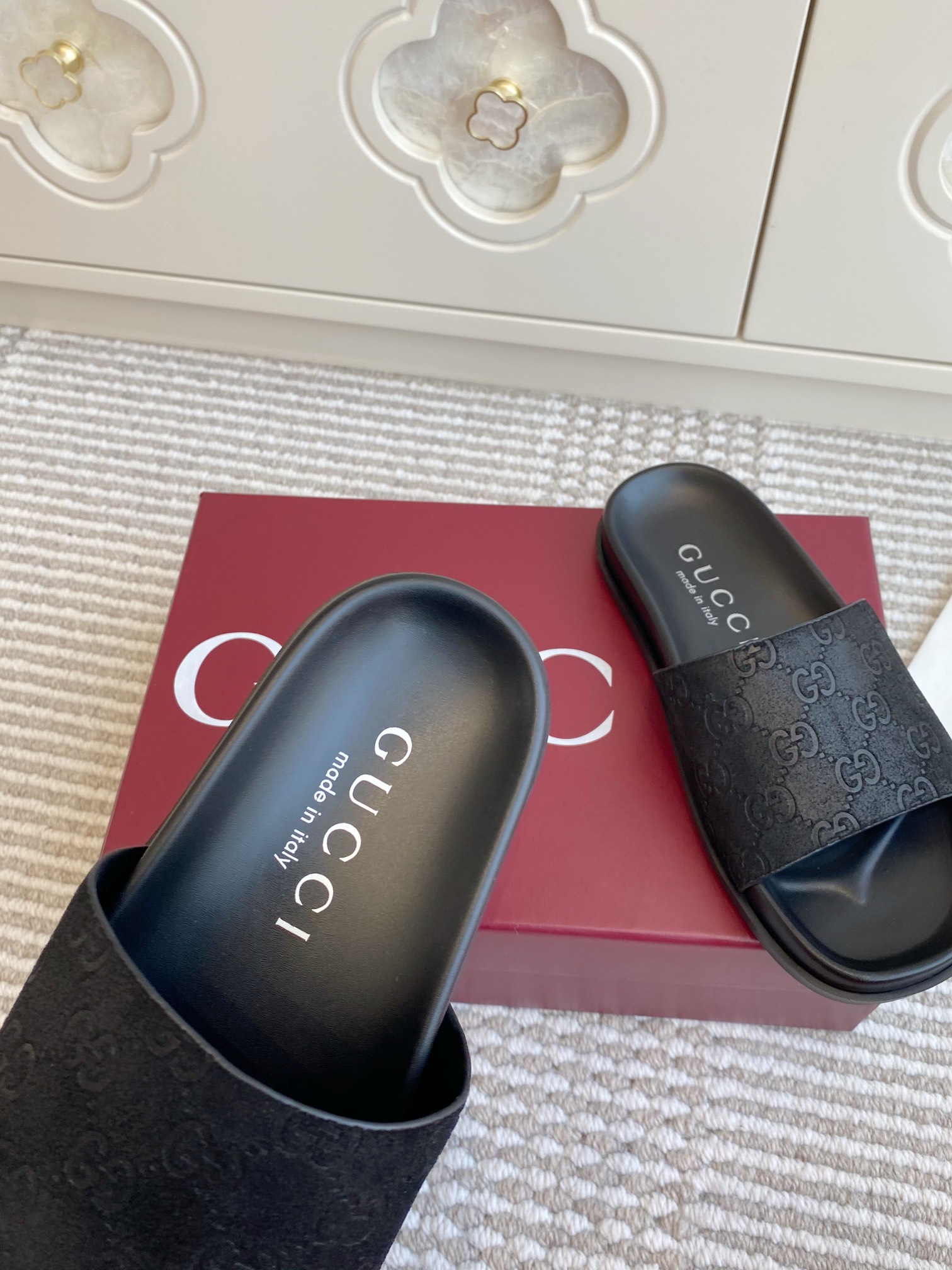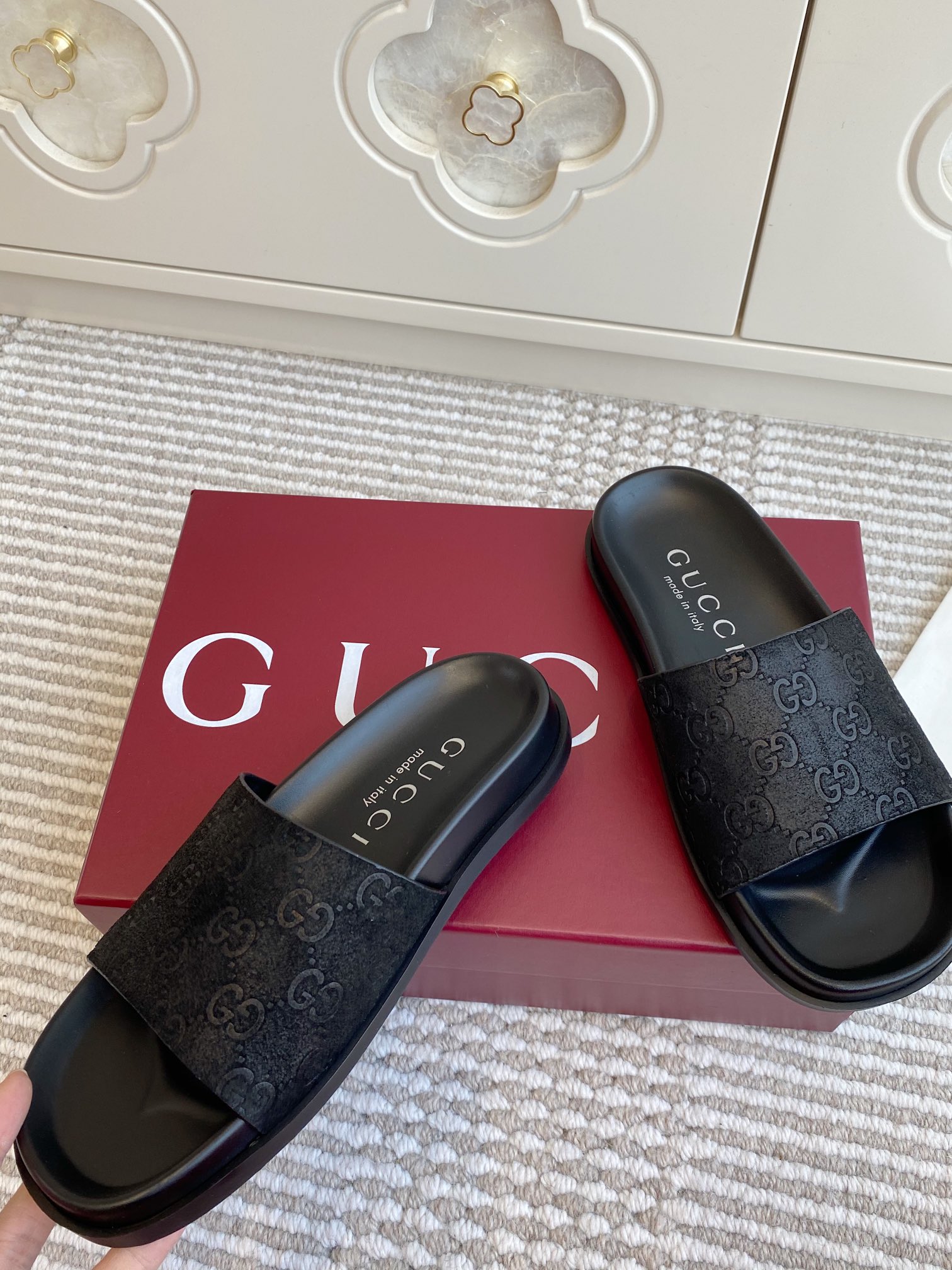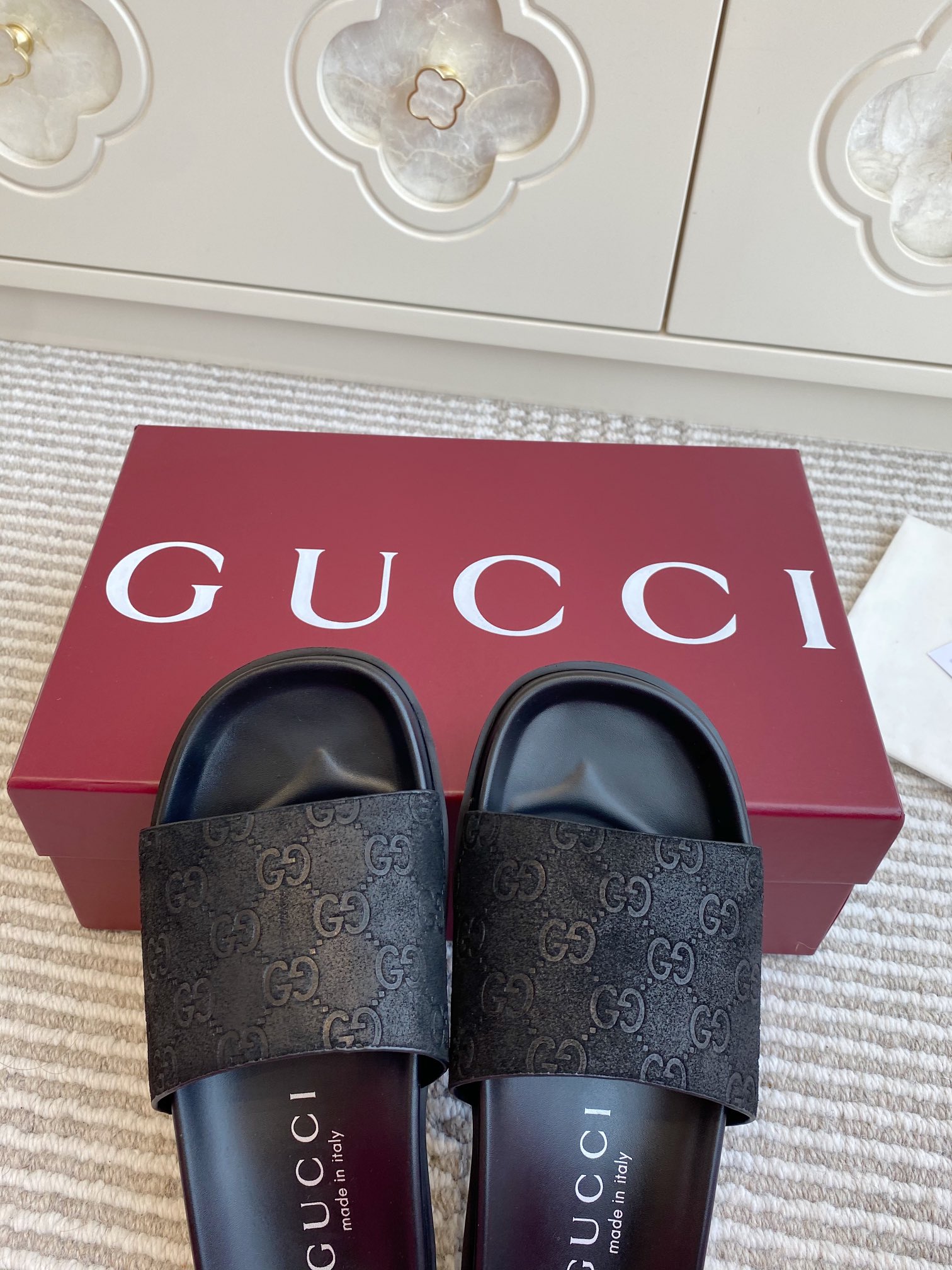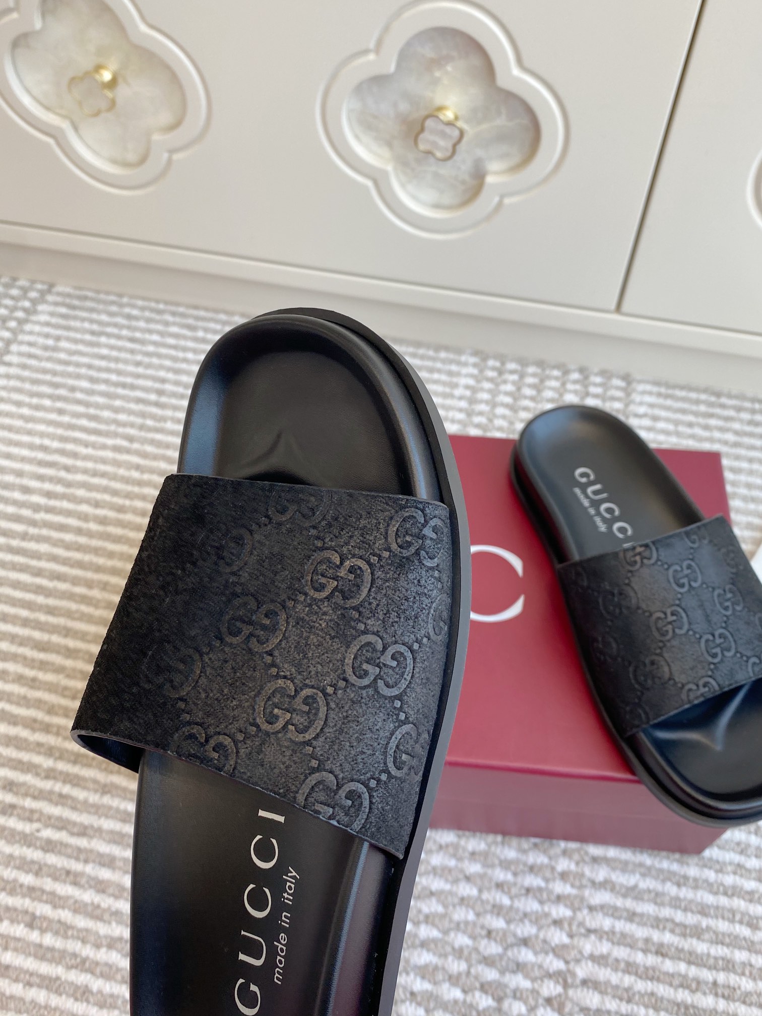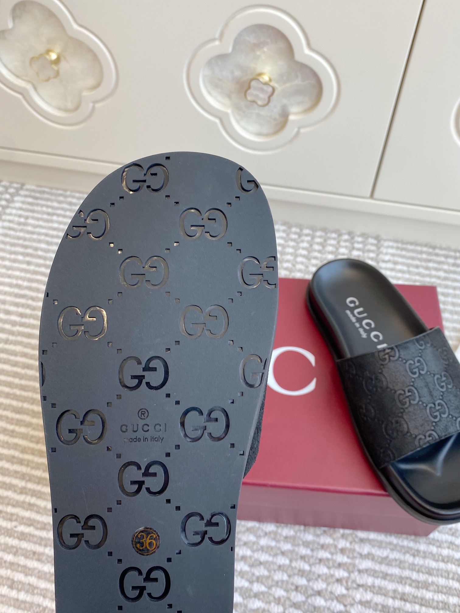 This shoes is AAAAA 1:1 quality (superb). Materials used are identical to the original ones. Gucci trademark marks are indistinguishable to the authentic. Photos take by actual shoes, what you receive will be 100% same with our photos.