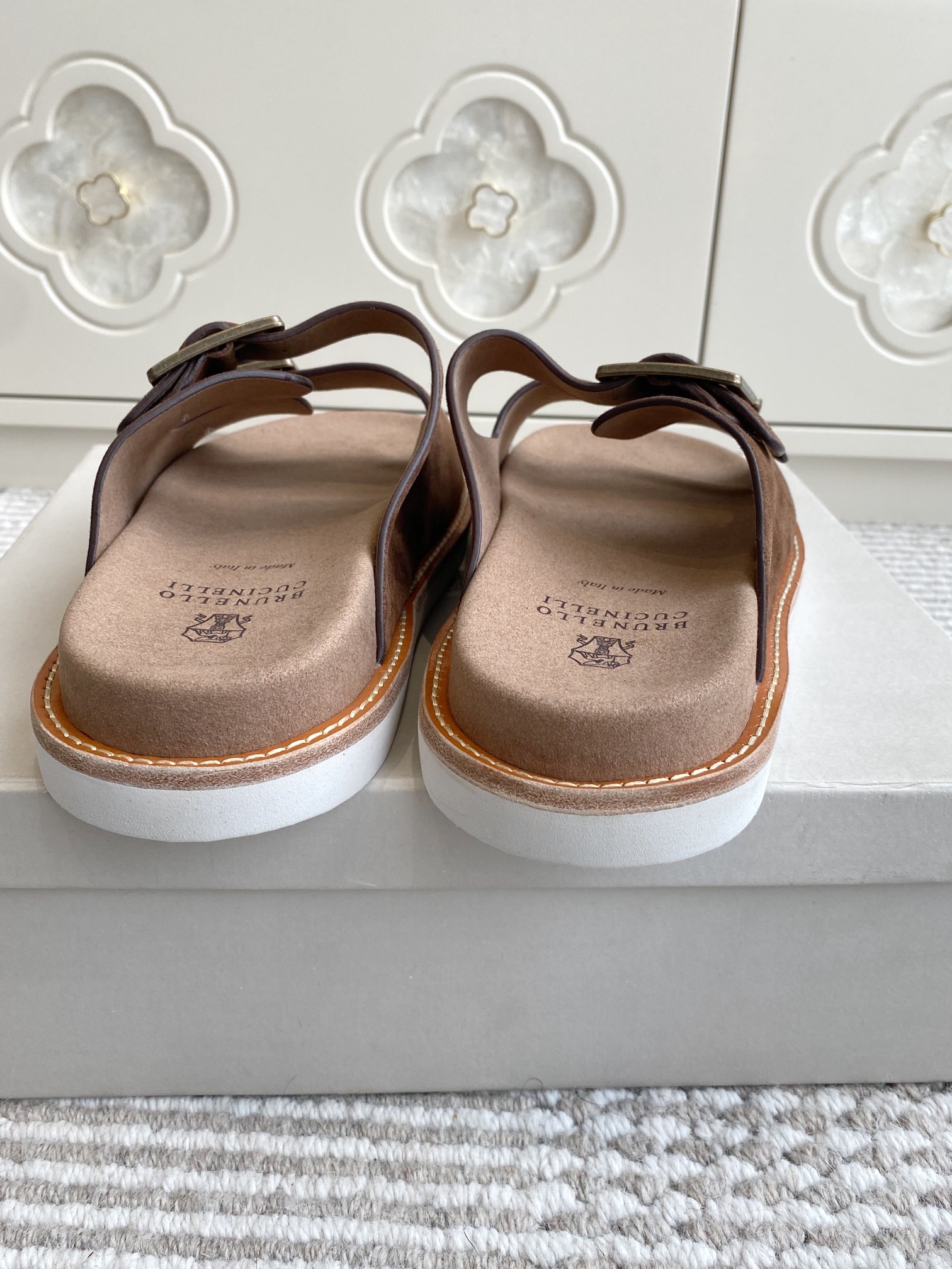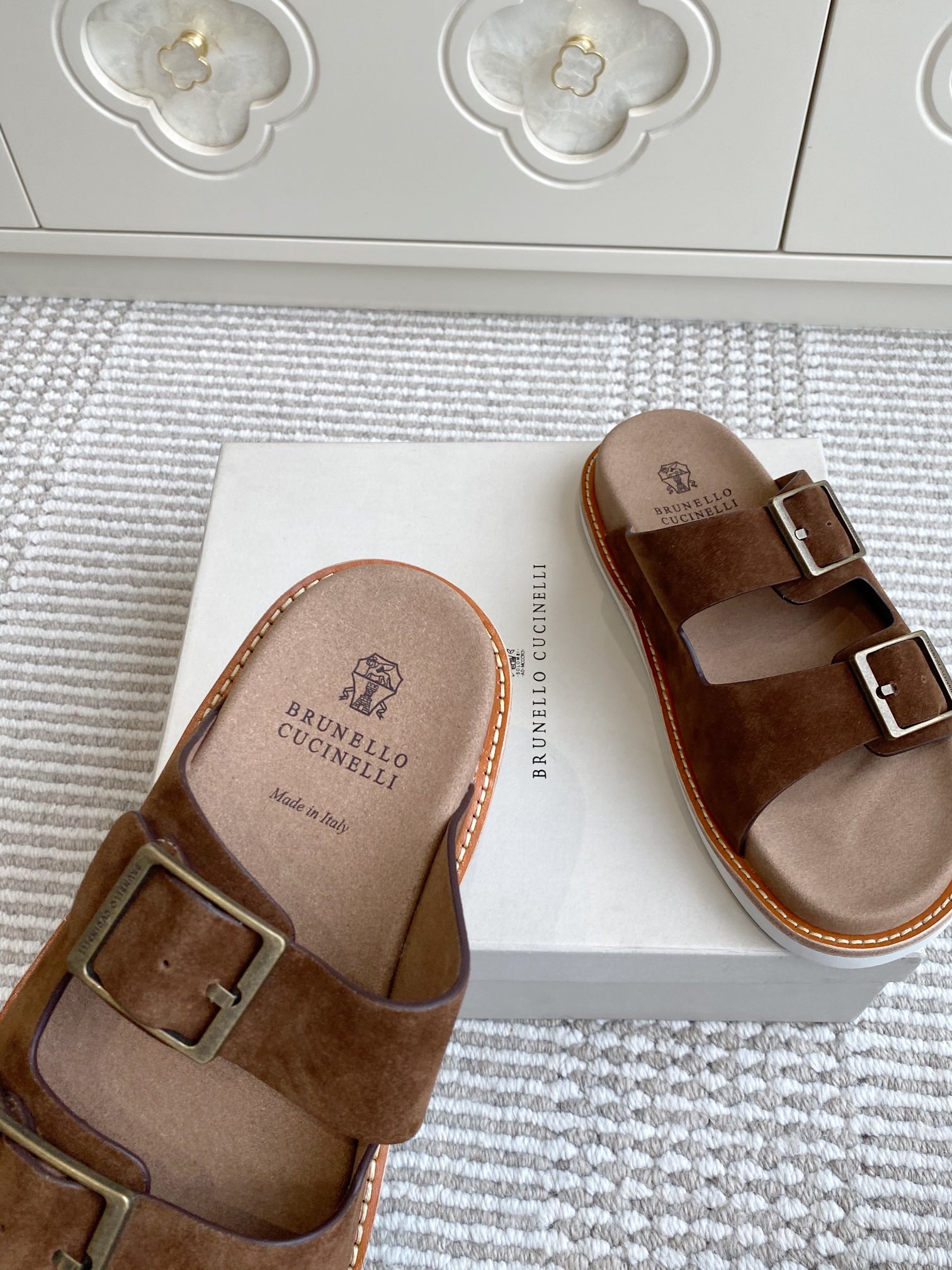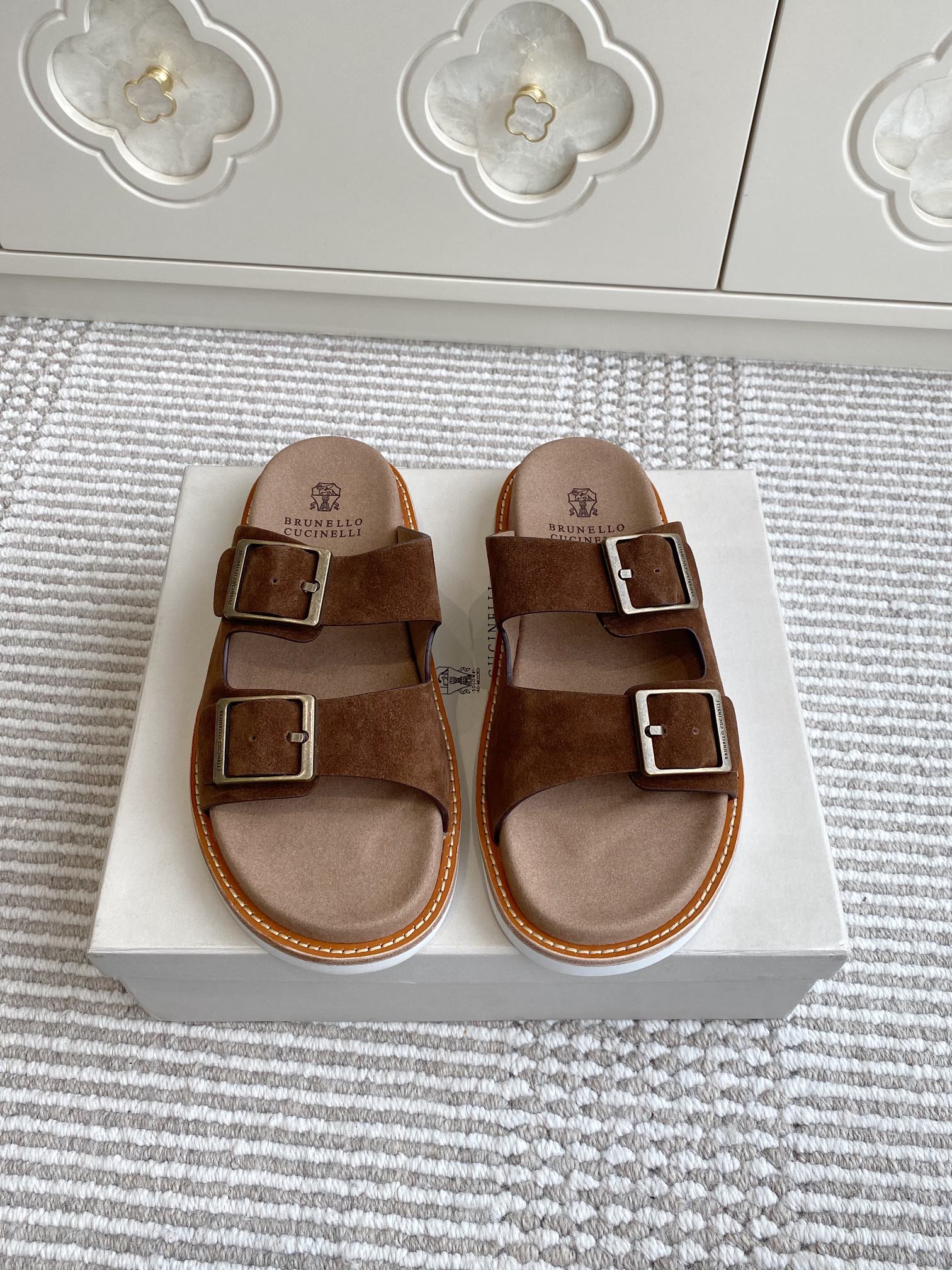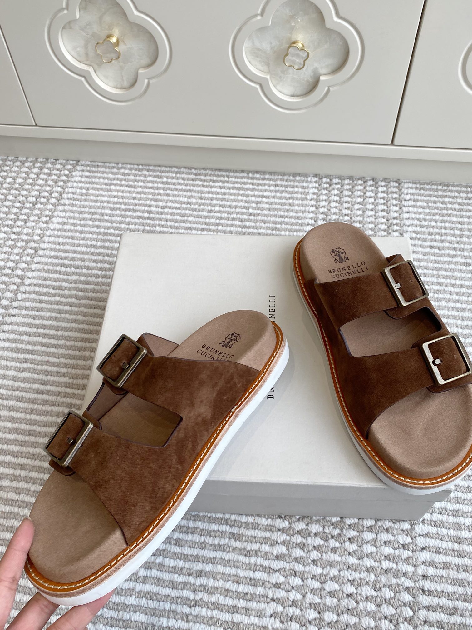 This shoes is AAAAA 1:1 quality (superb). Materials used are identical to the original ones. Brunello Cucinelli trademark marks are indistinguishable to the authentic. Photos take by actual shoes, what you receive will be 100% same with our photos.