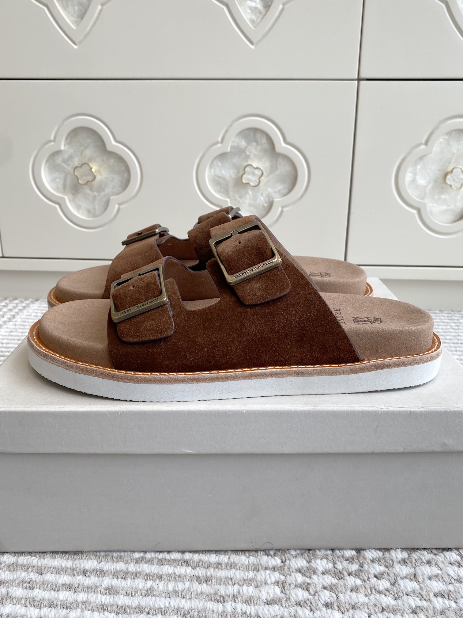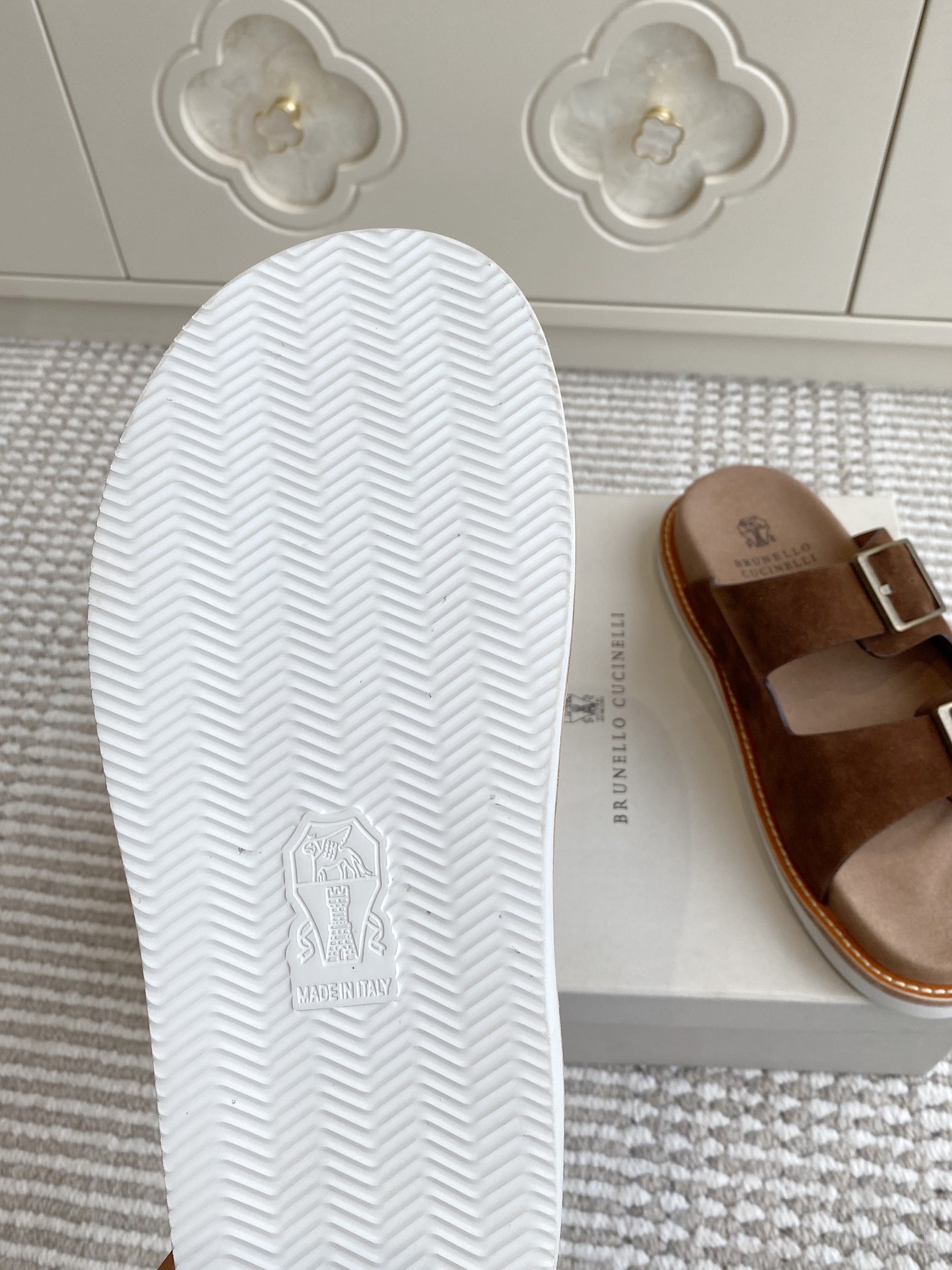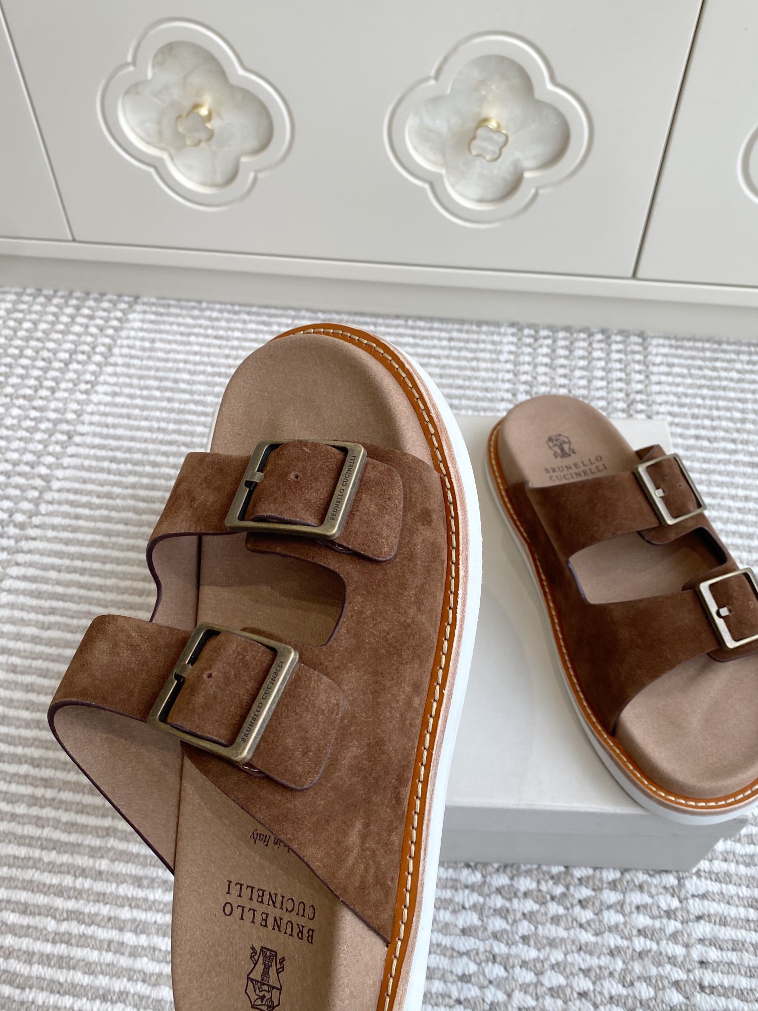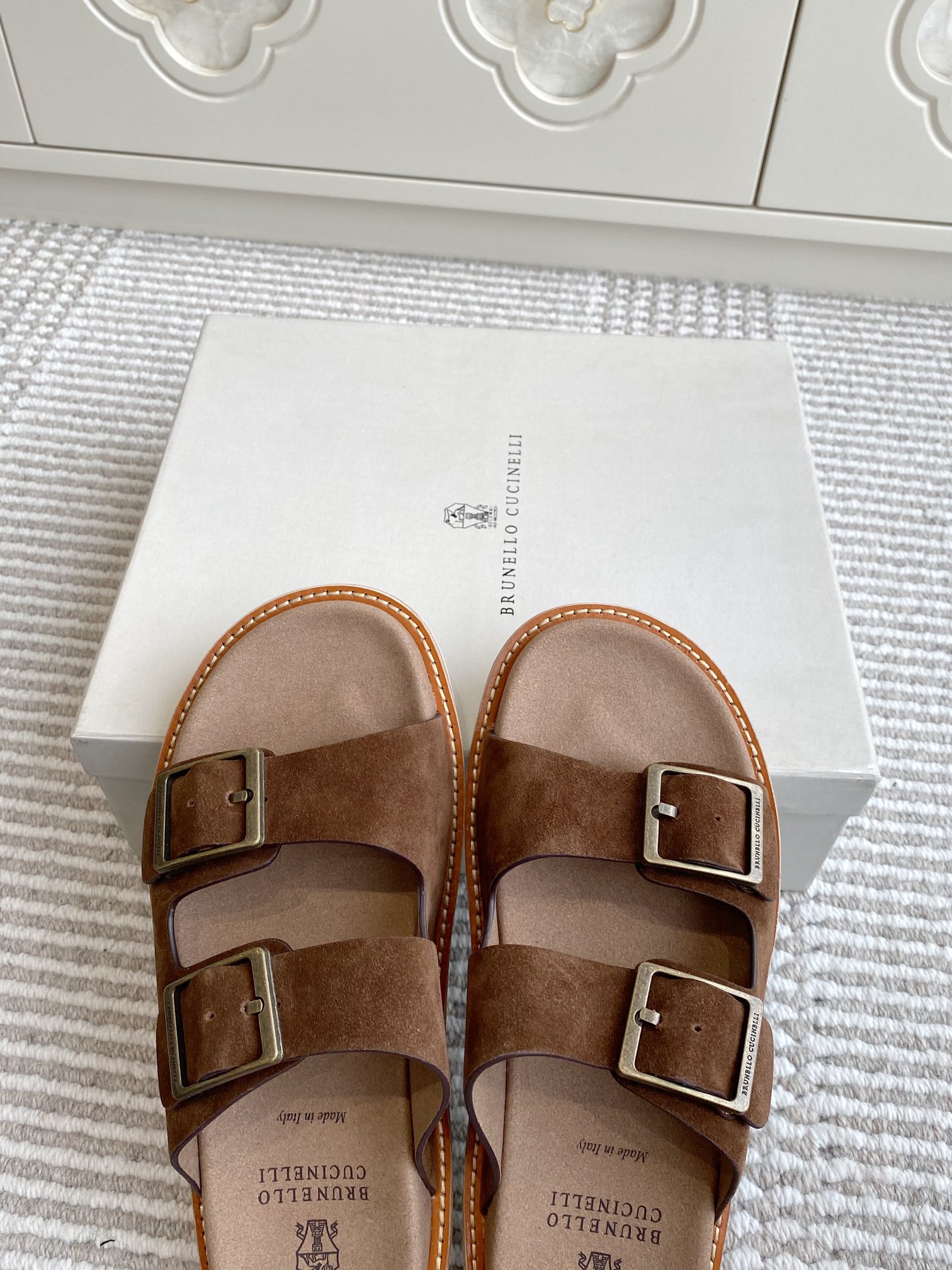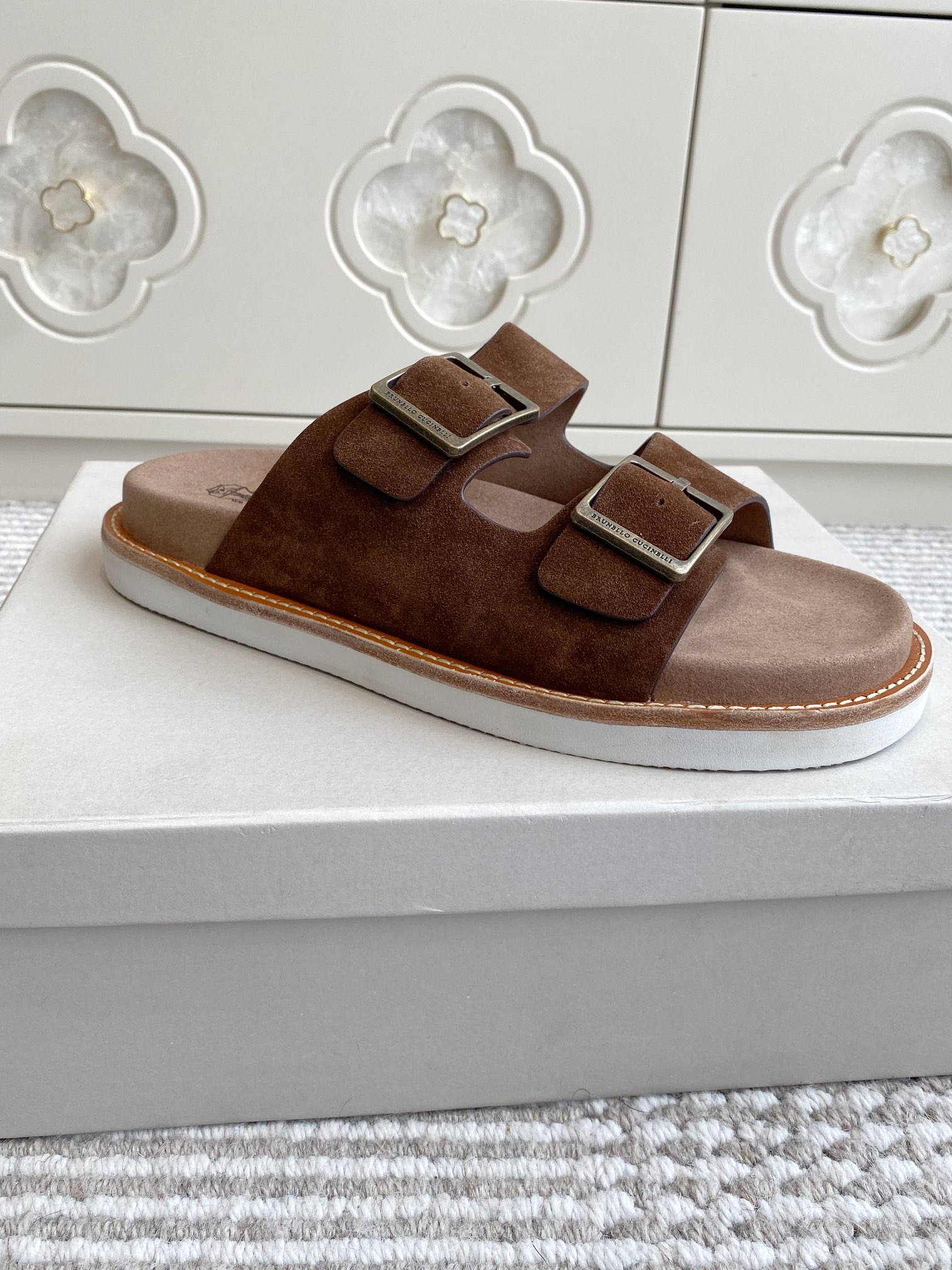 This shoes is AAAAA 1:1 quality (superb). Materials used are identical to the original ones. Brunello Cucinelli trademark marks are indistinguishable to the authentic. Photos take by actual shoes, what you receive will be 100% same with our photos.