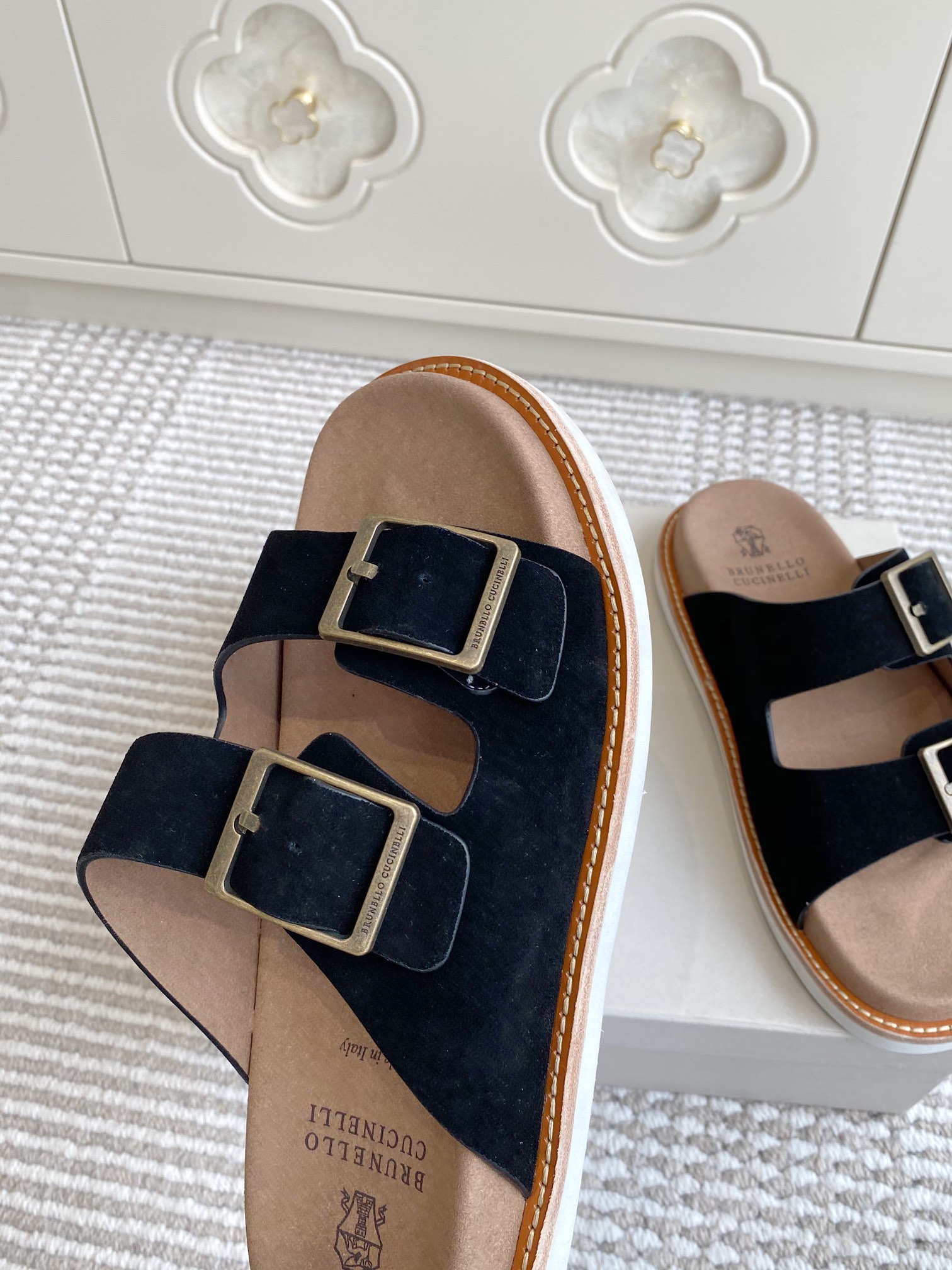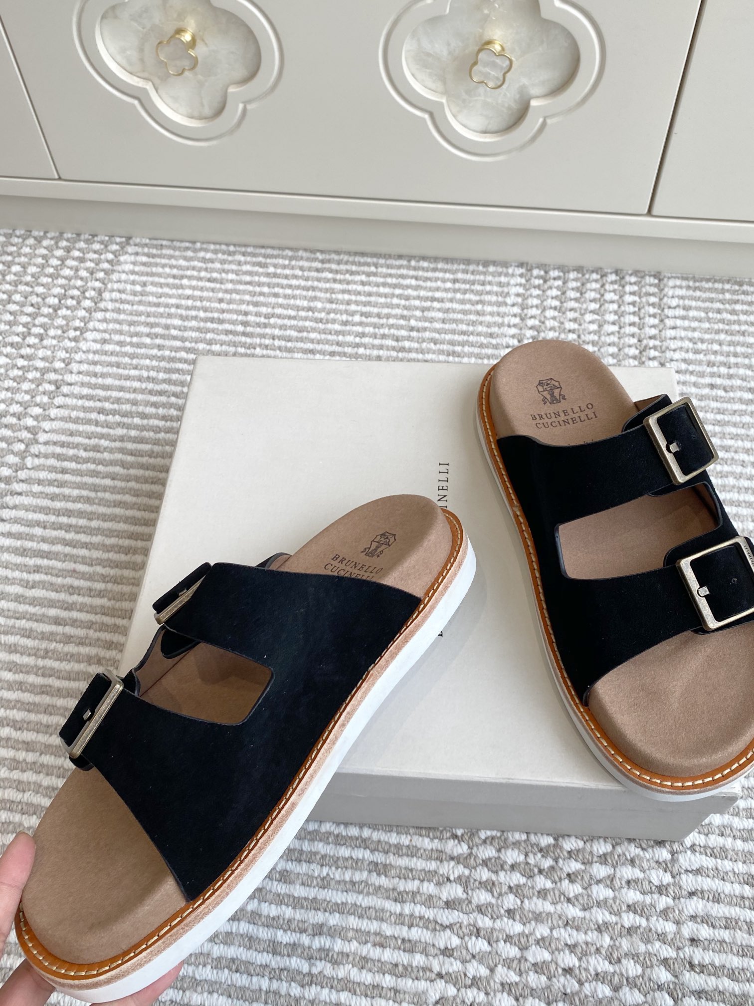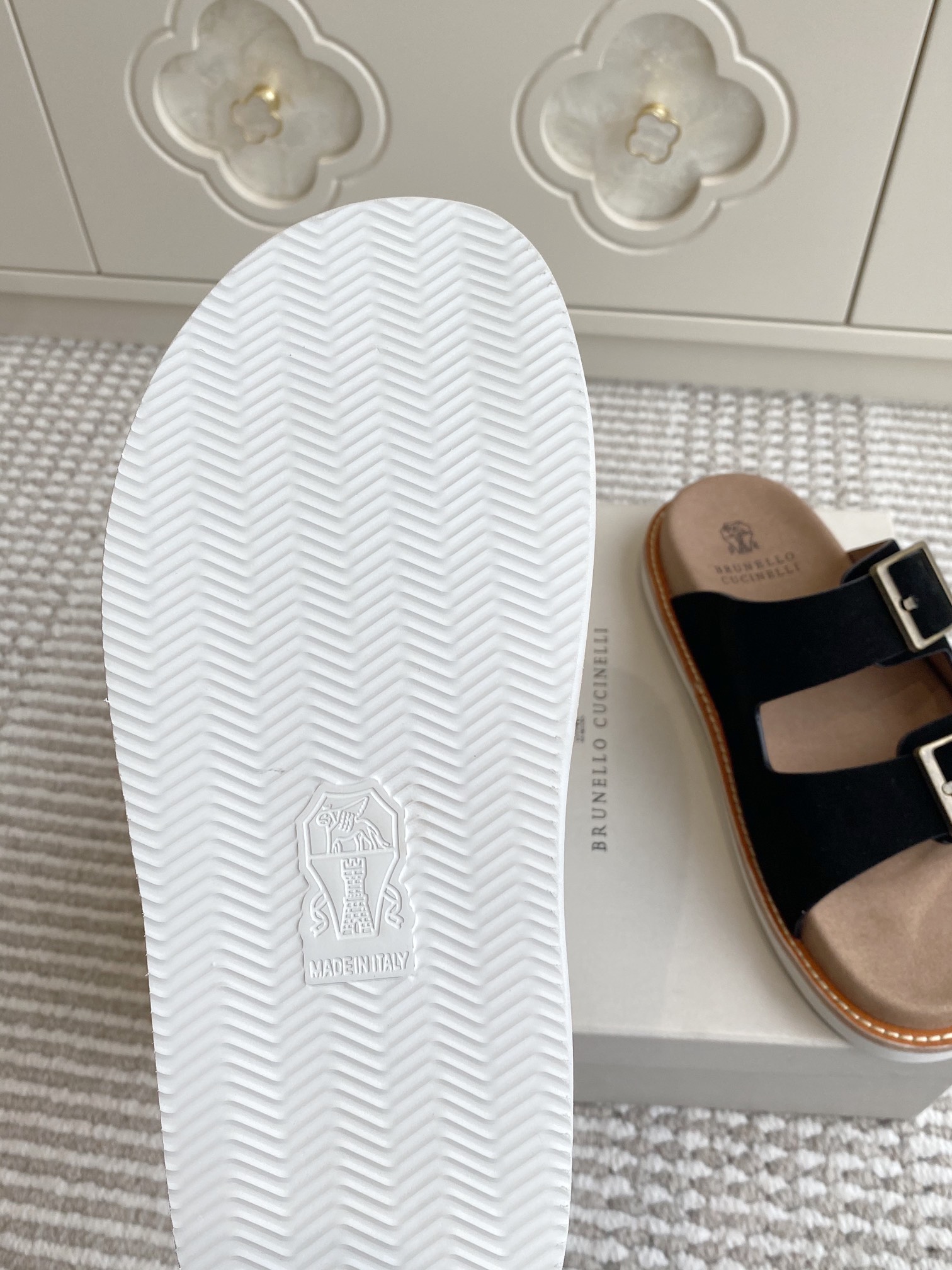 This shoes is AAAAA 1:1 quality (superb). Materials used are identical to the original ones. Brunello Cucinelli trademark marks are indistinguishable to the authentic. Photos take by actual shoes, what you receive will be 100% same with our photos.