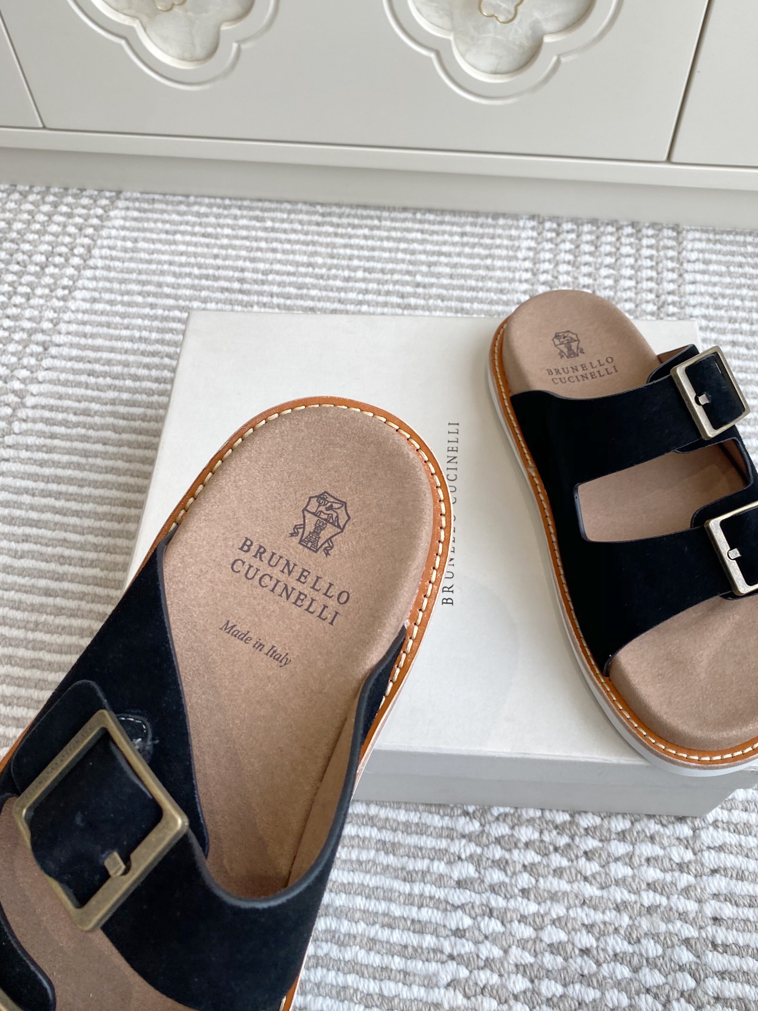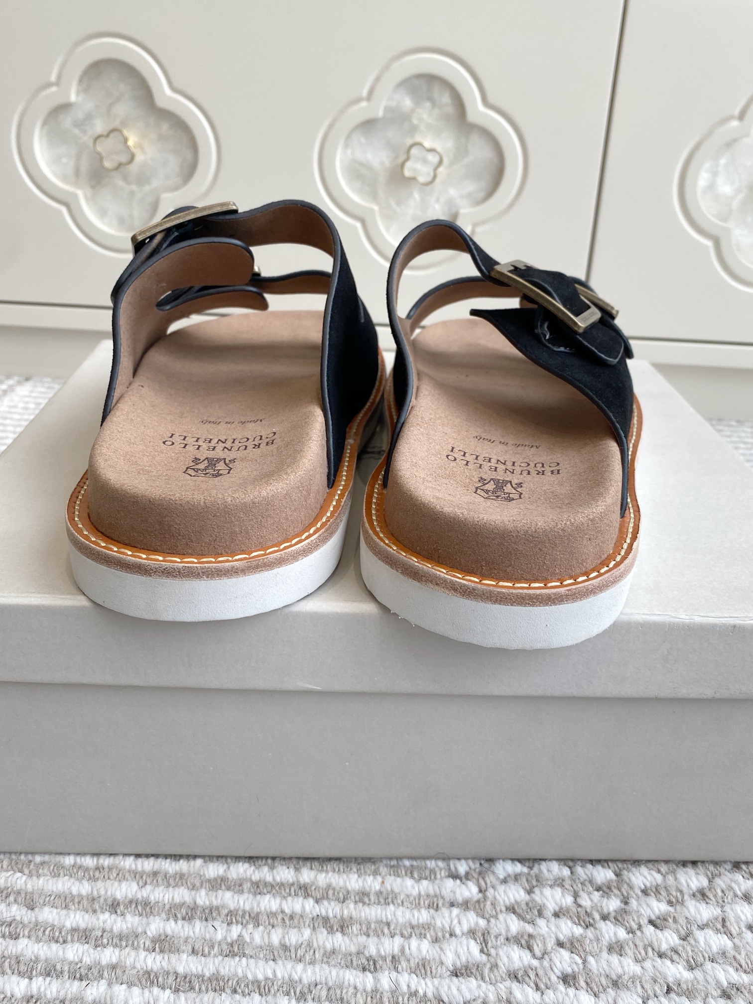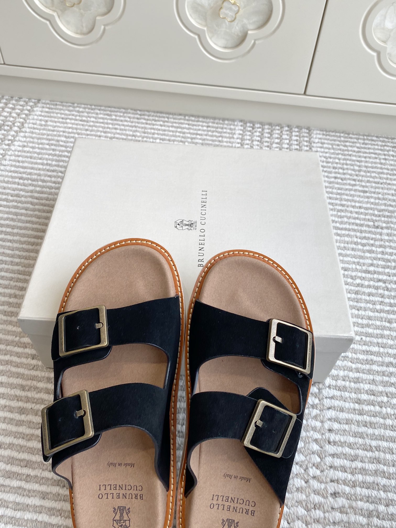 This shoes is AAAAA 1:1 quality (superb). Materials used are identical to the original ones. Brunello Cucinelli trademark marks are indistinguishable to the authentic. Photos take by actual shoes, what you receive will be 100% same with our photos.