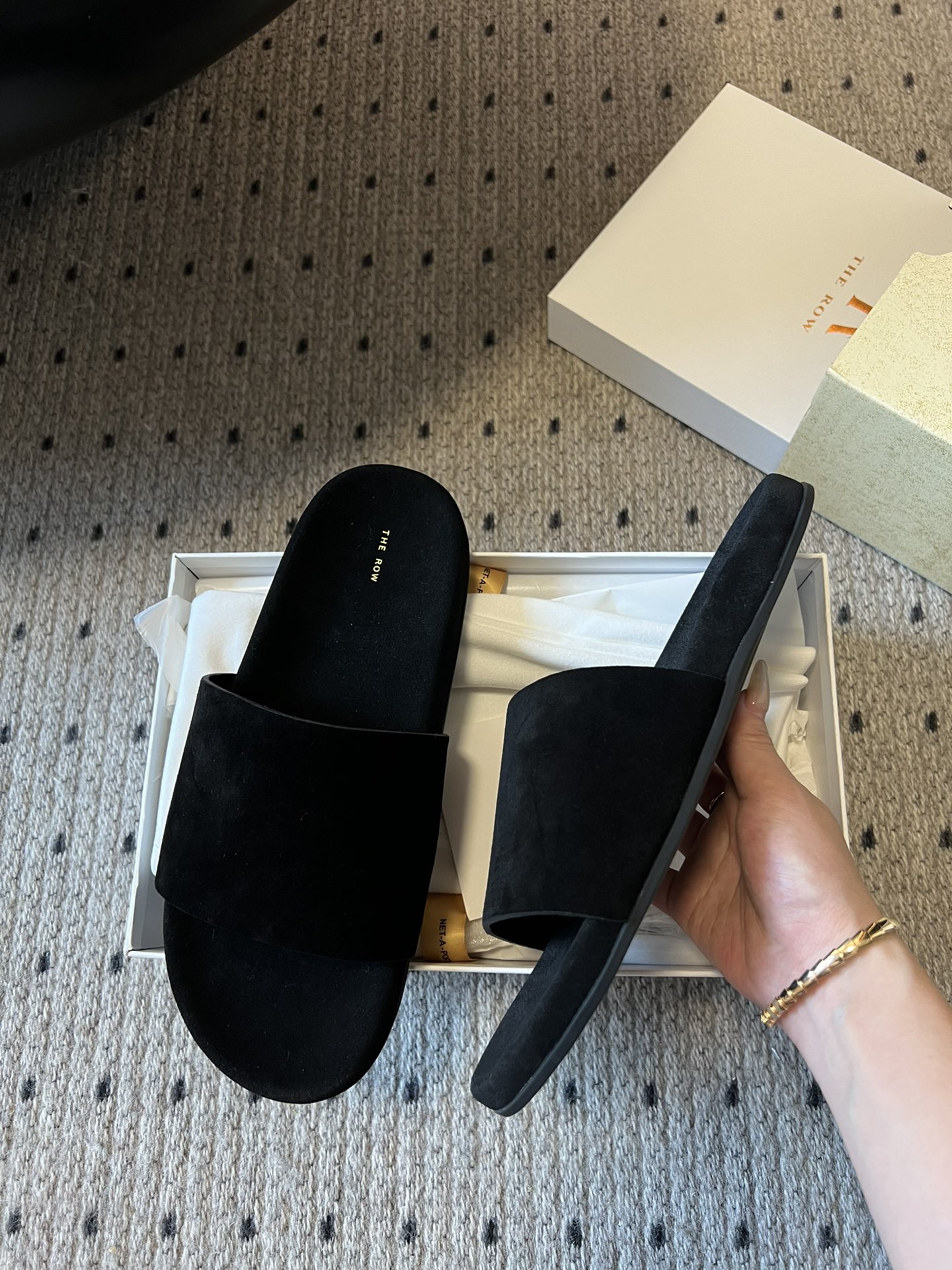 This shoes is AAAAA 1:1 quality (superb). Materials used are identical to the original ones. The Row trademark marks are indistinguishable to the authentic. Photos take by actual shoes, what you receive will be 100% same with our photos.