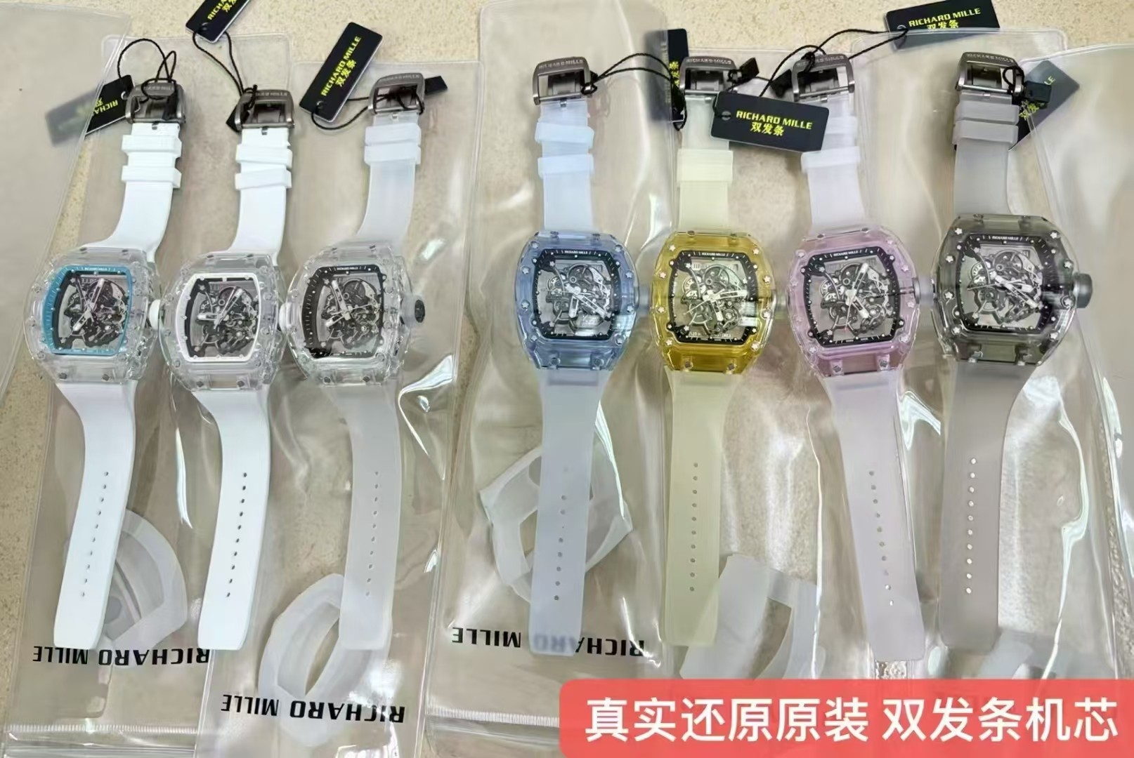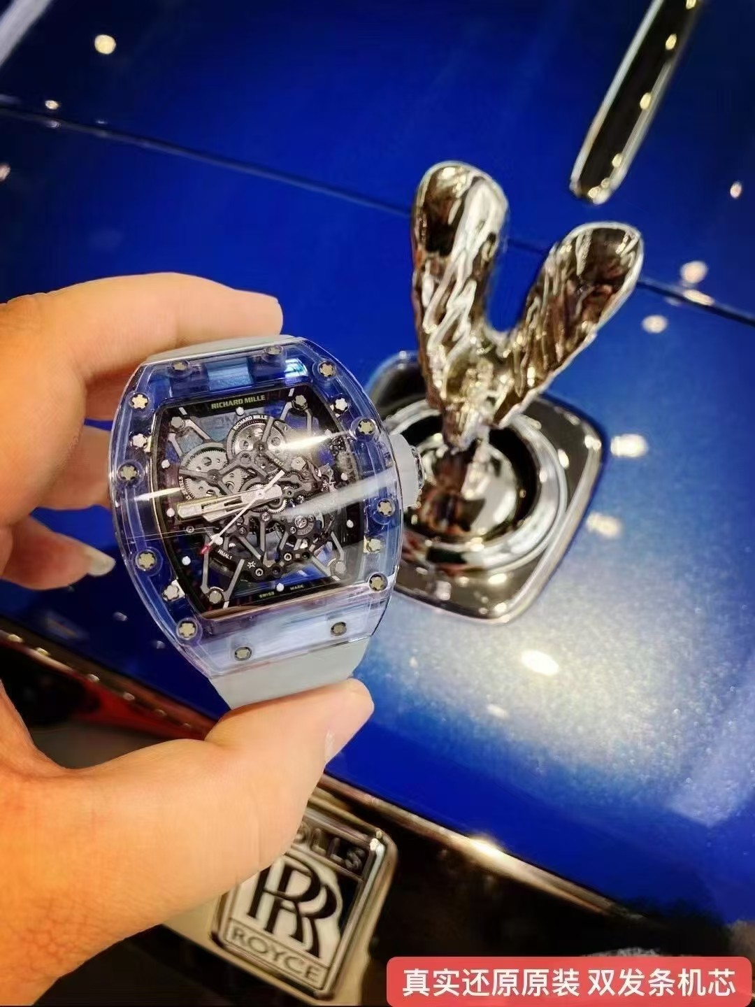 This watches is AAAAA 1:1 quality (superb). Materials used are identical to the original ones. Richard Mille trademark marks are indistinguishable to the authentic. Photos take by actual watches, what you receive will be 100% same with our photos.