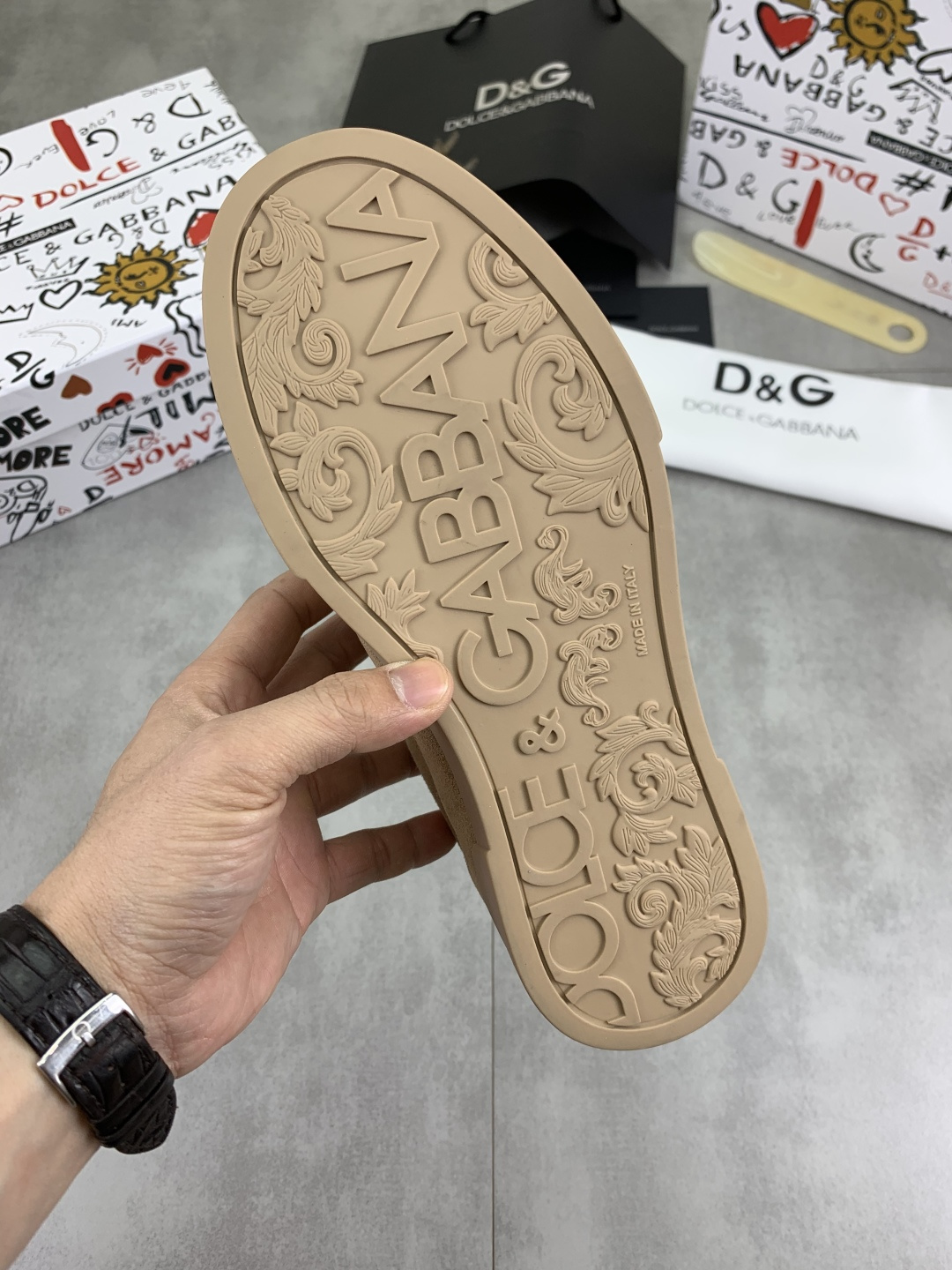 This shoes is AAAAA 1:1 quality (superb). Materials used are identical to the original ones. Dolce&Gabbana trademark marks are indistinguishable to the authentic. Photos take by actual shoes, what you receive will be 100% same with our photos.
