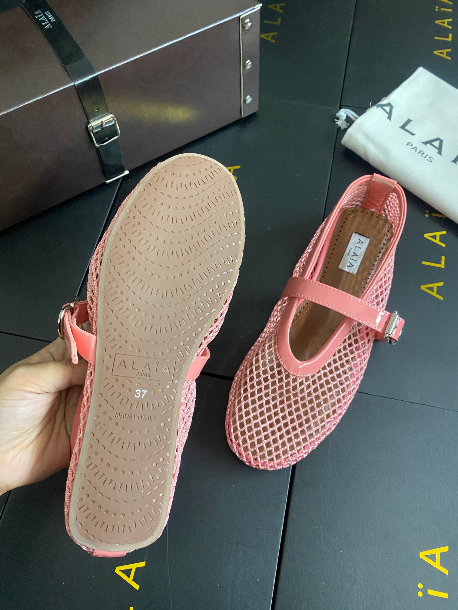 This shoes is AAAAA 1:1 quality (superb). Materials used are identical to the original ones. Alaia trademark marks are indistinguishable to the authentic. Photos take by actual shoes, what you receive will be 100% same with our photos.