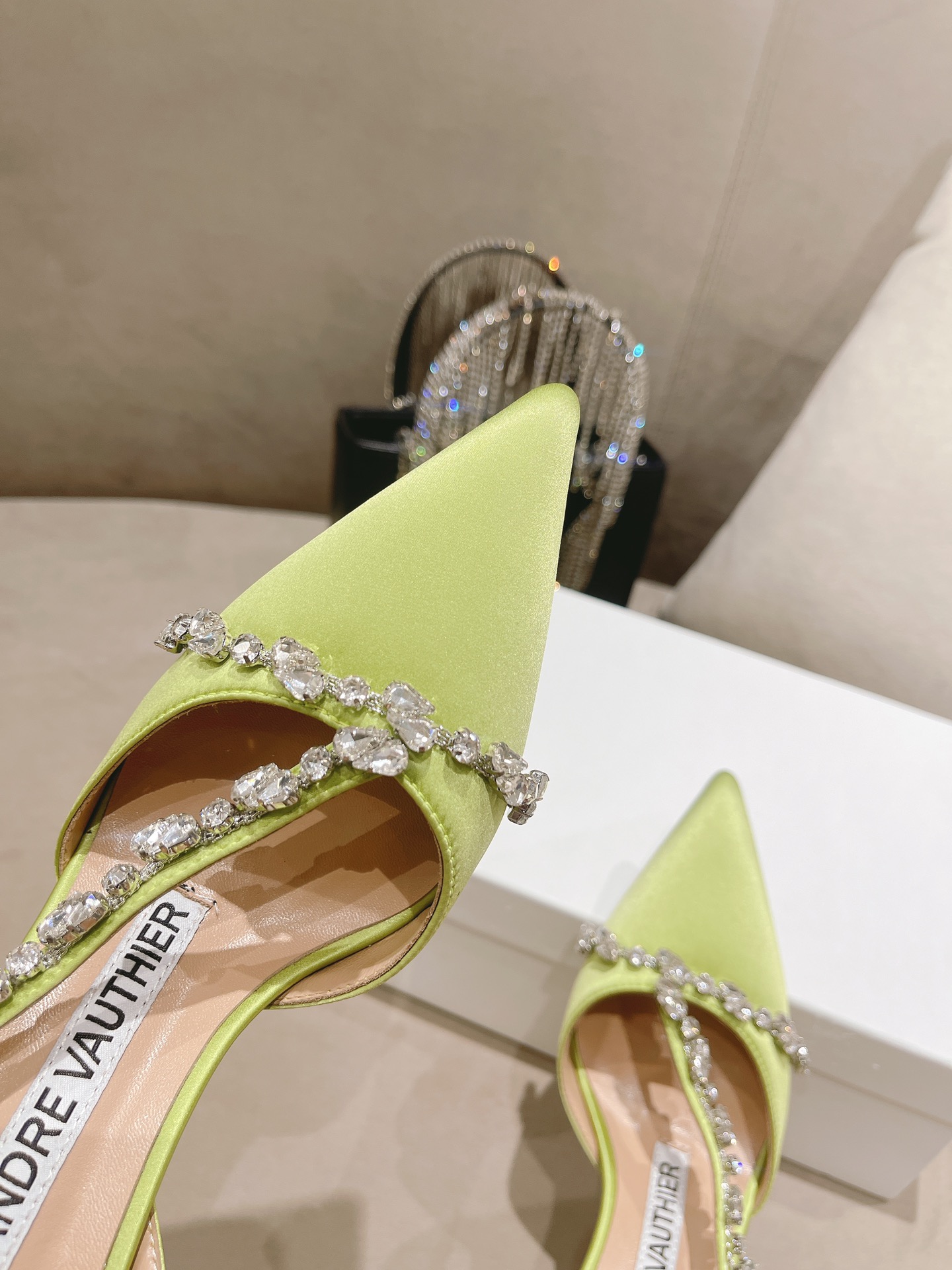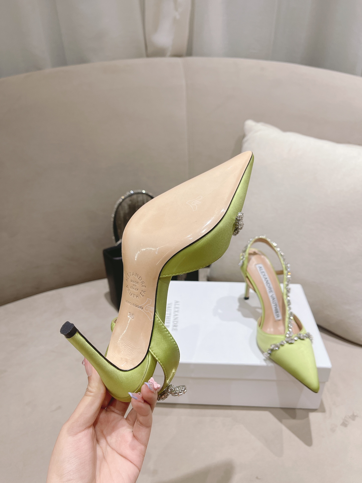 This shoes is AAAAA 1:1 quality (superb). Materials used are identical to the original ones. Alexandre Vauthier trademark marks are indistinguishable to the authentic. Photos take by actual shoes, what you receive will be 100% same with our photos.