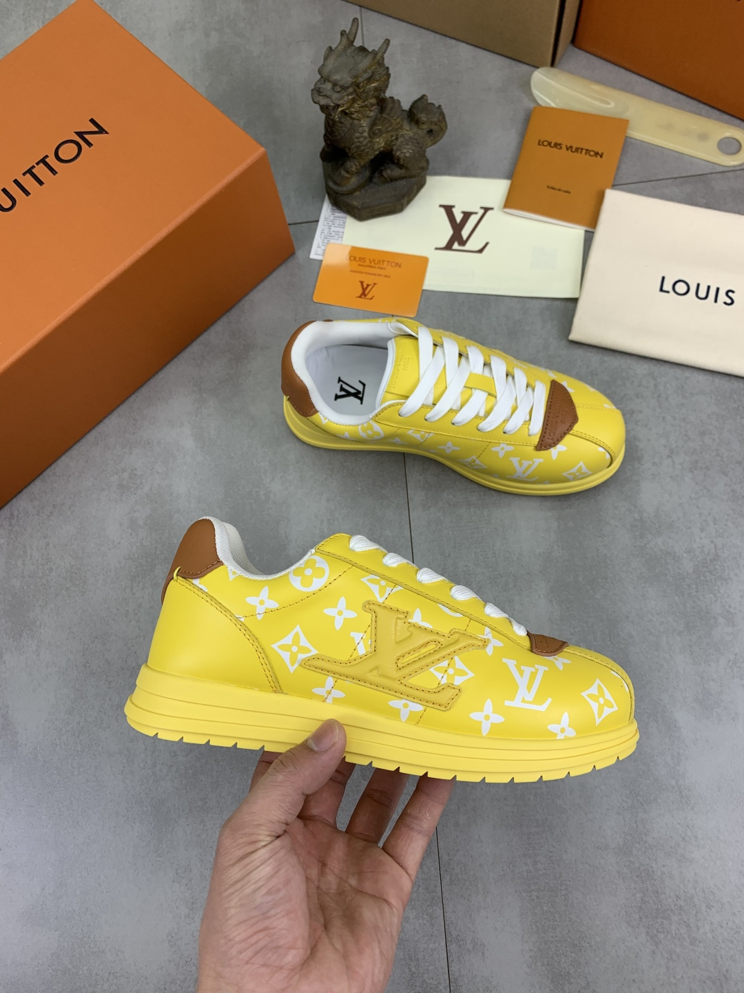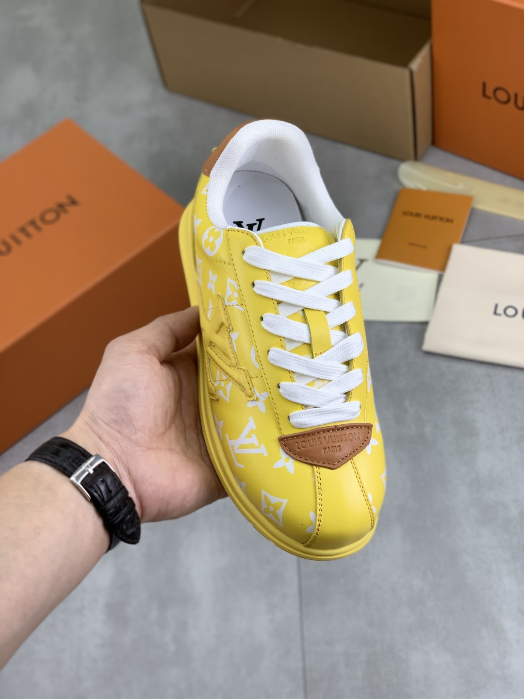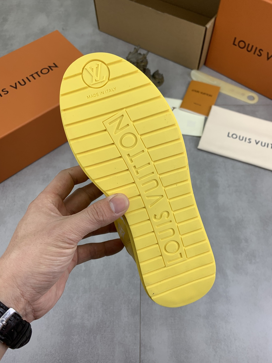 This shoes is AAAAA 1:1 quality (superb). Materials used are identical to the original ones. Louis Vuitton trademark marks are indistinguishable to the authentic. Photos take by actual shoes, what you receive will be 100% same with our photos.