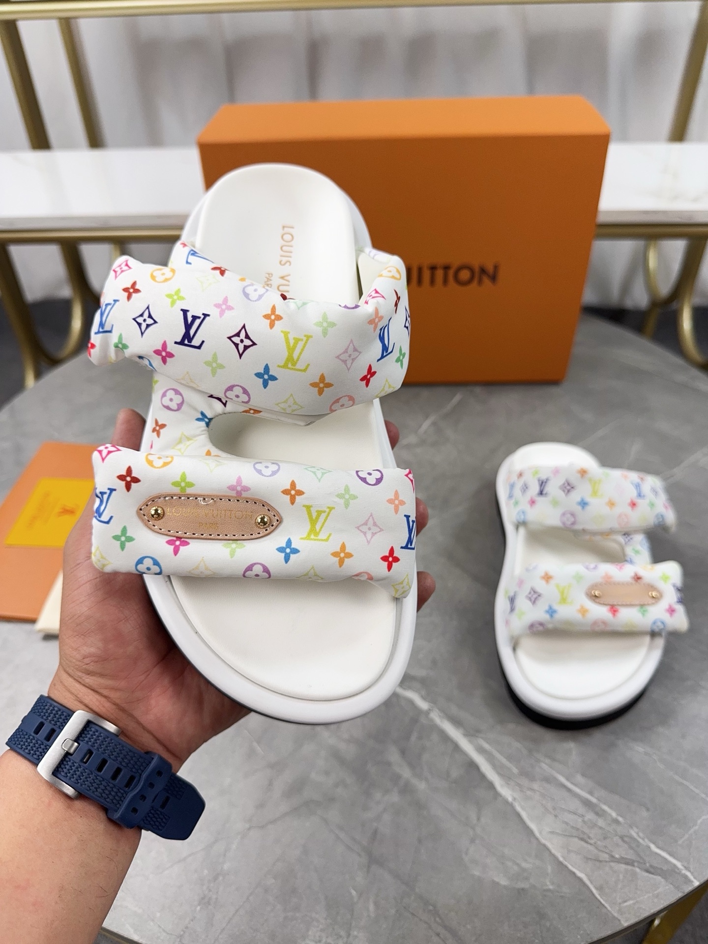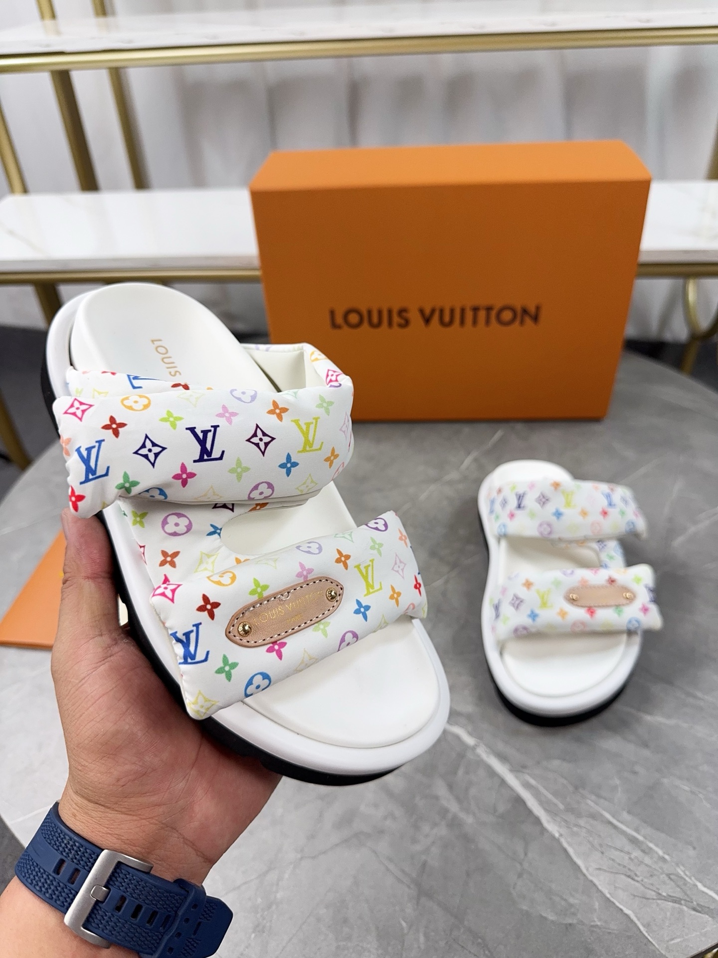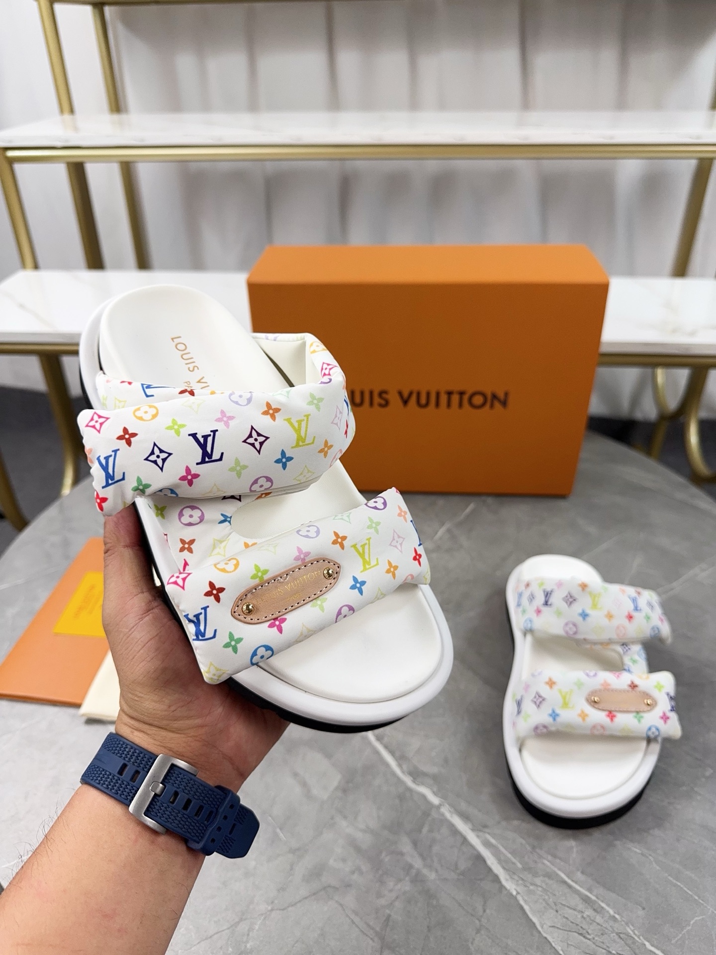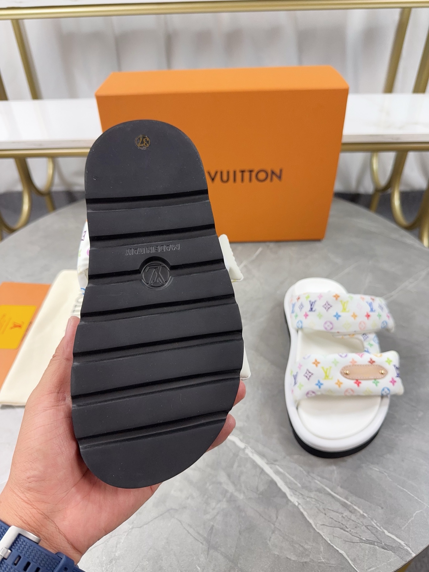 This shoes is AAAAA 1:1 quality (superb). Materials used are identical to the original ones. Louis Vuitton trademark marks are indistinguishable to the authentic. Photos take by actual shoes, what you receive will be 100% same with our photos.