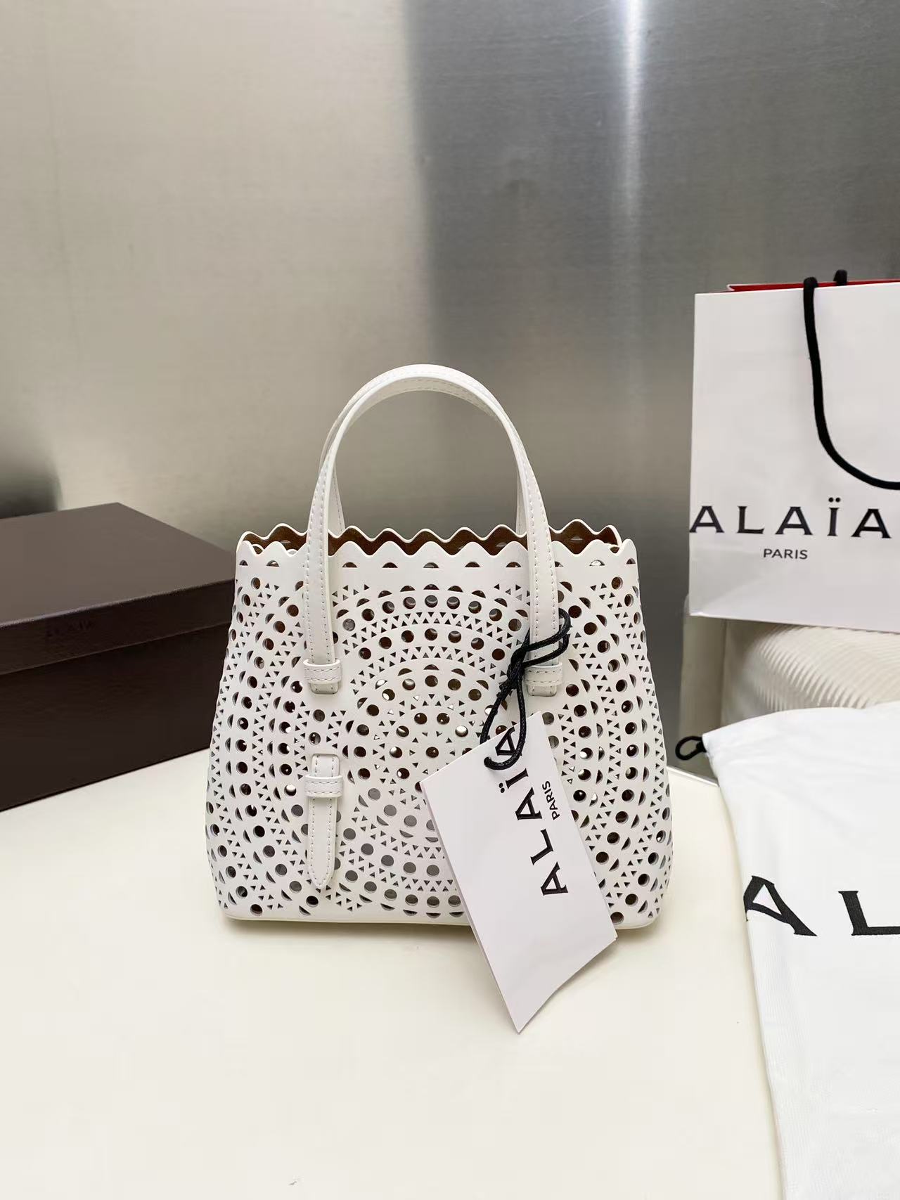 This bags is AAAAA 1:1 quality (superb). Materials used are identical to the original ones. Alaia trademark marks are indistinguishable to the authentic. Photos take by actual bags, what you receive will be 100% same with our photos.