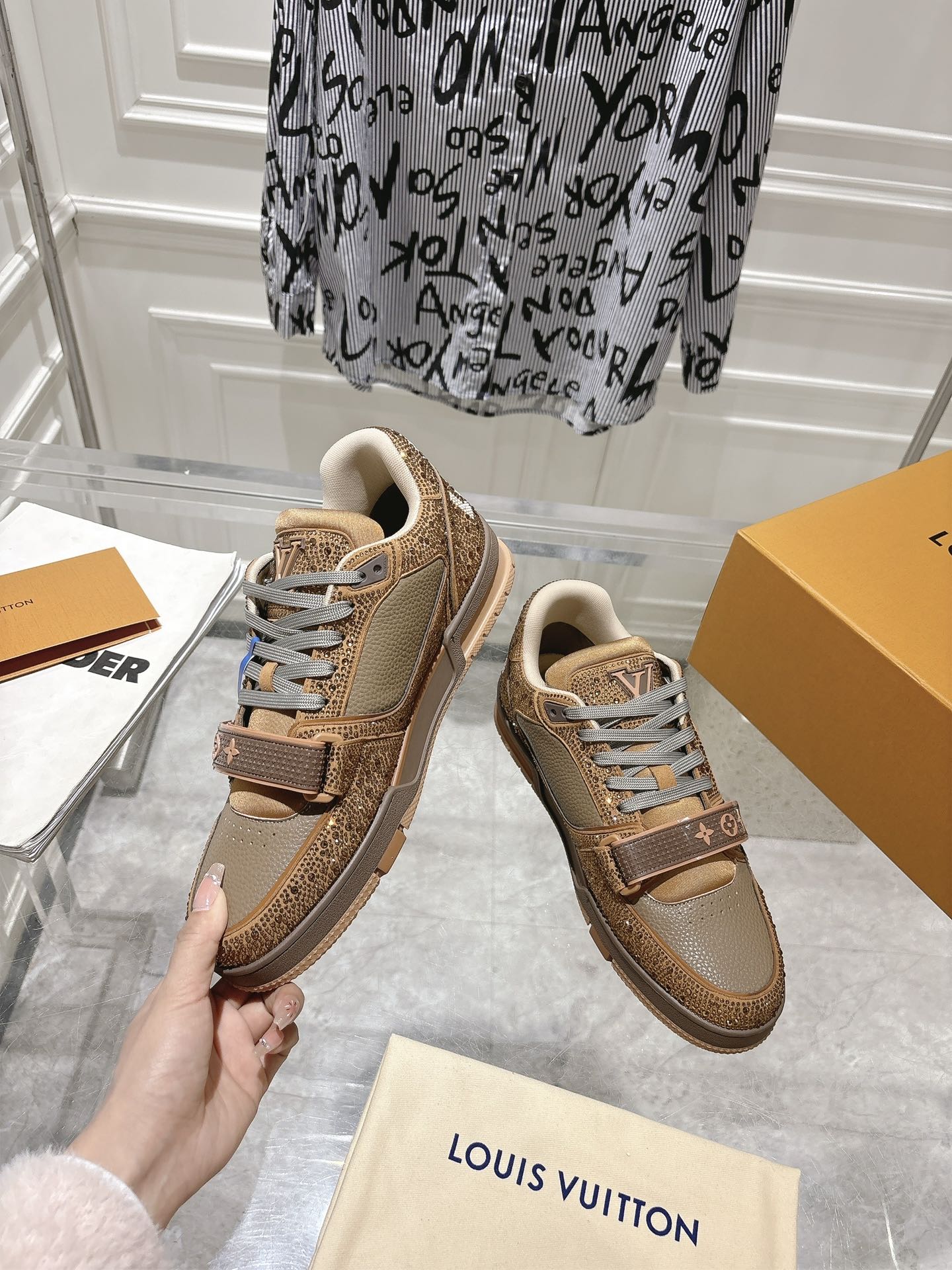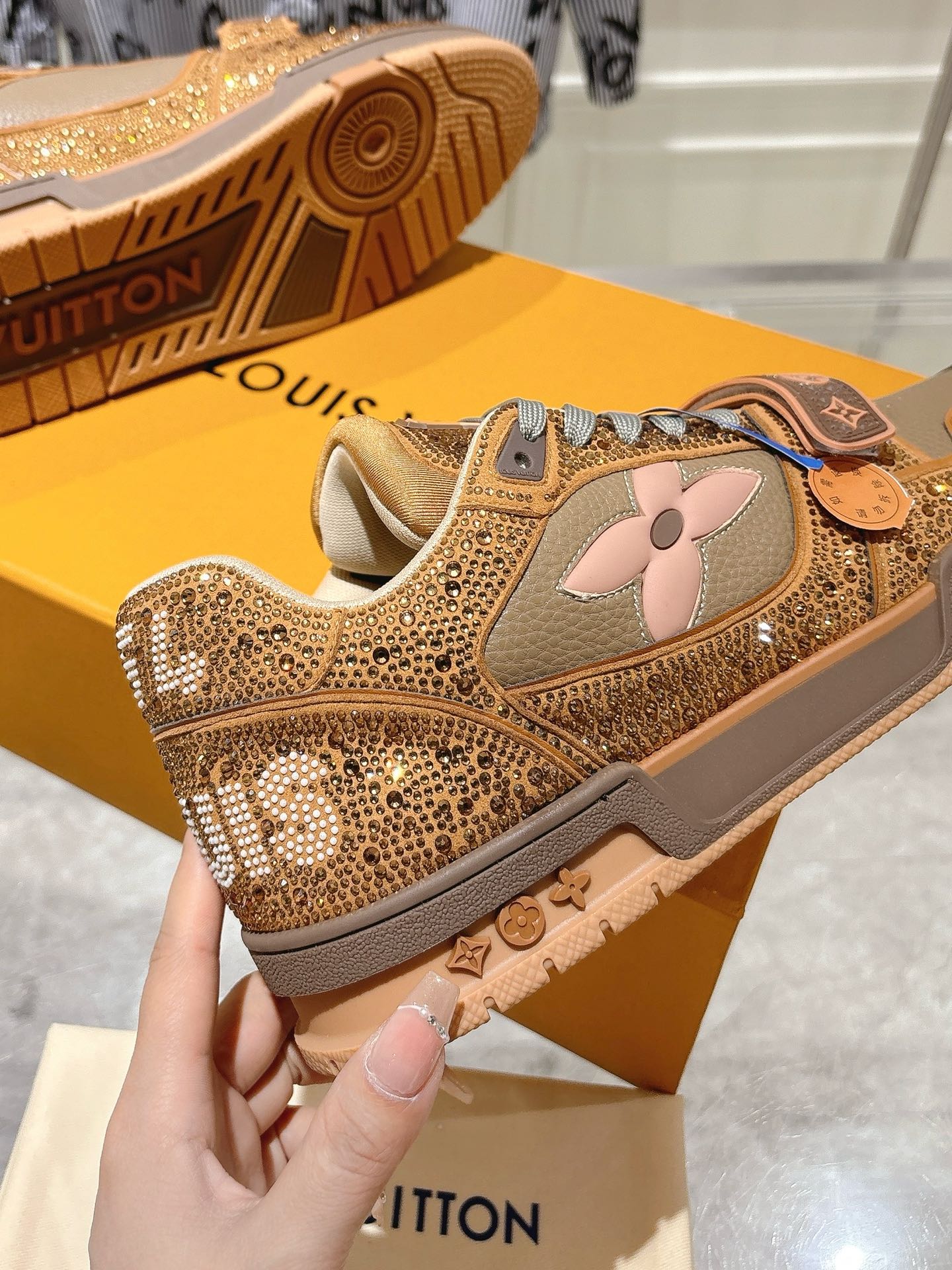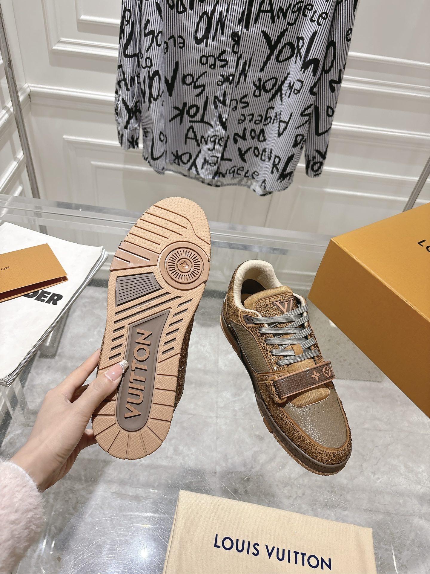 This shoes is AAAAA 1:1 quality (superb). Materials used are identical to the original ones. Louis Vuitton trademark marks are indistinguishable to the authentic. Photos take by actual shoes, what you receive will be 100% same with our photos.