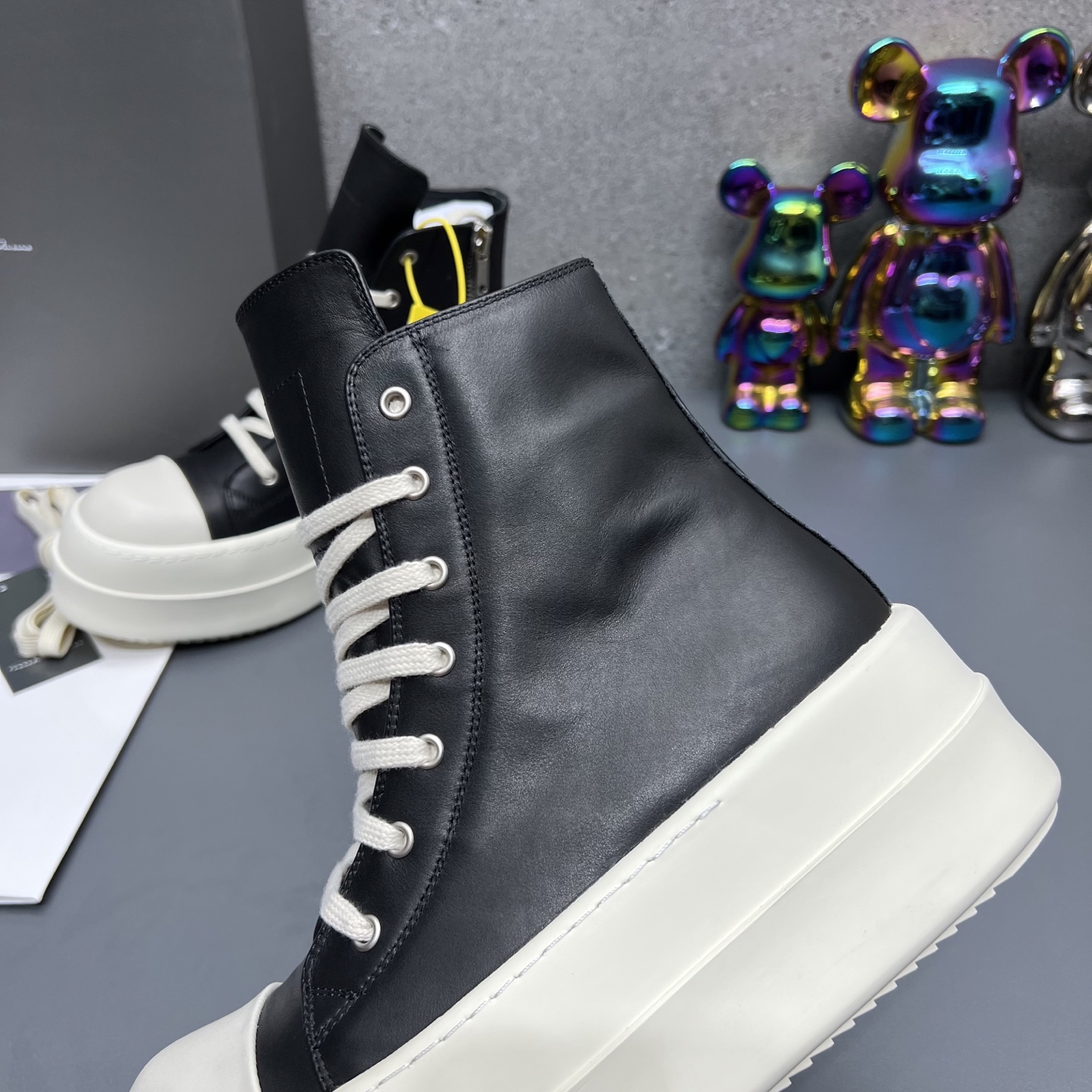 This shoes is AAAAA 1:1 quality (superb). Materials used are identical to the original ones. Rick Owens trademark marks are indistinguishable to the authentic. Photos take by actual shoes, what you receive will be 100% same with our photos.