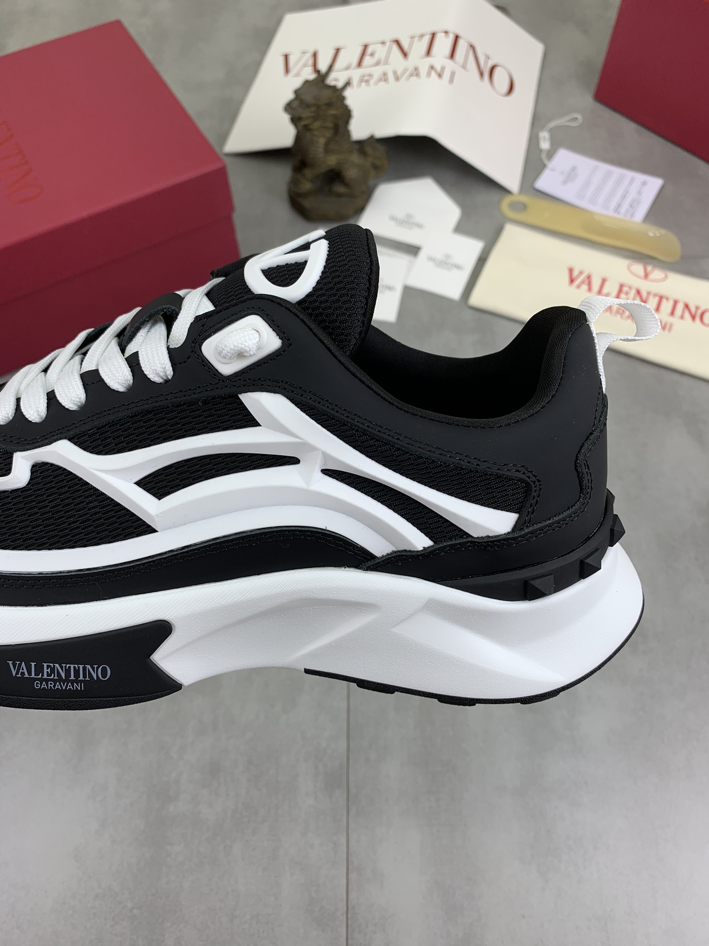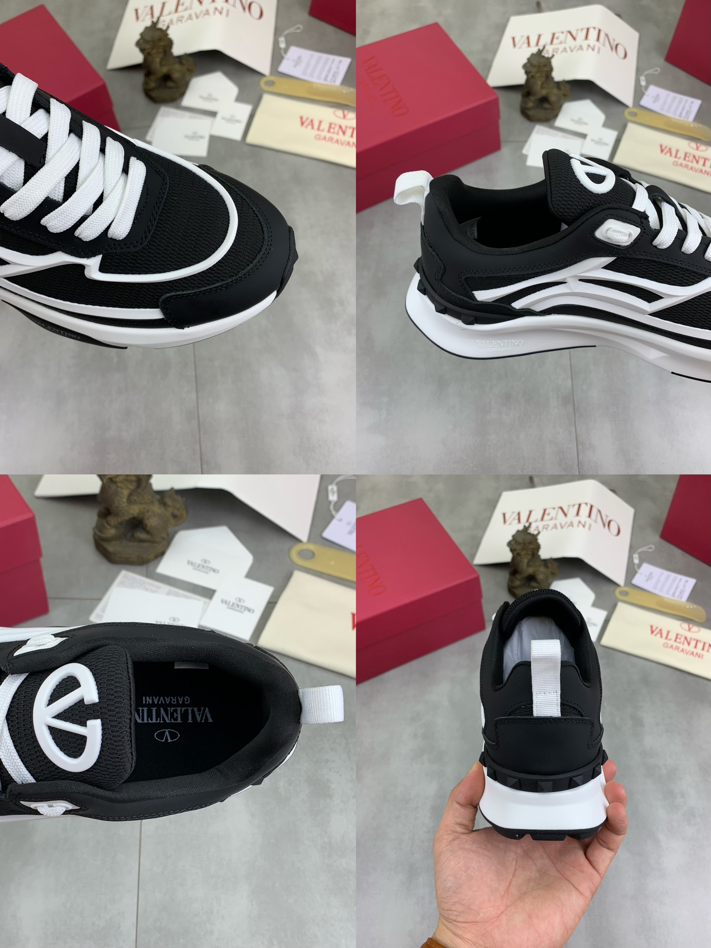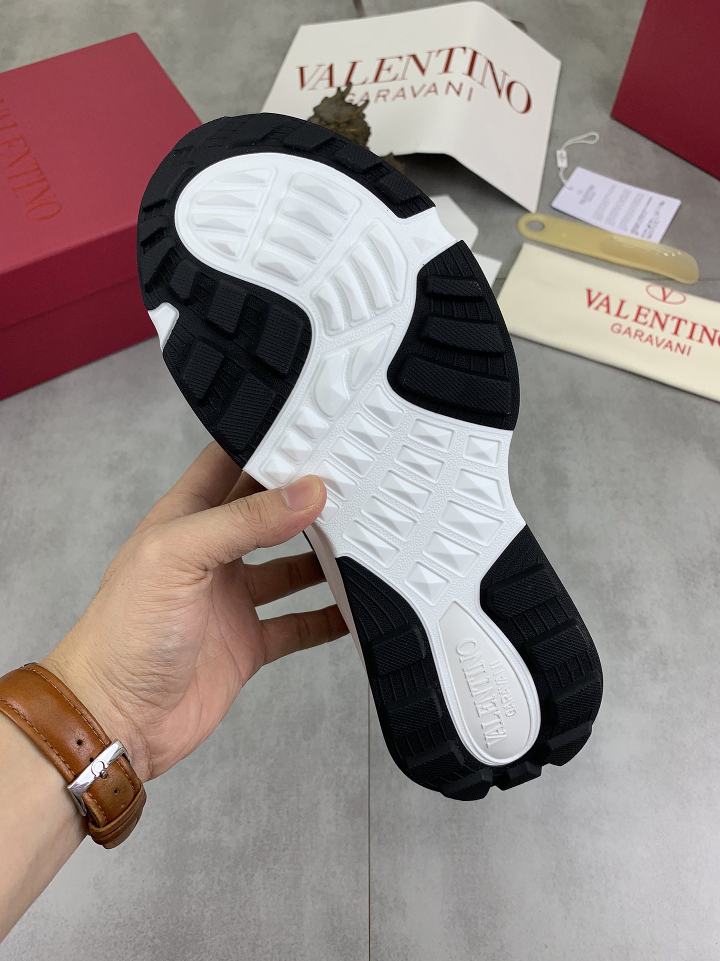 This shoes is AAAAA 1:1 quality (superb). Materials used are identical to the original ones. Valentino trademark marks are indistinguishable to the authentic. Photos take by actual shoes, what you receive will be 100% same with our photos.
