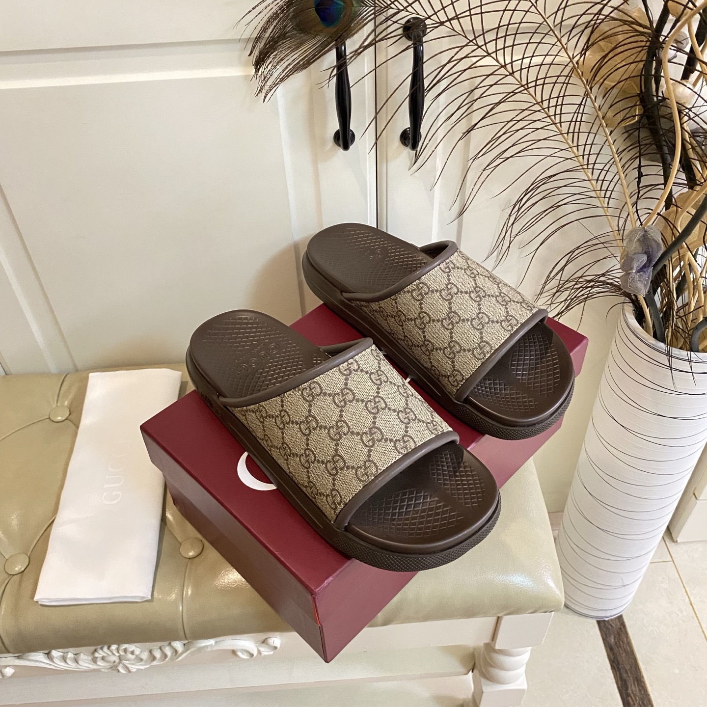 This shoes is AAAAA 1:1 quality (superb). Materials used are identical to the original ones. Gucci trademark marks are indistinguishable to the authentic. Photos take by actual shoes, what you receive will be 100% same with our photos.