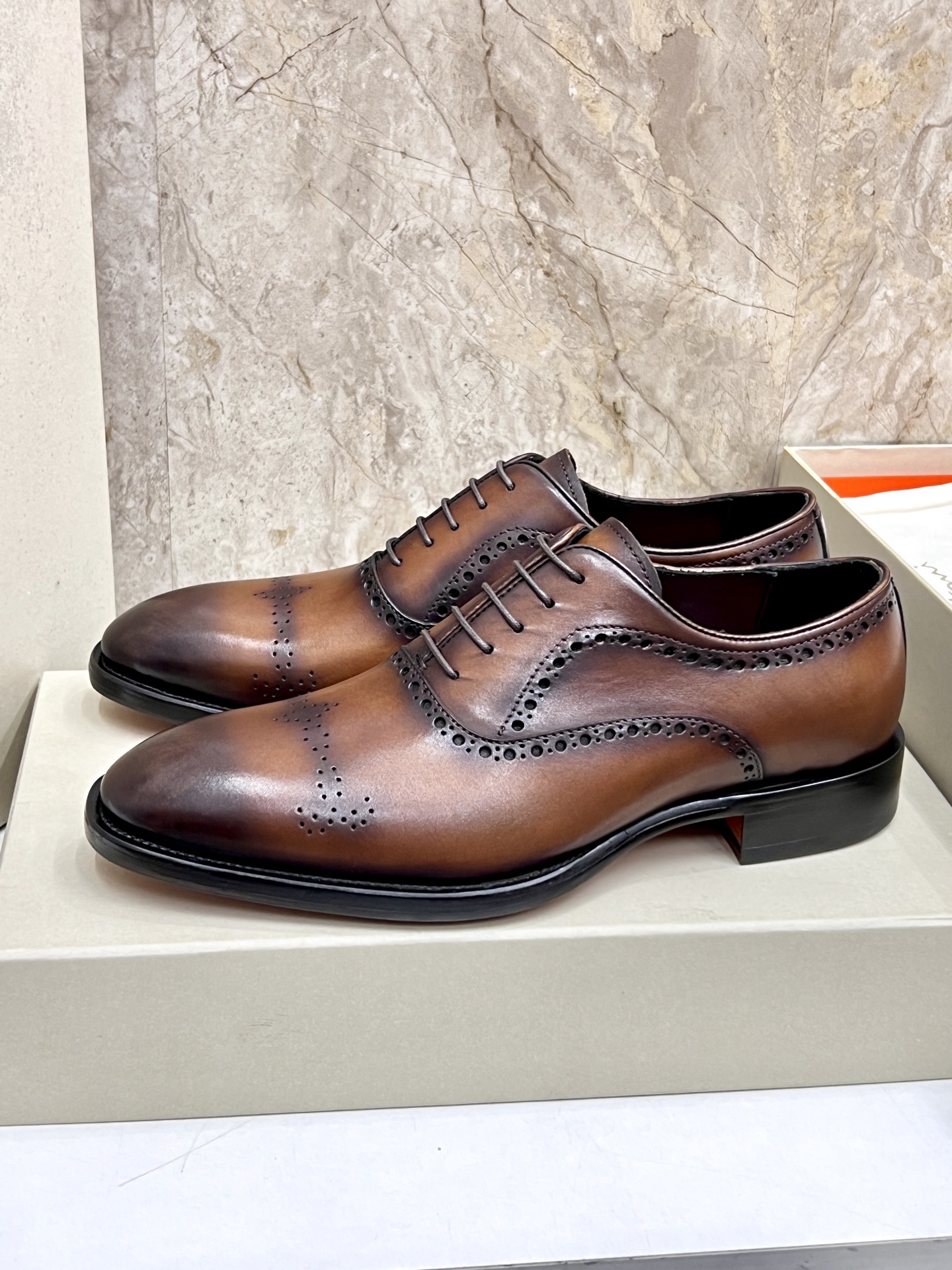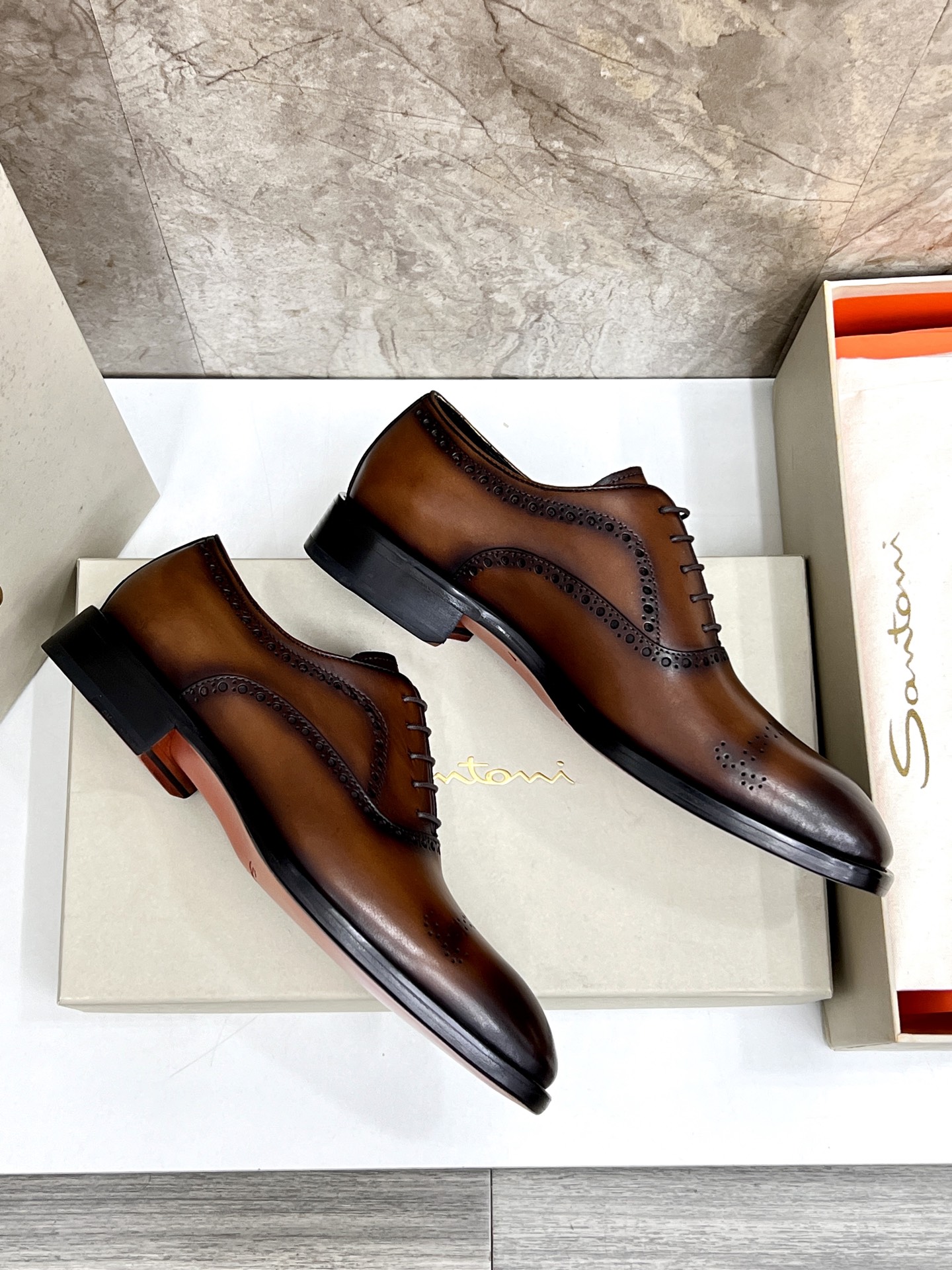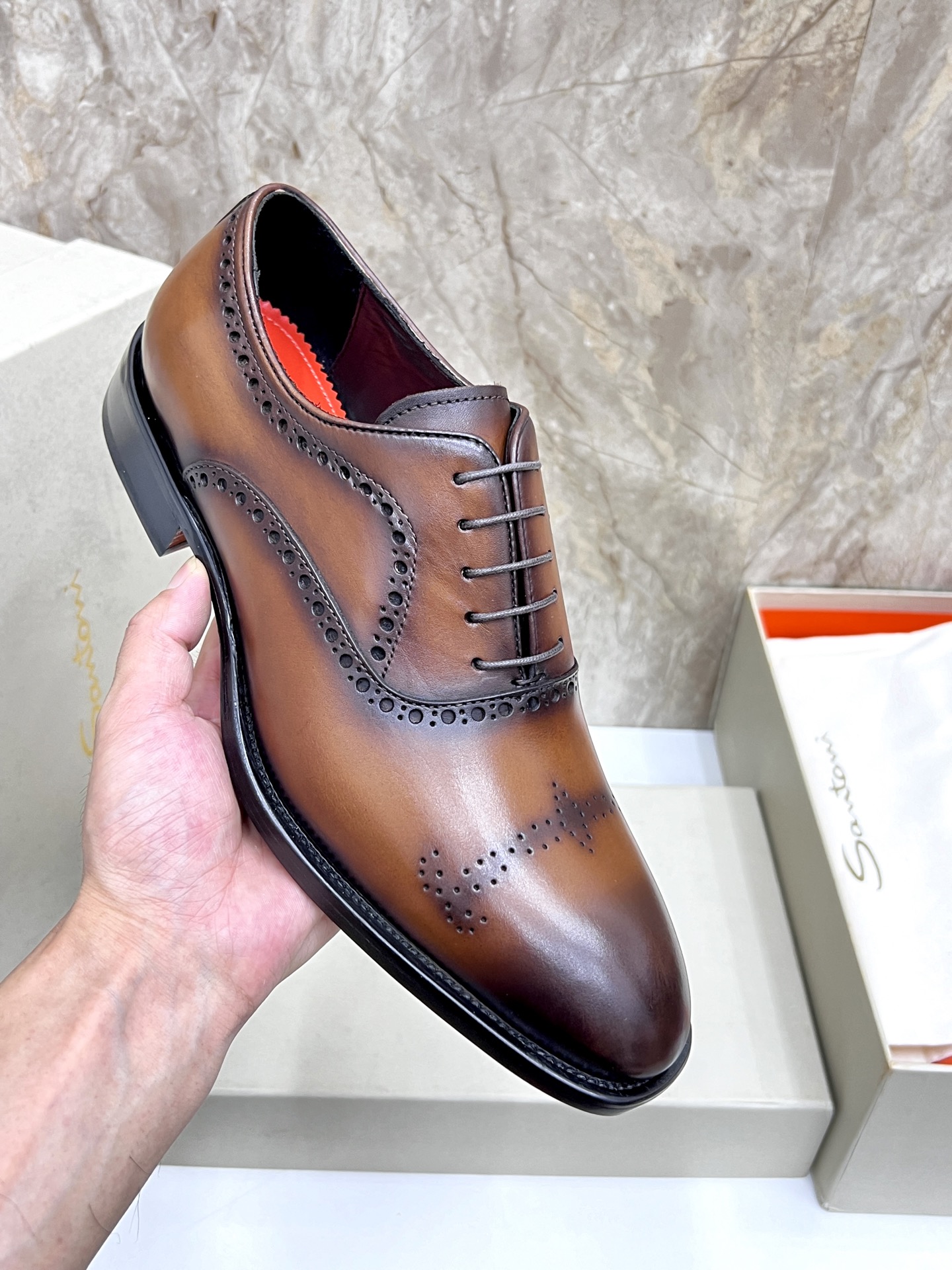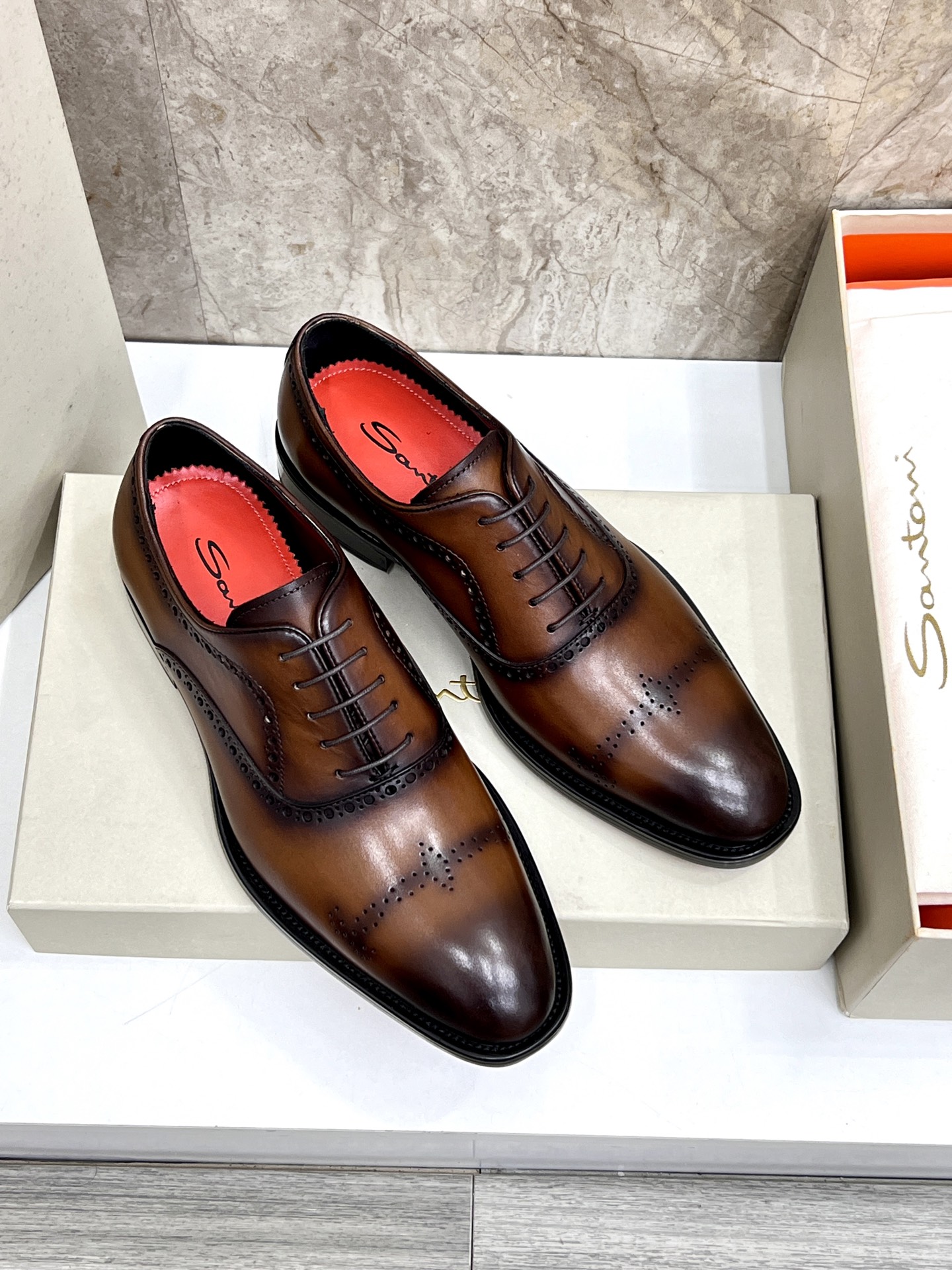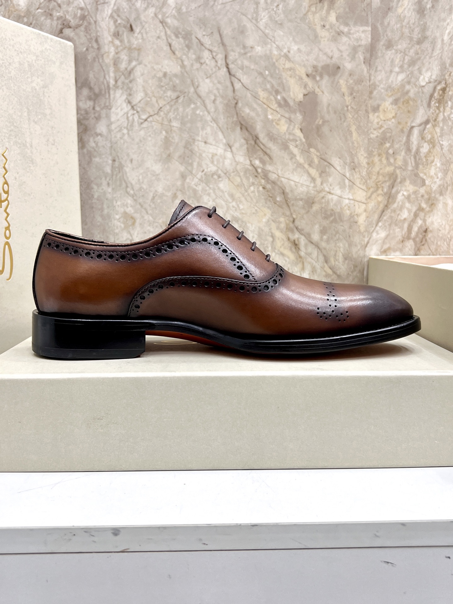 This shoes is AAAAA 1:1 quality (superb). Materials used are identical to the original ones. Santoni trademark marks are indistinguishable to the authentic. Photos take by actual shoes, what you receive will be 100% same with our photos.