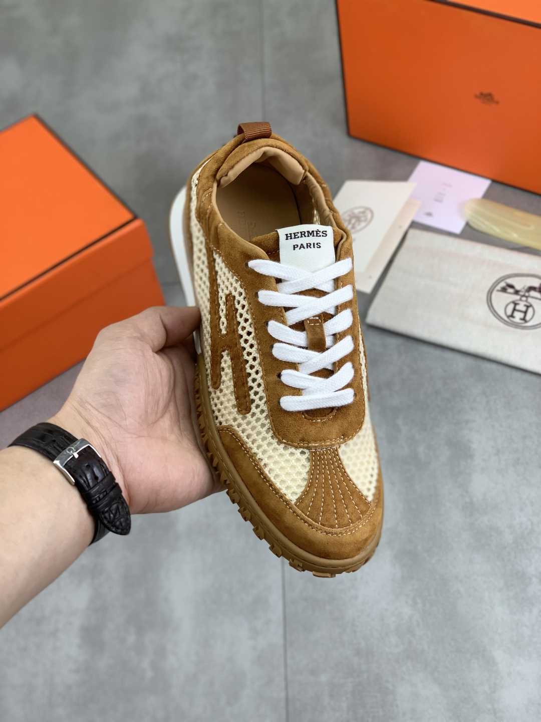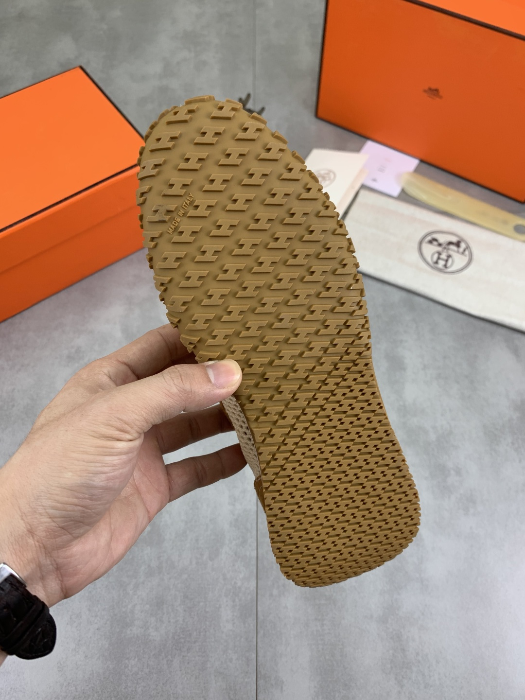 This shoes is AAAAA 1:1 quality (superb). Materials used are identical to the original ones. Hermes trademark marks are indistinguishable to the authentic. Photos take by actual shoes, what you receive will be 100% same with our photos.