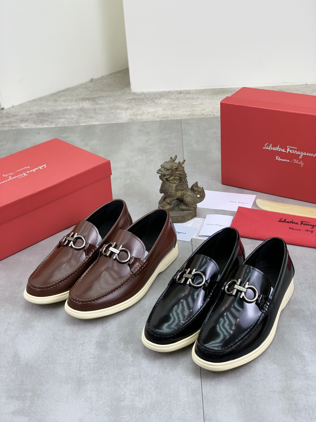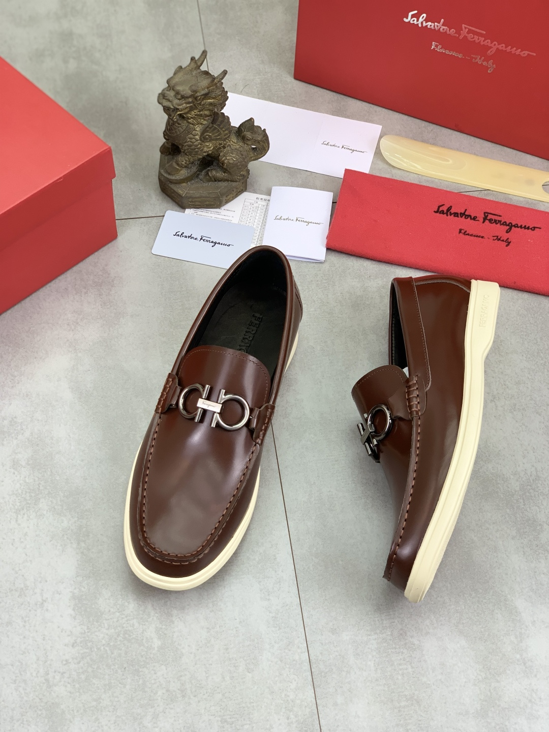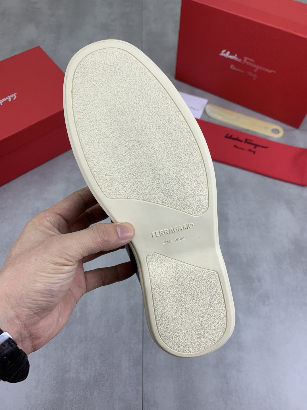 This shoes is AAAAA 1:1 quality (superb). Materials used are identical to the original ones. Salvatore Ferragamo trademark marks are indistinguishable to the authentic. Photos take by actual shoes, what you receive will be 100% same with our photos.