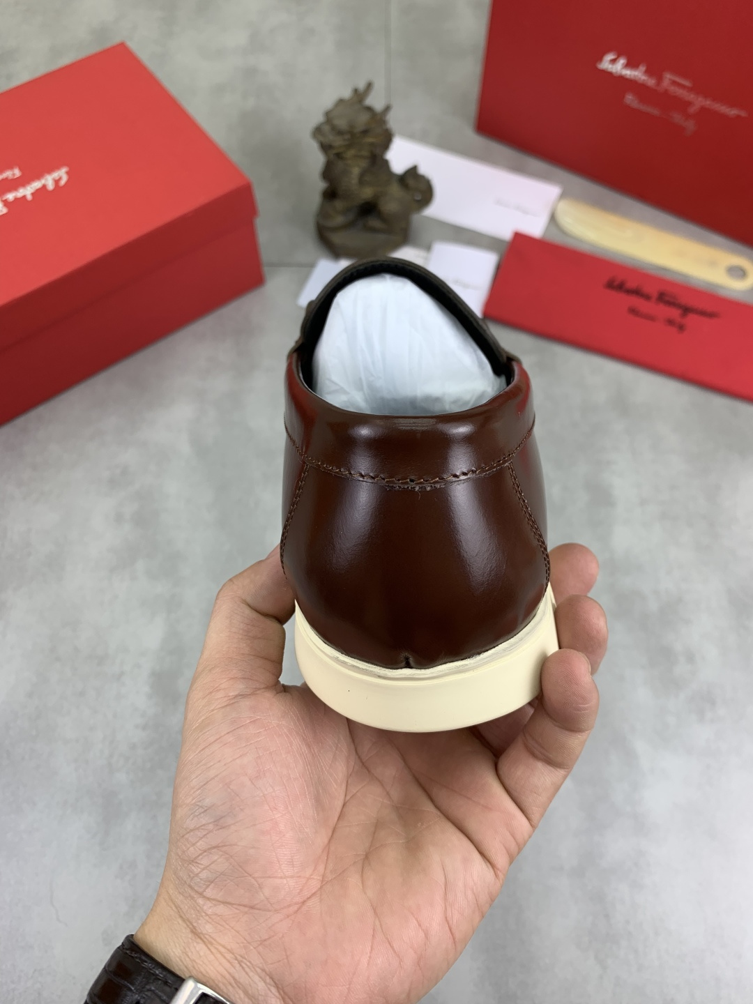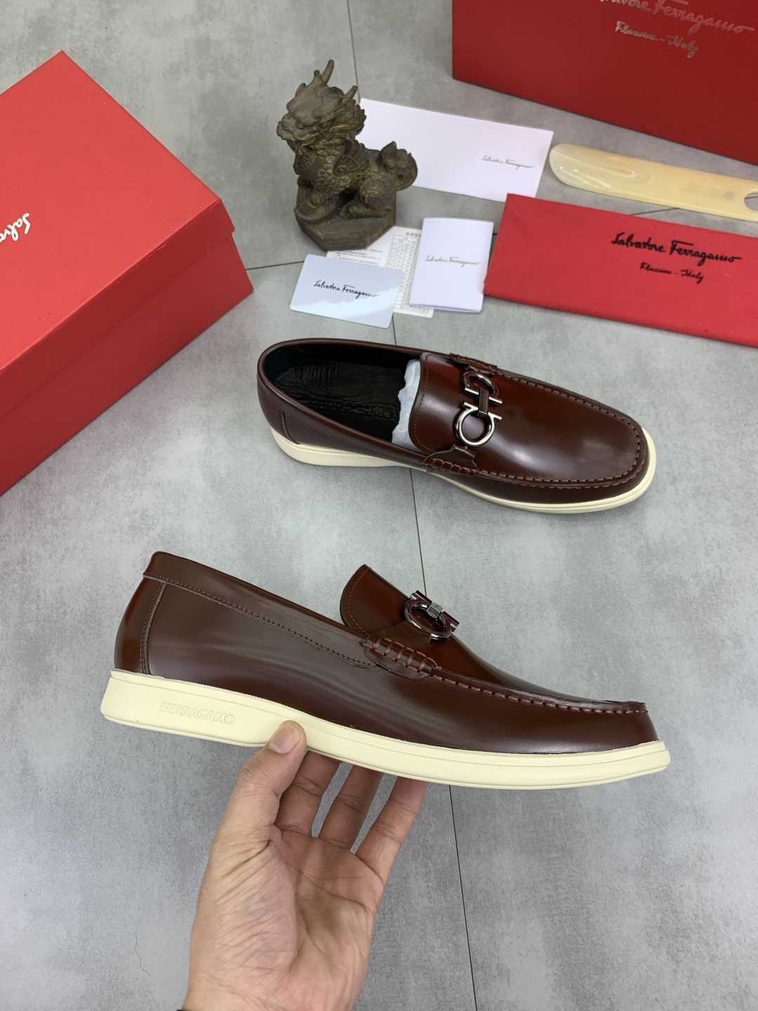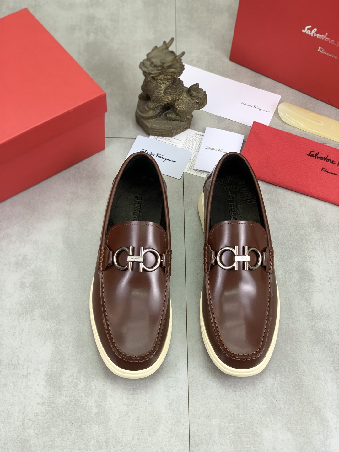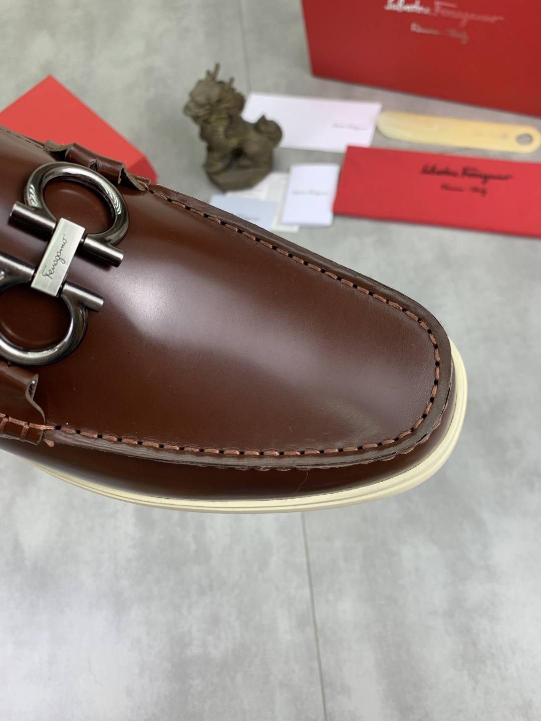 This shoes is AAAAA 1:1 quality (superb). Materials used are identical to the original ones. Salvatore Ferragamo trademark marks are indistinguishable to the authentic. Photos take by actual shoes, what you receive will be 100% same with our photos.