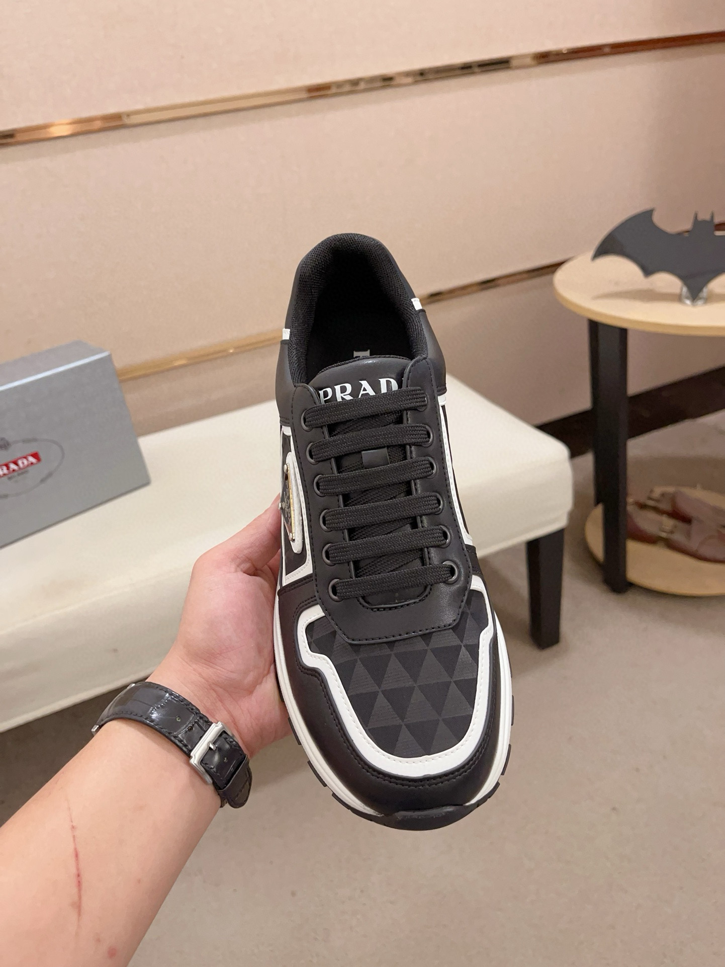This shoes is AAAAA 1:1 quality (superb). Materials used are identical to the original ones. Prada trademark marks are indistinguishable to the authentic. Photos take by actual shoes, what you receive will be 100% same with our photos.