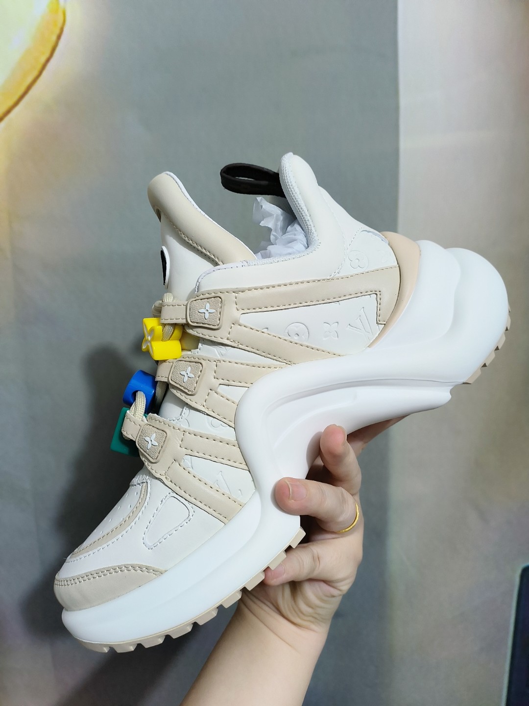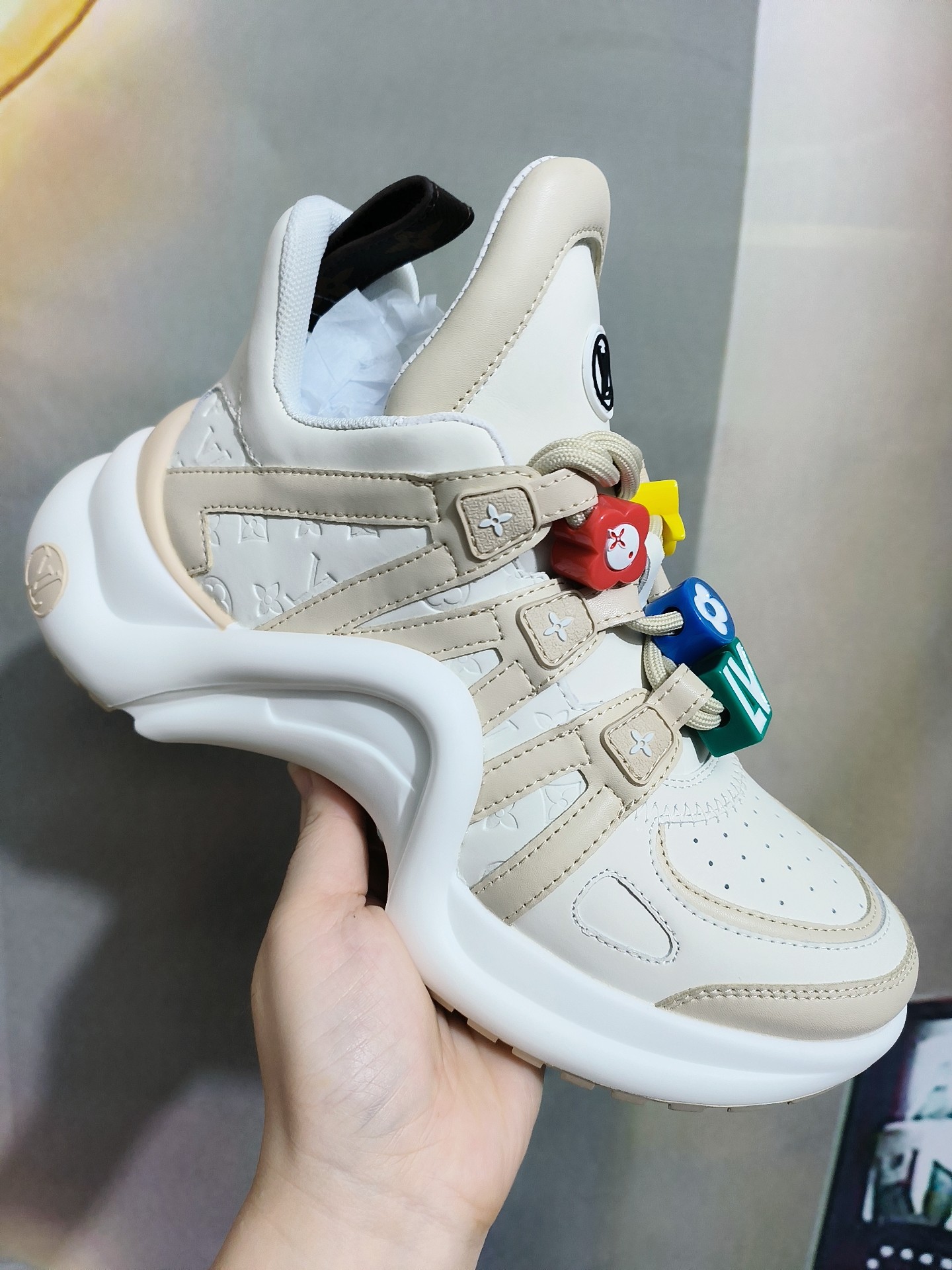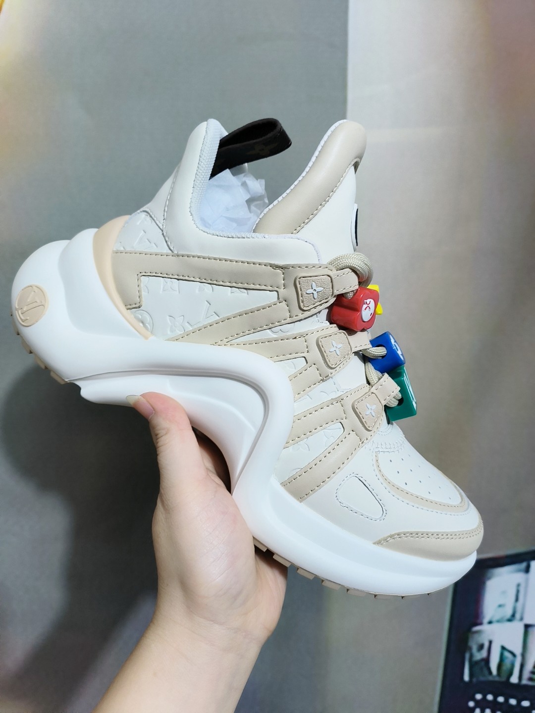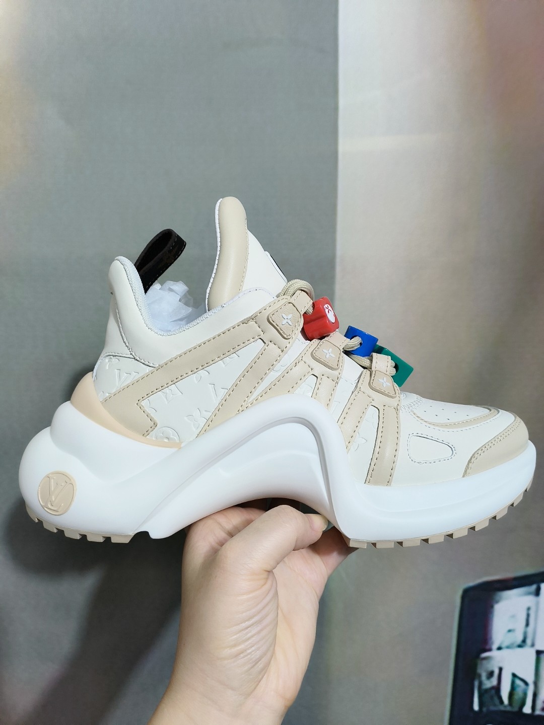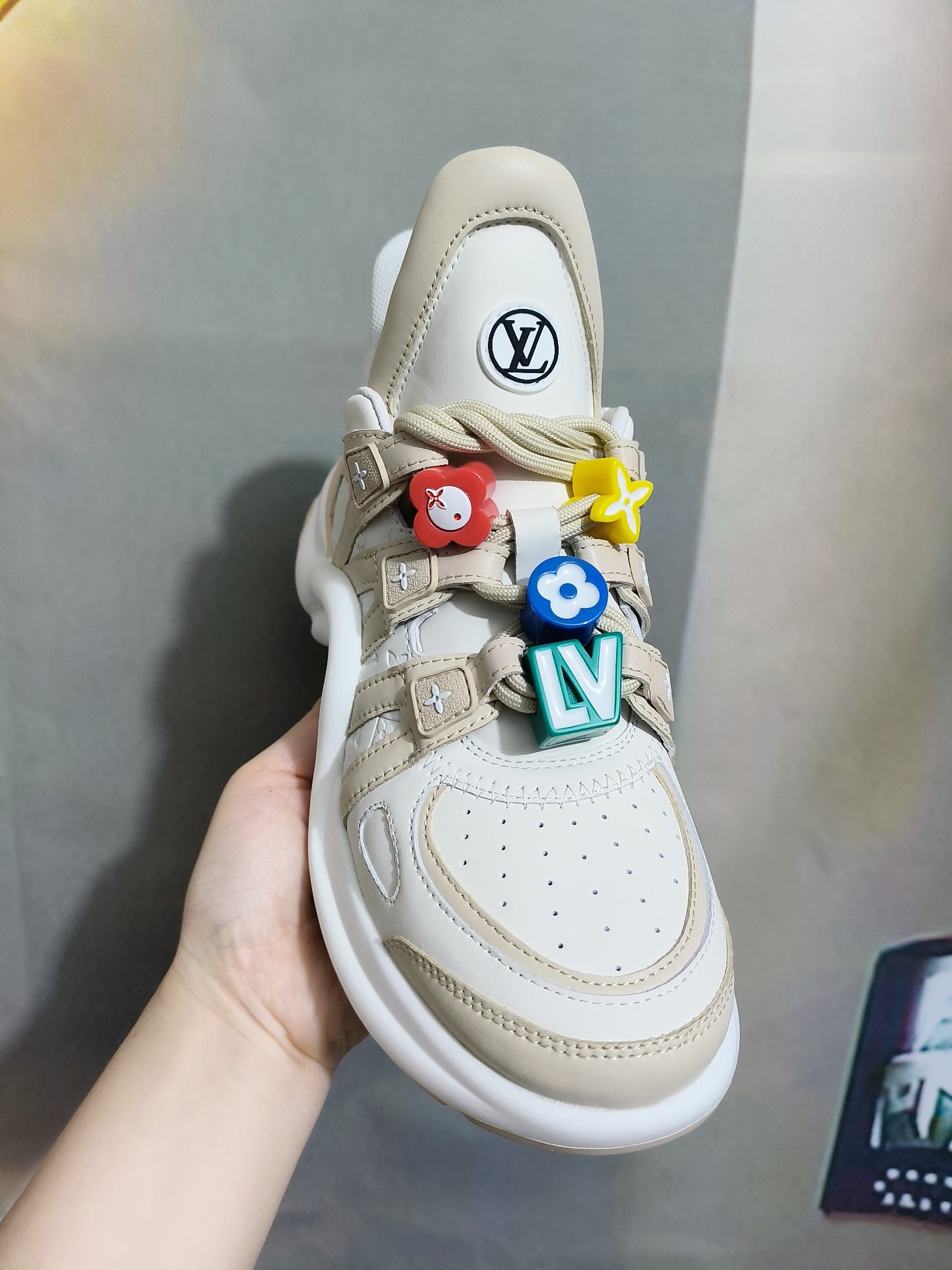 This shoes is AAAAA 1:1 quality (superb). Materials used are identical to the original ones. Louis Vuitton trademark marks are indistinguishable to the authentic. Photos take by actual shoes, what you receive will be 100% same with our photos.