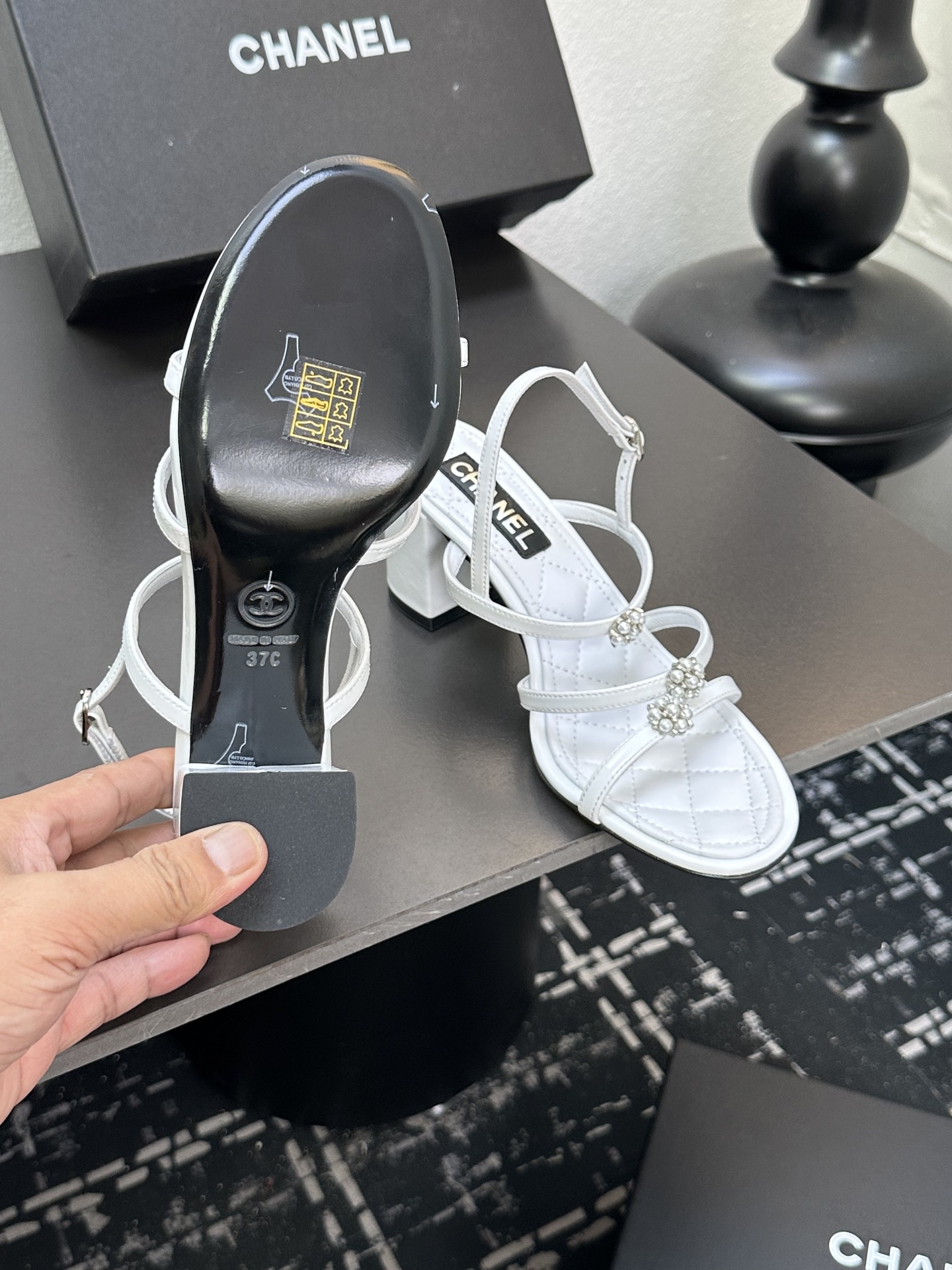 NO:3185837. The shoes is from Chanel designer.