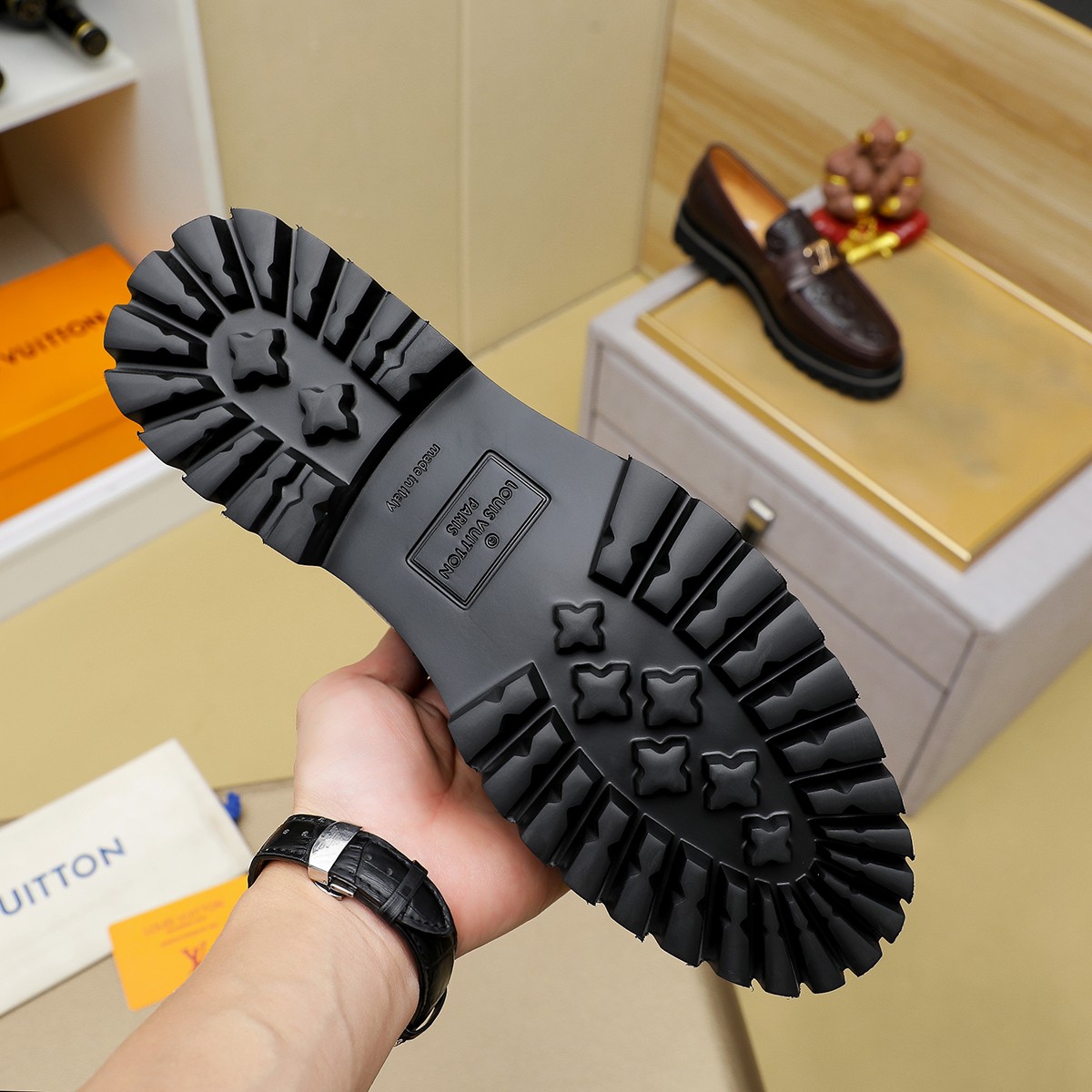 This shoes is AAAAA 1:1 quality (superb). Materials used are identical to the original ones. Louis Vuitton trademark marks are indistinguishable to the authentic. Photos take by actual shoes, what you receive will be 100% same with our photos.