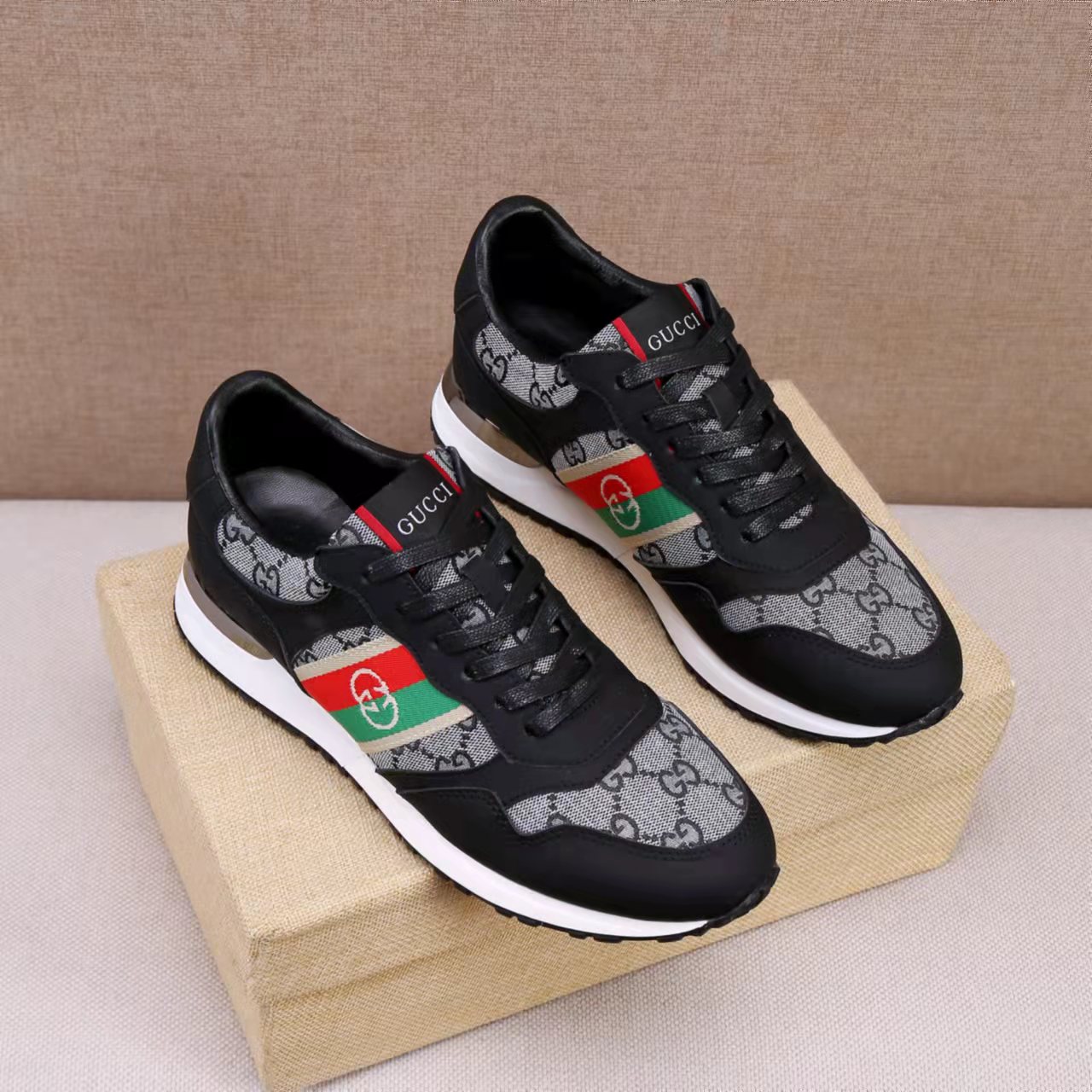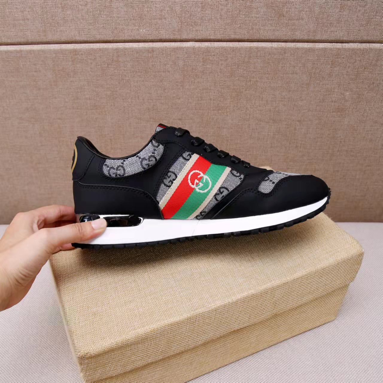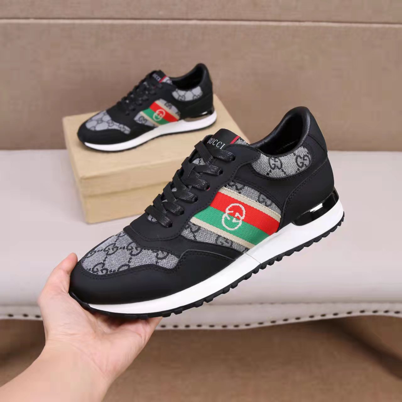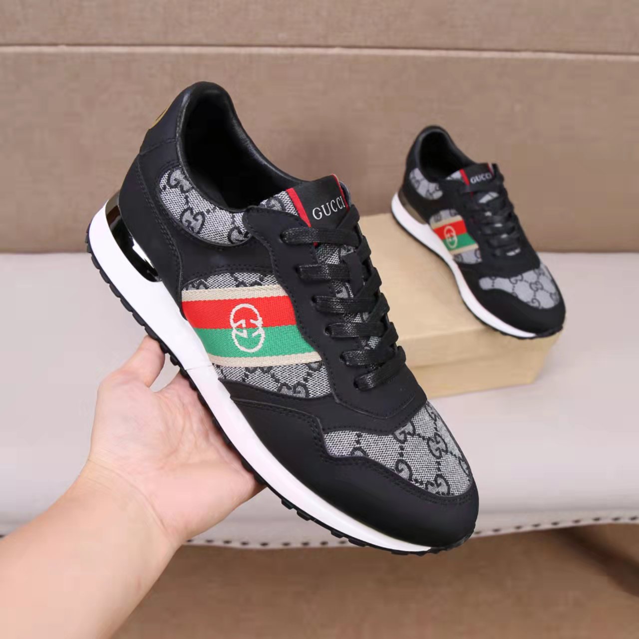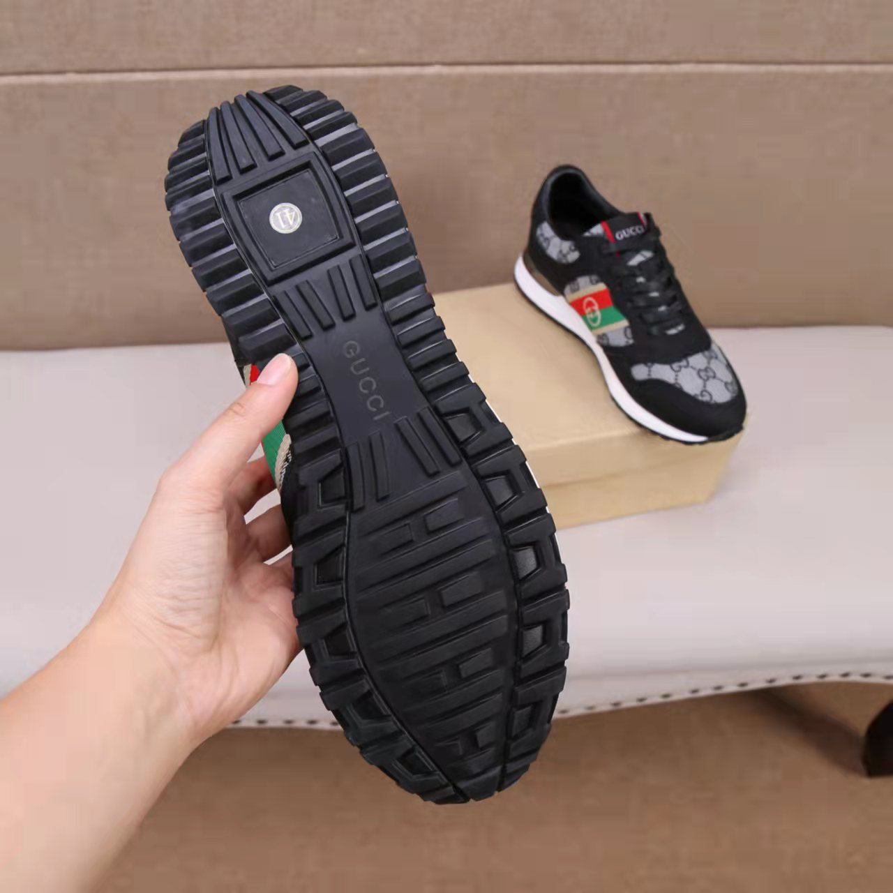 This shoes is AAAAA 1:1 quality (superb). Materials used are identical to the original ones. Gucci trademark marks are indistinguishable to the authentic. Photos take by actual shoes, what you receive will be 100% same with our photos.