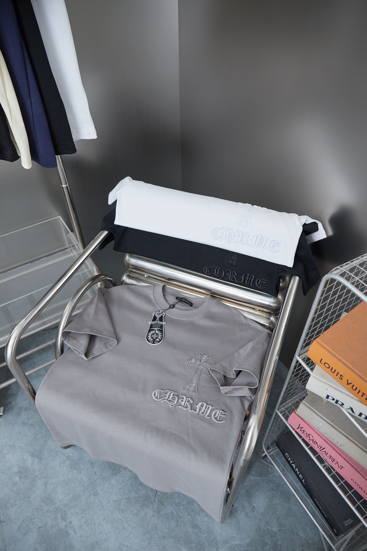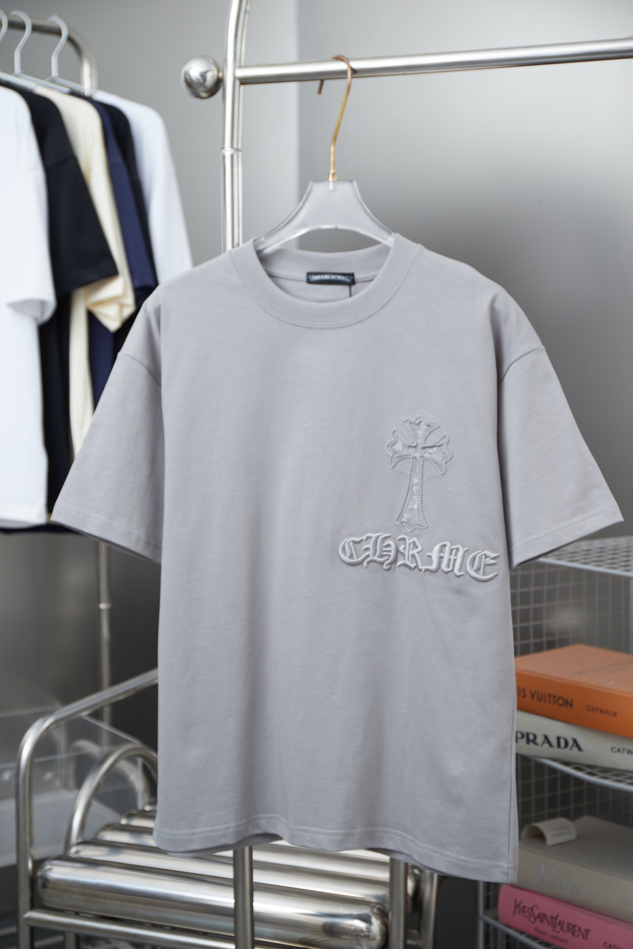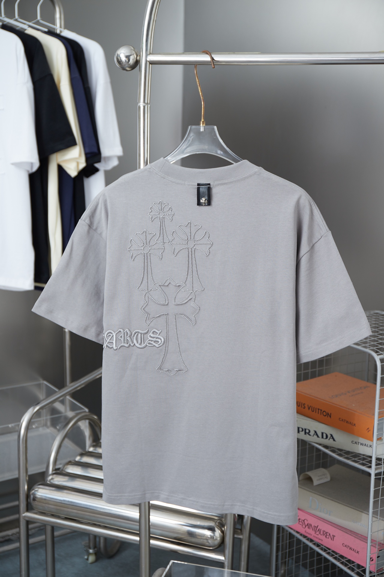 NO:3194144. The clothes is from Chrome Hearts designer.