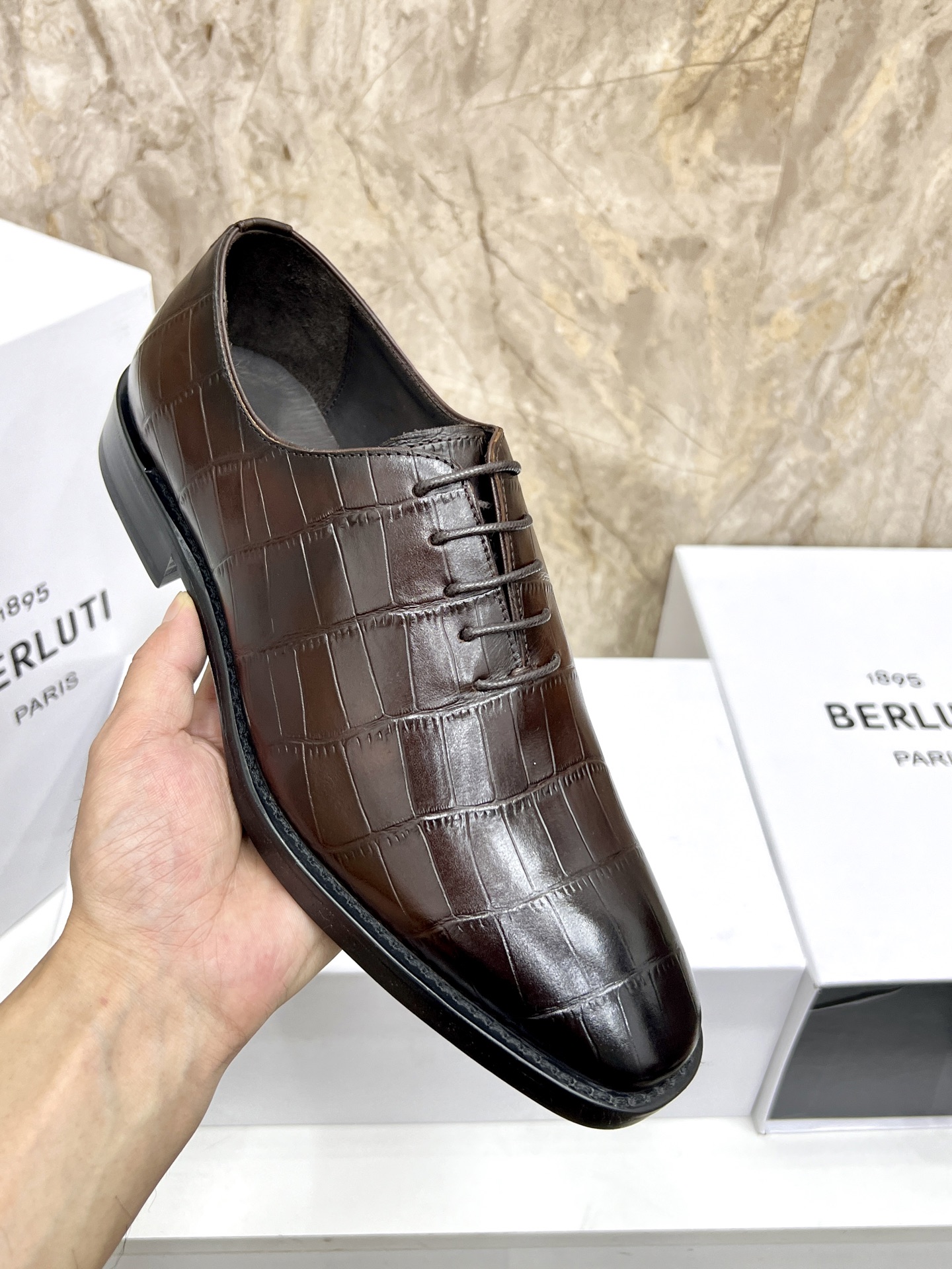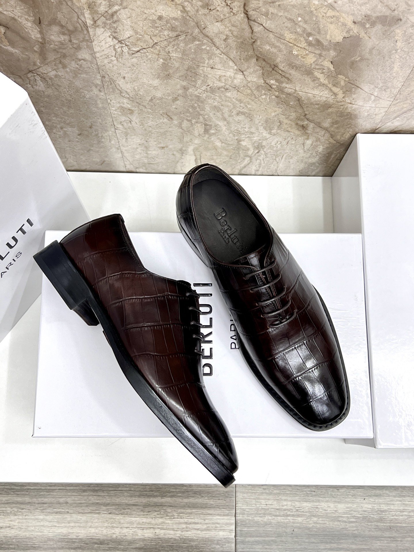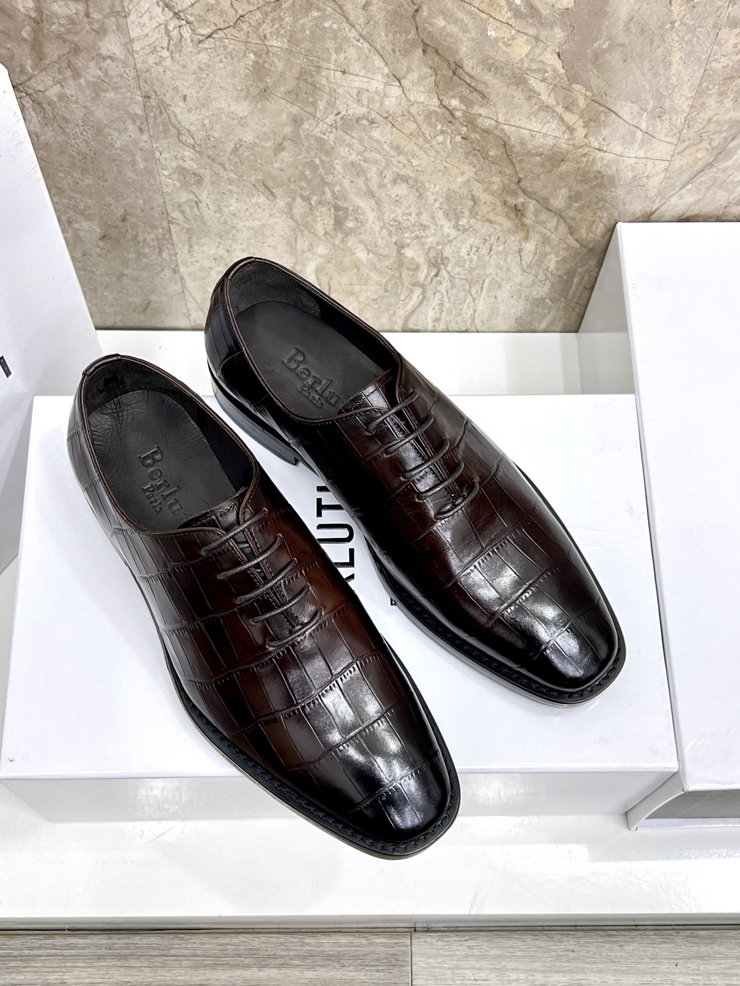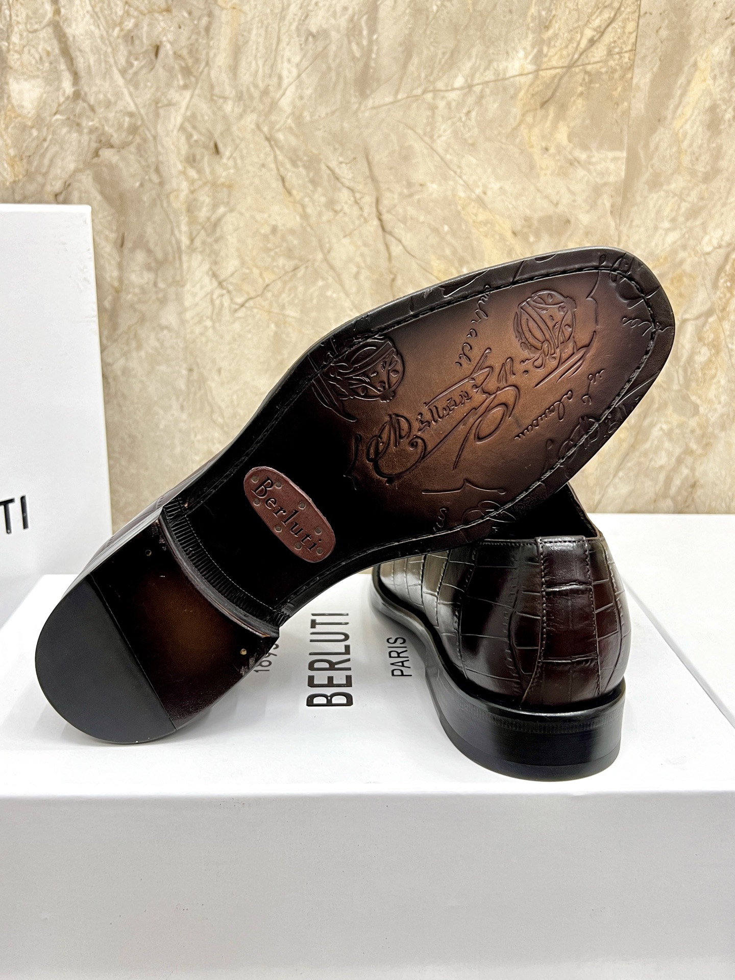 This shoes is AAAAA 1:1 quality (superb). Materials used are identical to the original ones. Berluti trademark marks are indistinguishable to the authentic. Photos take by actual shoes, what you receive will be 100% same with our photos.