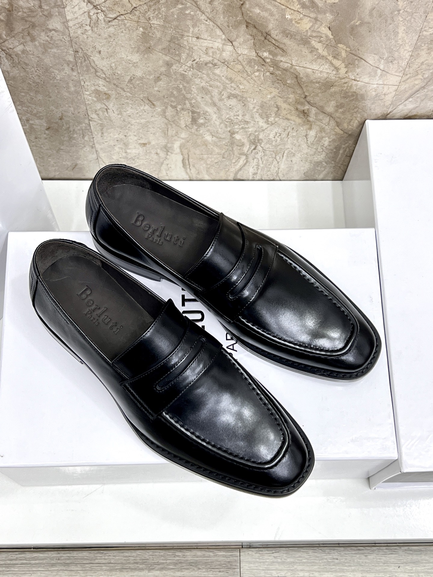 This shoes is AAAAA 1:1 quality (superb). Materials used are identical to the original ones. Berluti trademark marks are indistinguishable to the authentic. Photos take by actual shoes, what you receive will be 100% same with our photos.