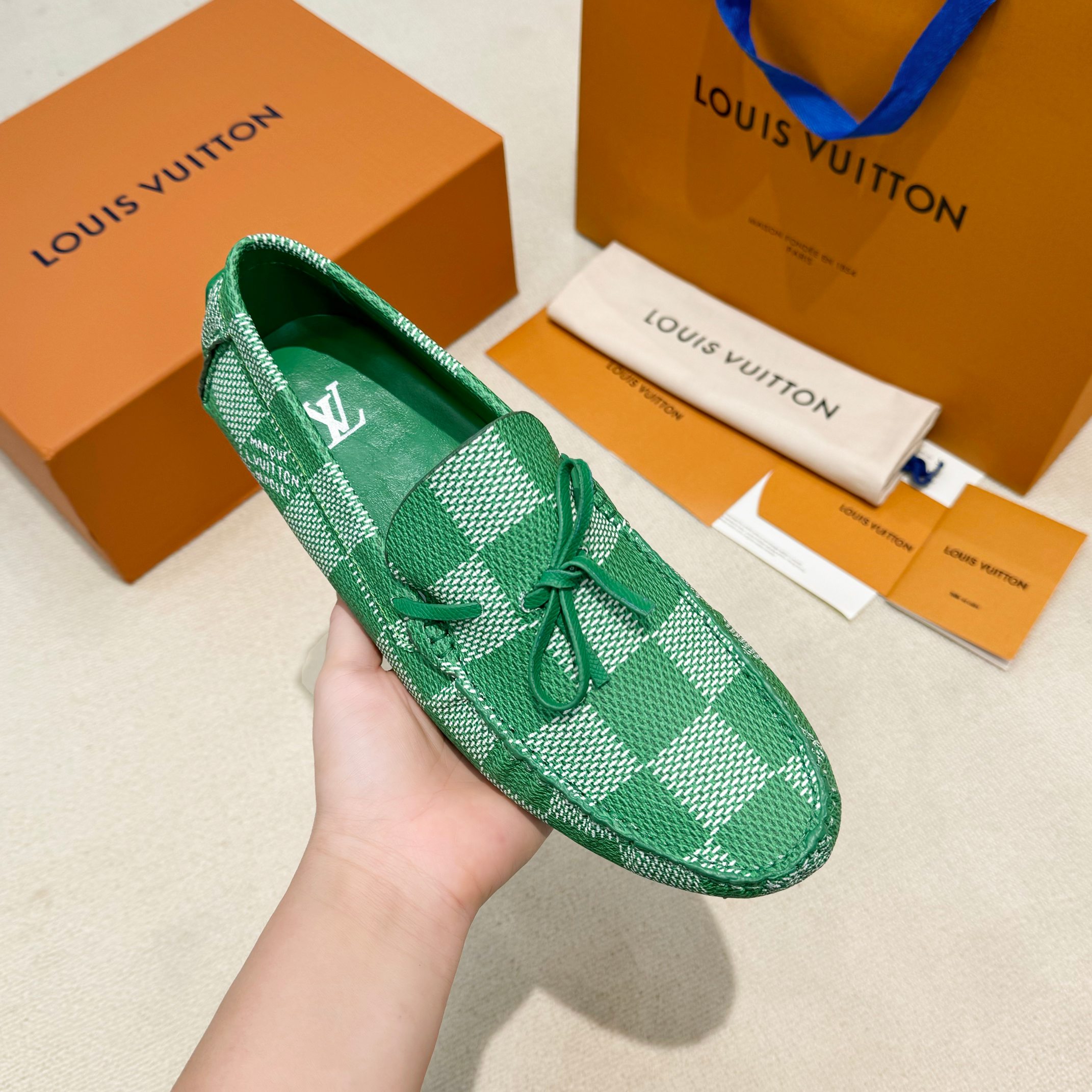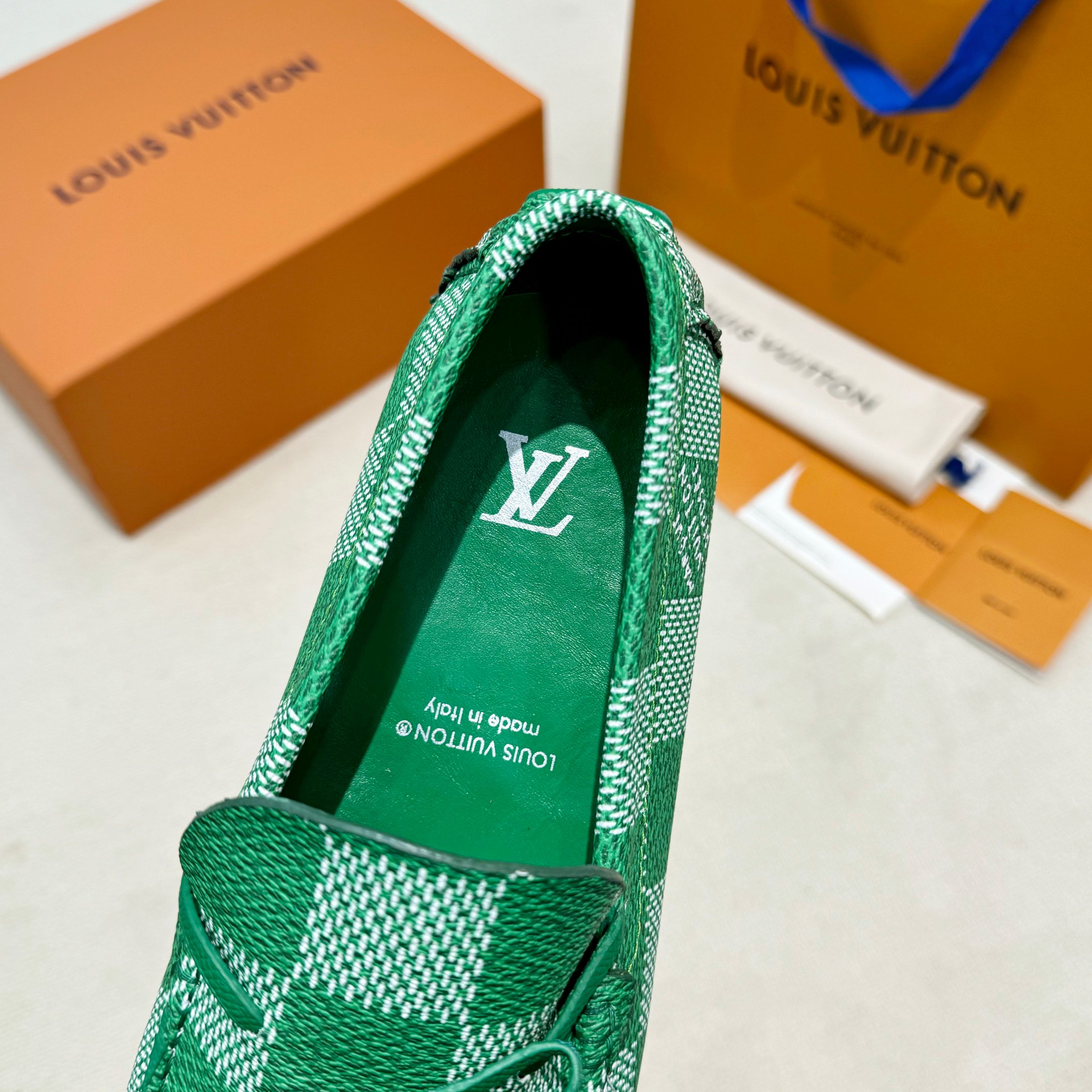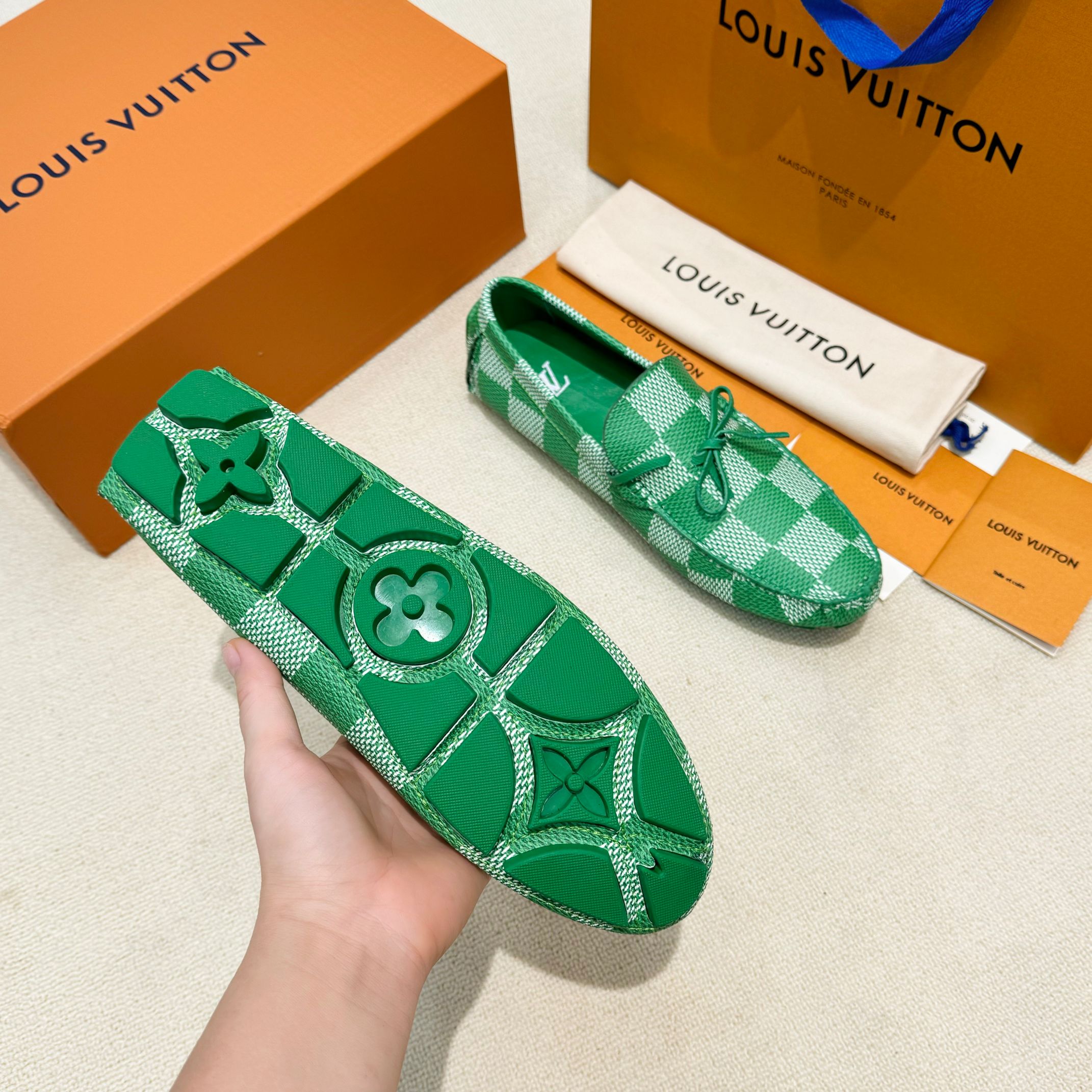 This shoes is AAAAA 1:1 quality (superb). Materials used are identical to the original ones. Louis Vuitton trademark marks are indistinguishable to the authentic. Photos take by actual shoes, what you receive will be 100% same with our photos.