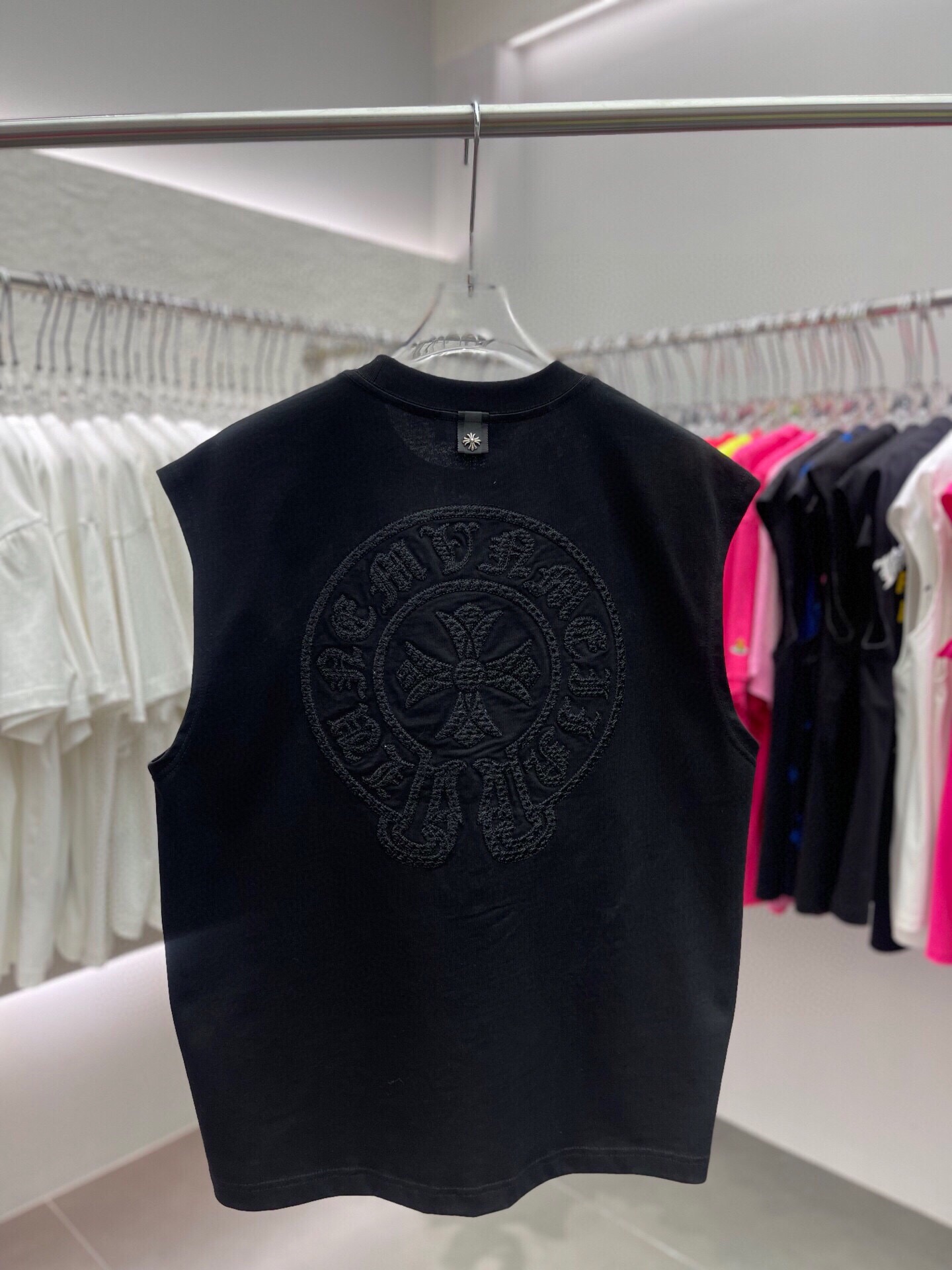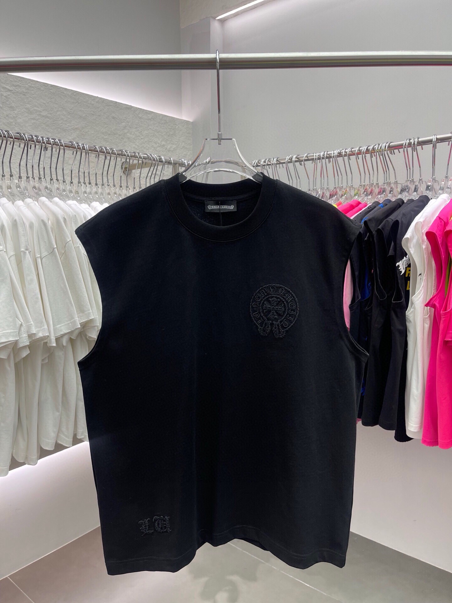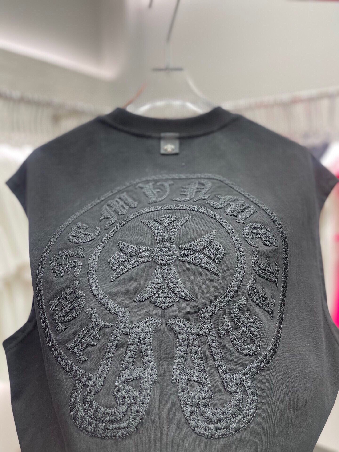 NO:3196832. The clothes is from Chrome Hearts designer.