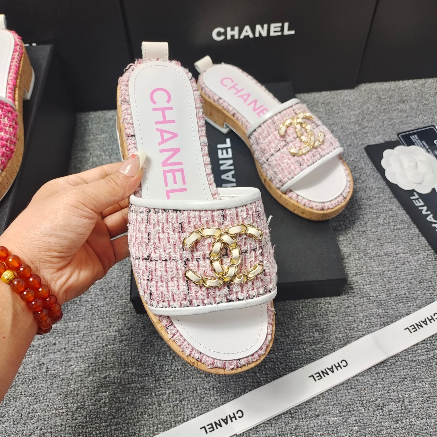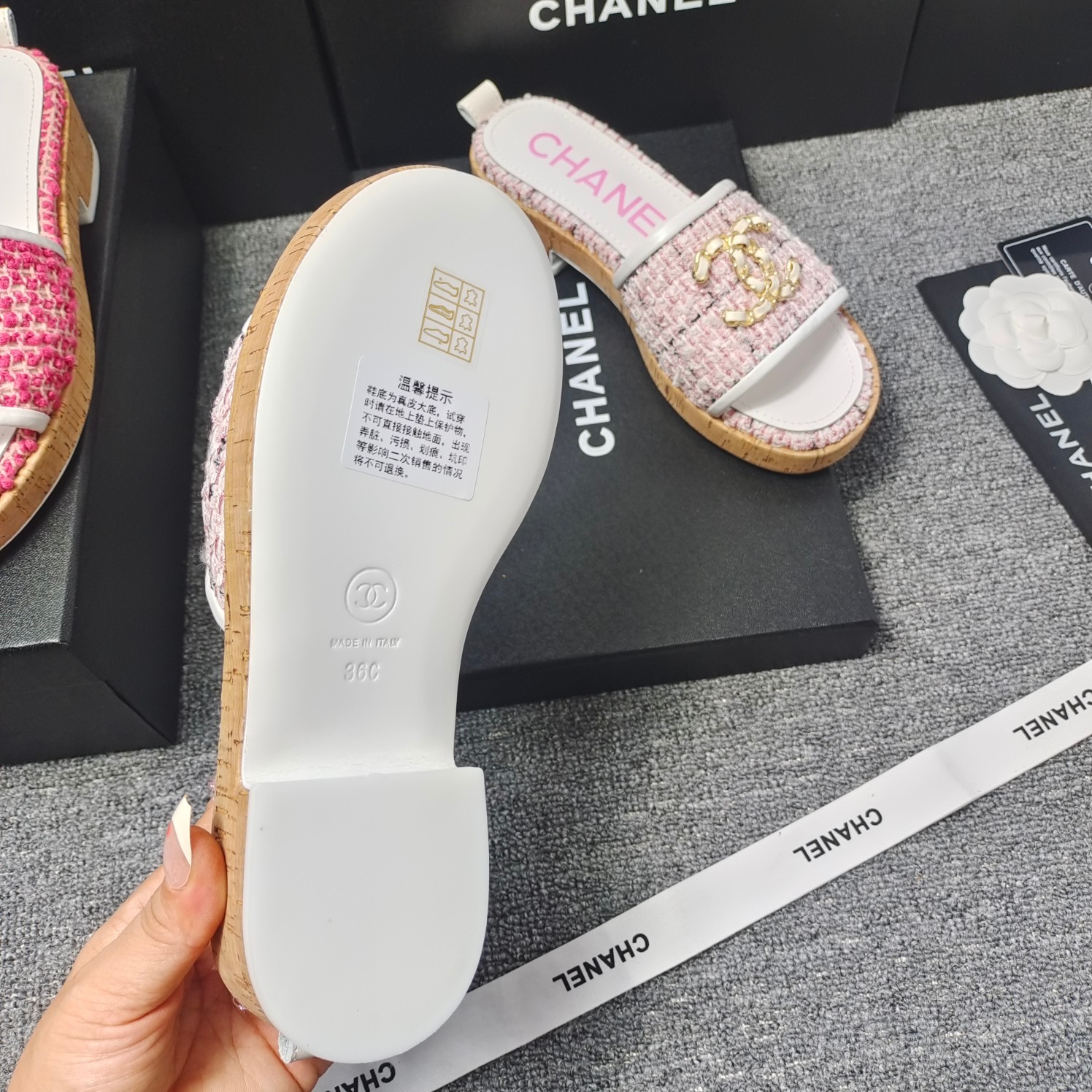 This shoes is AAAAA 1:1 quality (superb). Materials used are identical to the original ones. Chanel trademark marks are indistinguishable to the authentic. Photos take by actual shoes, what you receive will be 100% same with our photos.