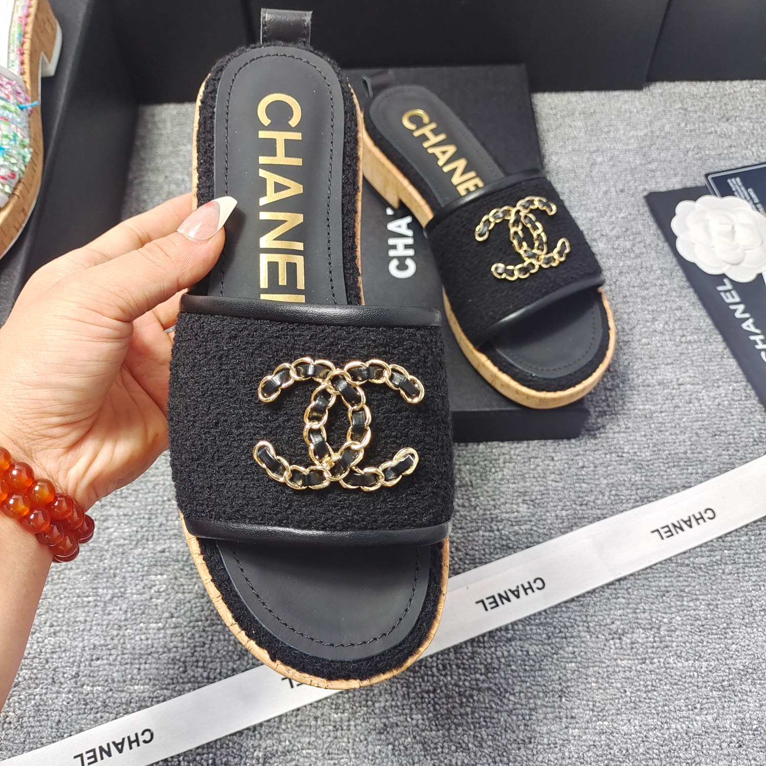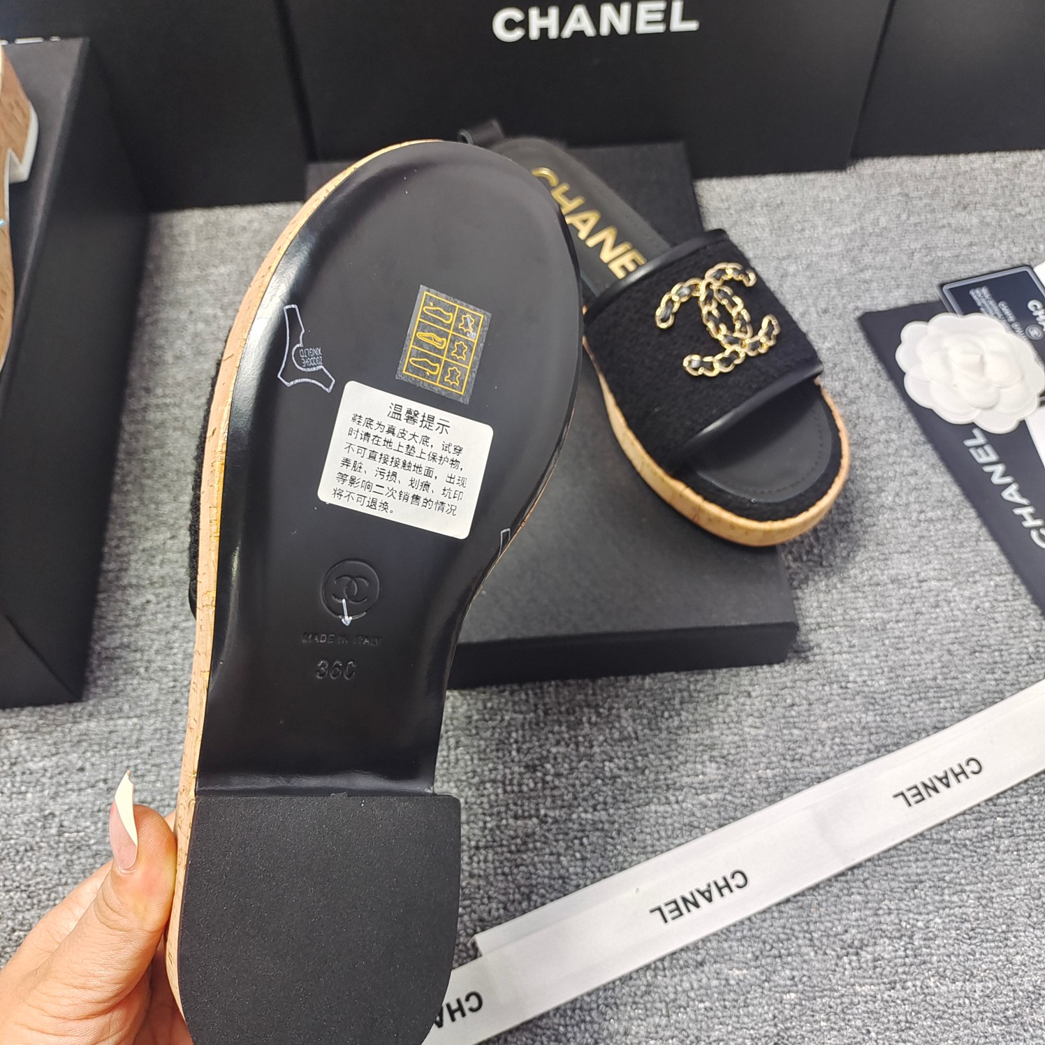 This shoes is AAAAA 1:1 quality (superb). Materials used are identical to the original ones. Chanel trademark marks are indistinguishable to the authentic. Photos take by actual shoes, what you receive will be 100% same with our photos.