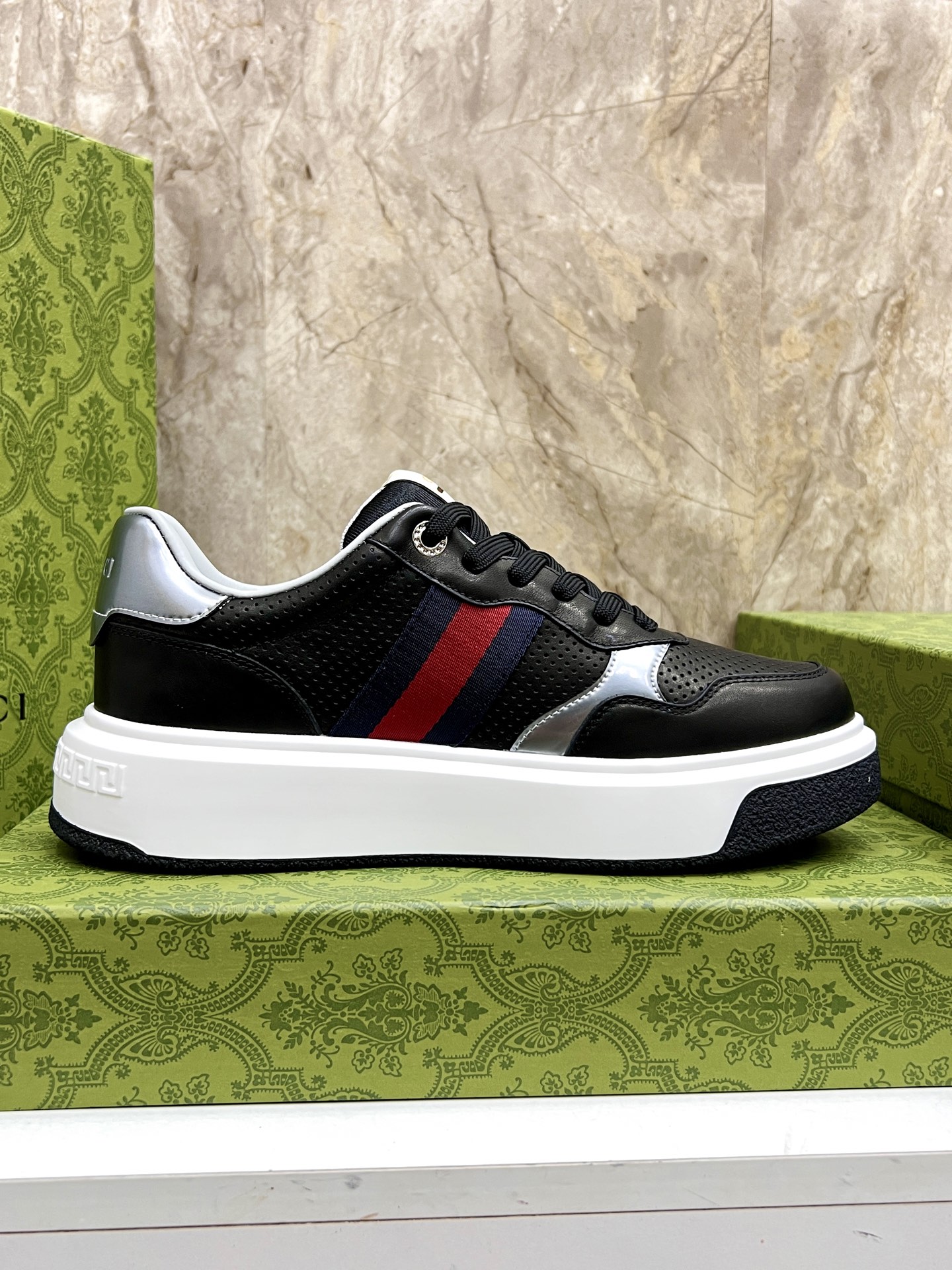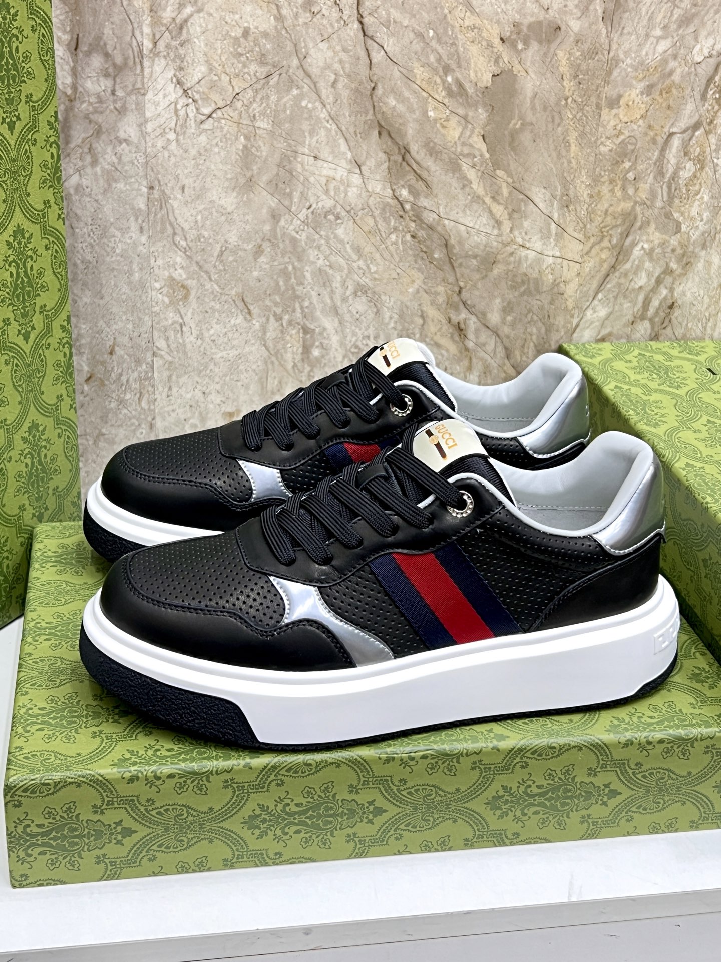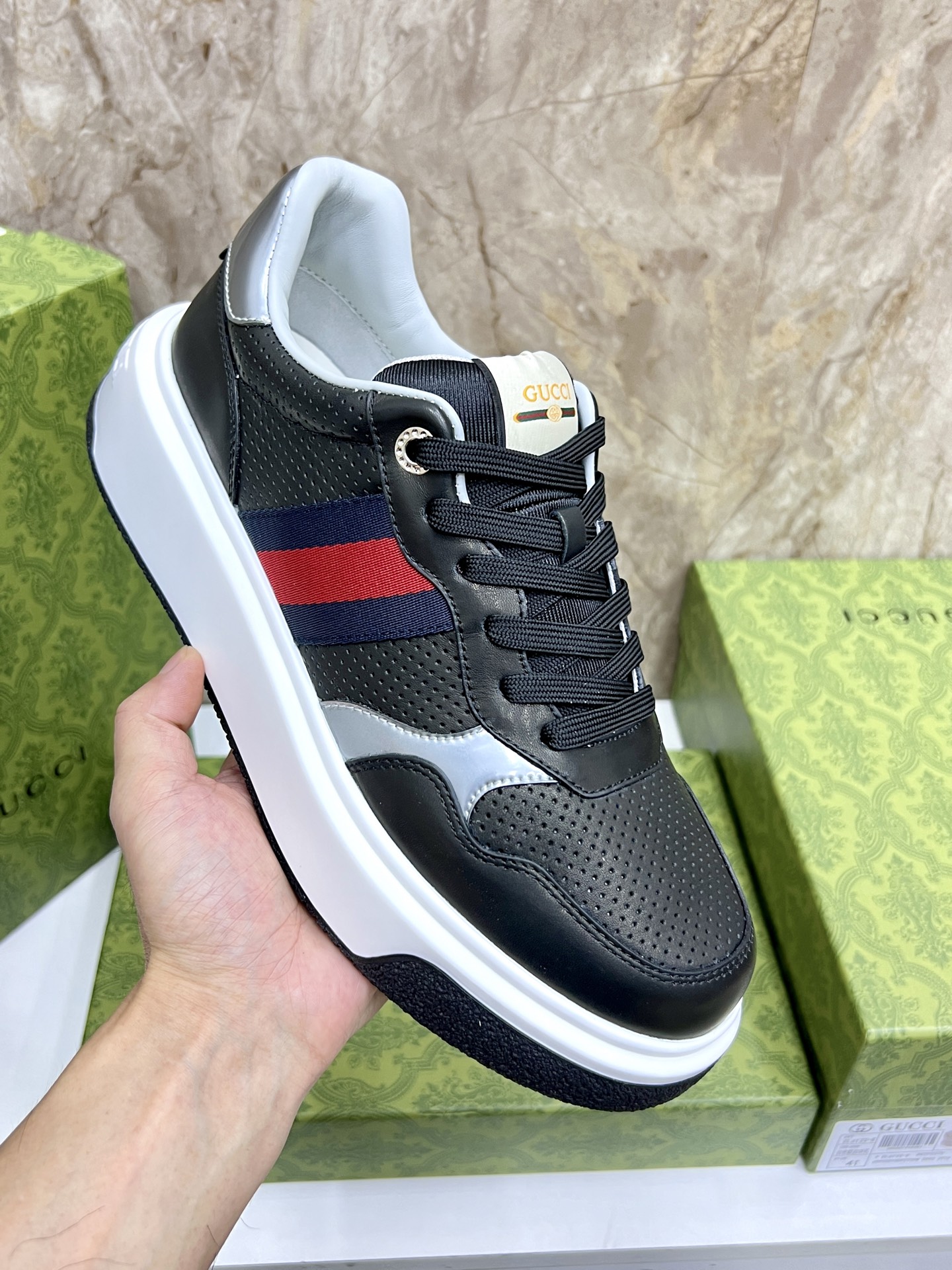 This shoes is AAAAA 1:1 quality (superb). Materials used are identical to the original ones. Gucci trademark marks are indistinguishable to the authentic. Photos take by actual shoes, what you receive will be 100% same with our photos.