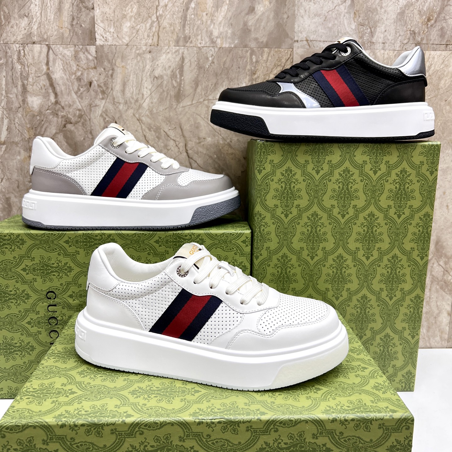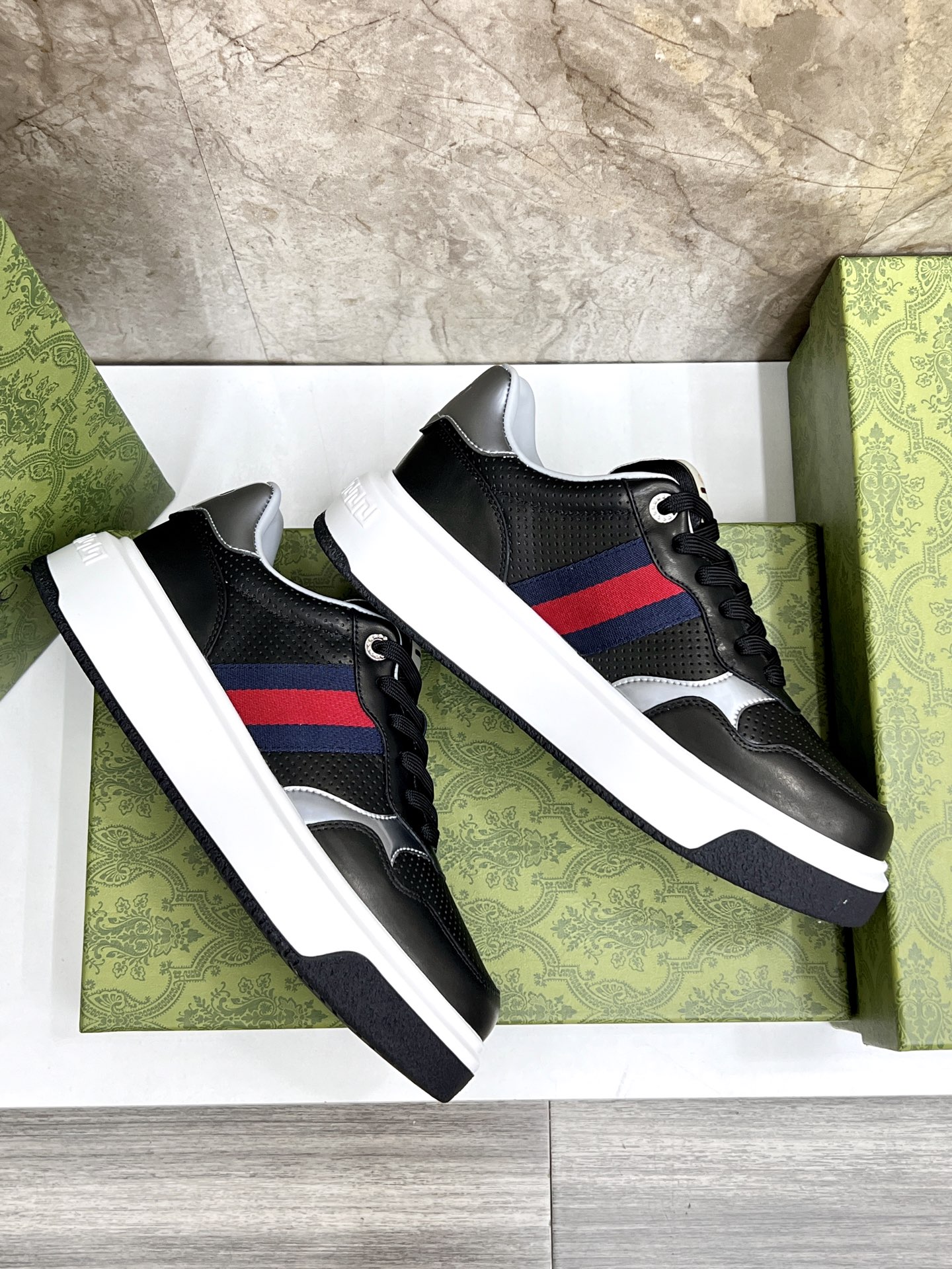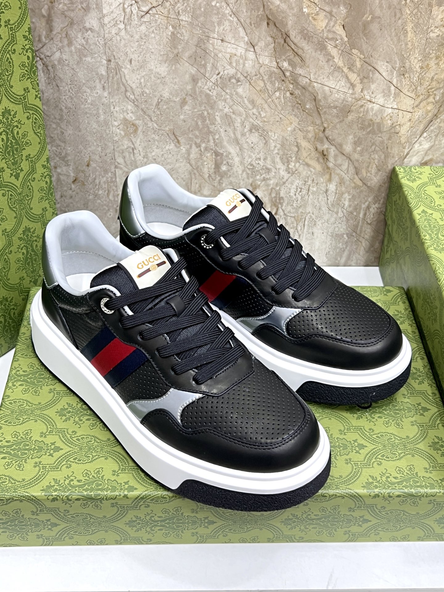 This shoes is AAAAA 1:1 quality (superb). Materials used are identical to the original ones. Gucci trademark marks are indistinguishable to the authentic. Photos take by actual shoes, what you receive will be 100% same with our photos.