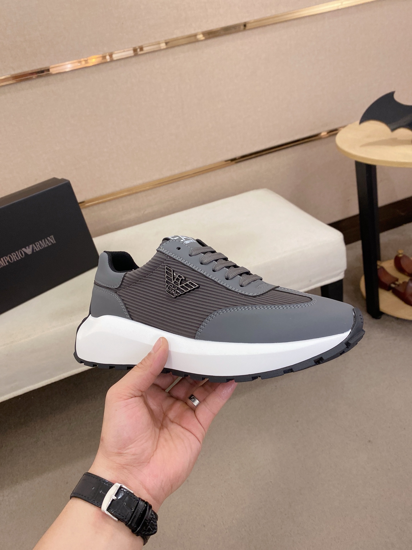 This shoes is AAAAA 1:1 quality (superb). Materials used are identical to the original ones. Armani trademark marks are indistinguishable to the authentic. Photos take by actual shoes, what you receive will be 100% same with our photos.