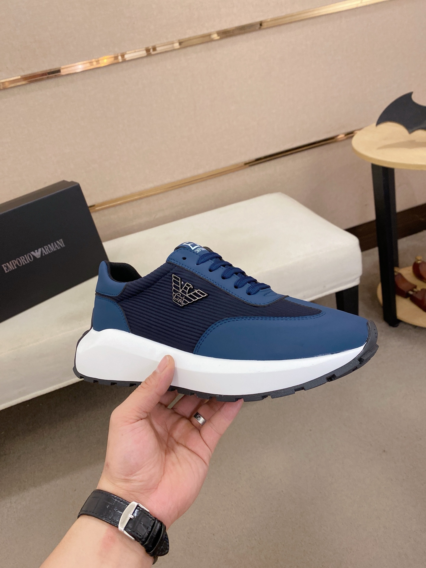 This shoes is AAAAA 1:1 quality (superb). Materials used are identical to the original ones. Armani trademark marks are indistinguishable to the authentic. Photos take by actual shoes, what you receive will be 100% same with our photos.