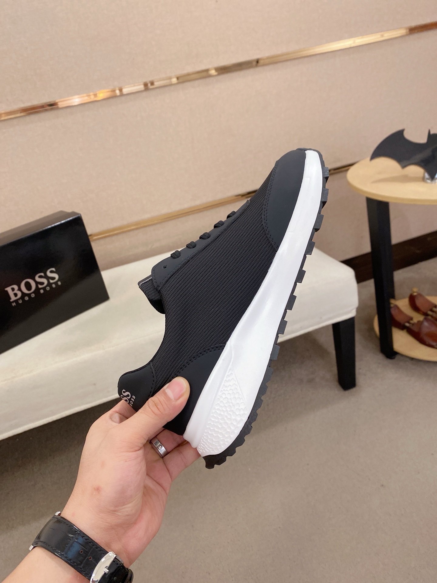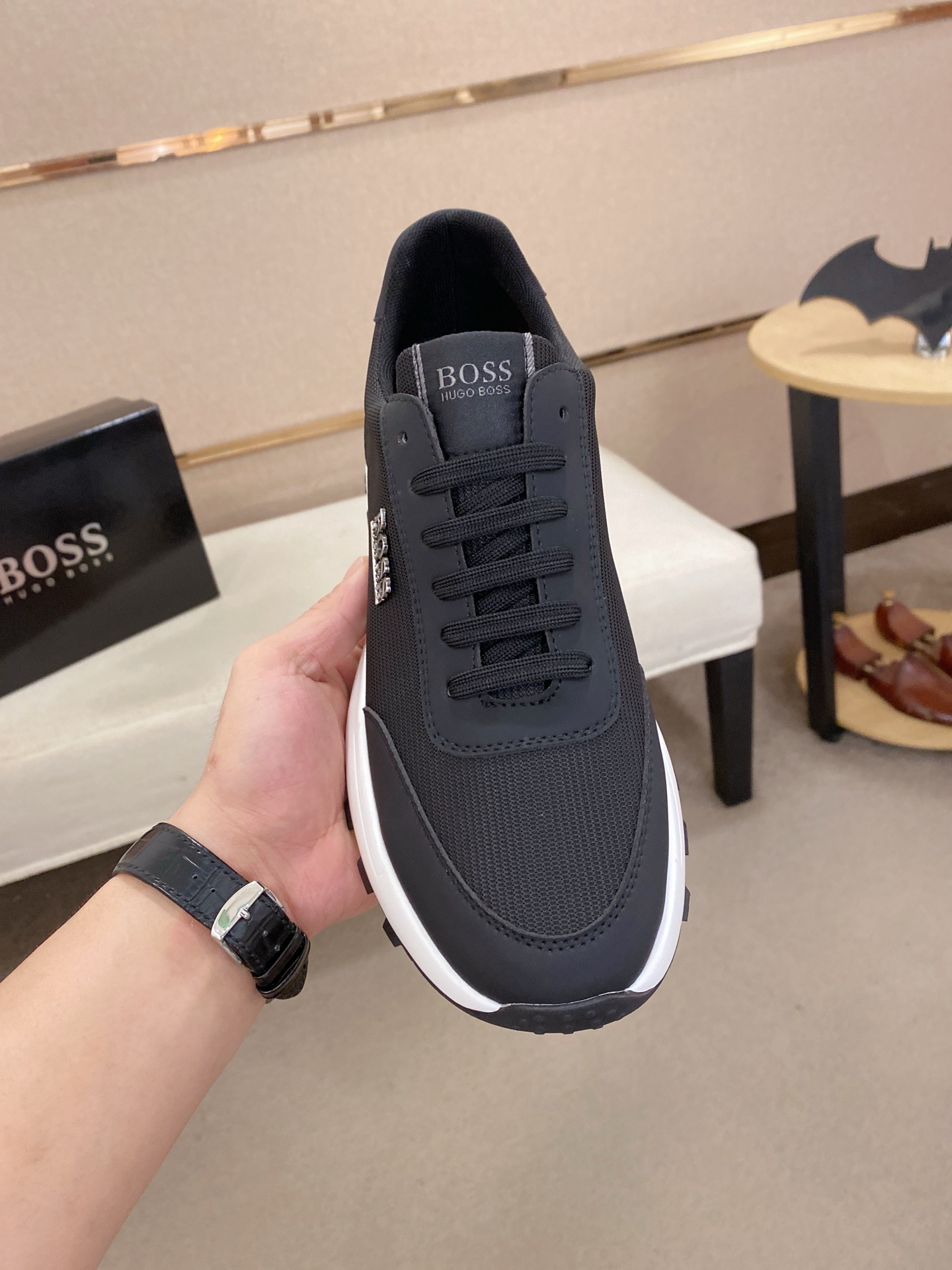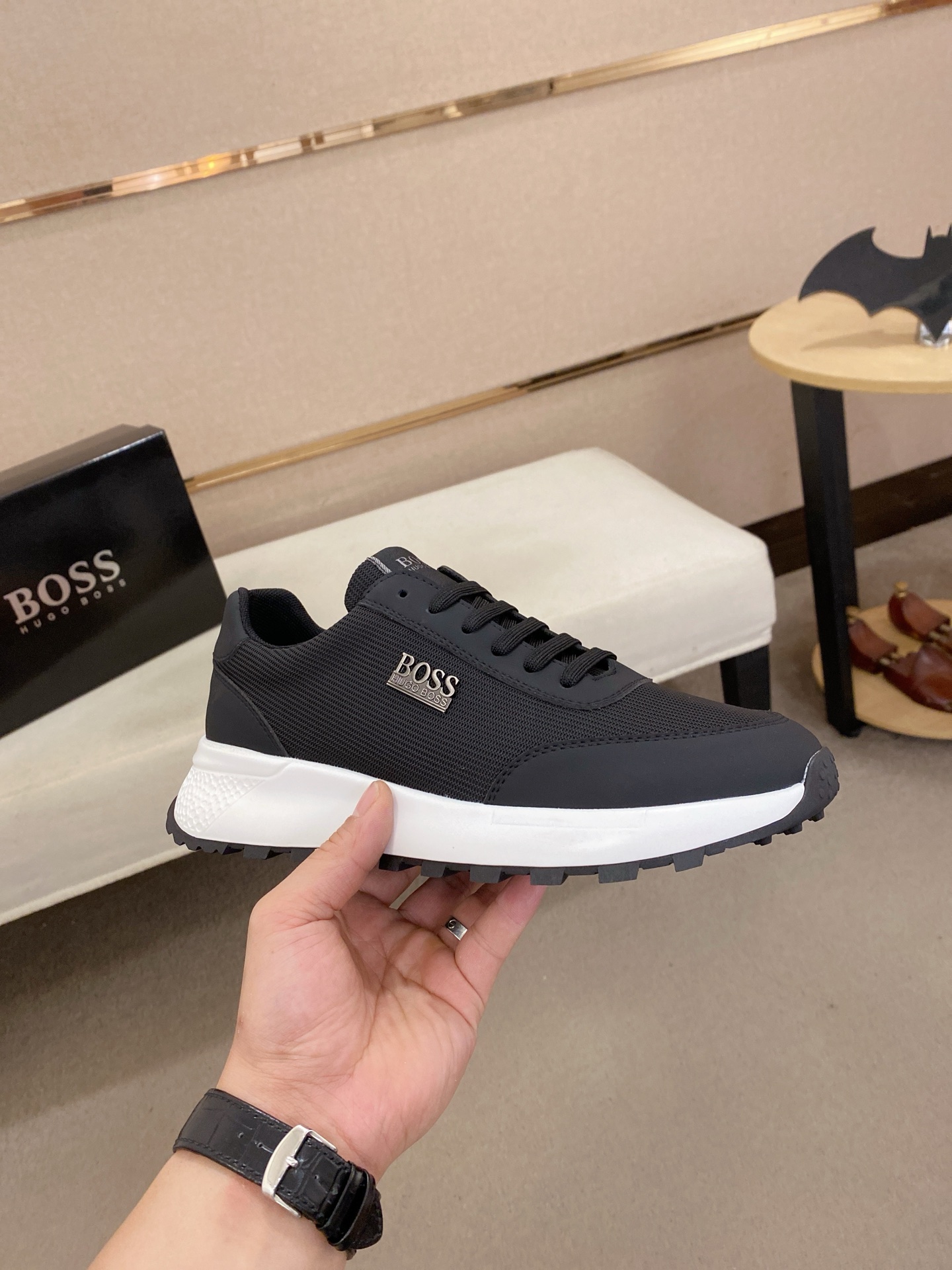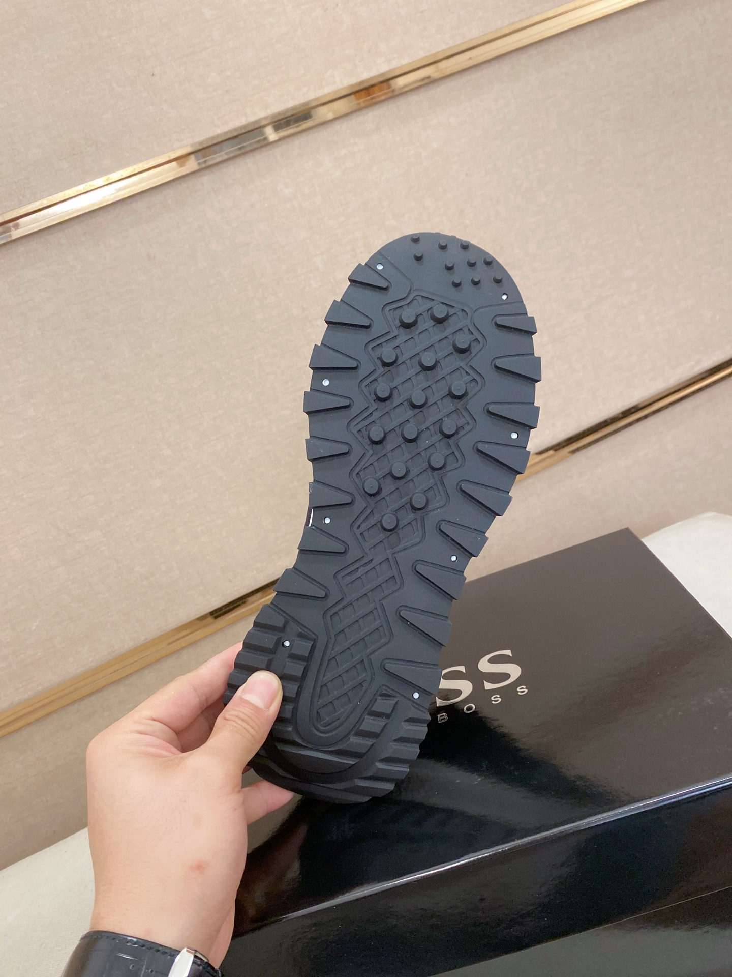 This shoes is AAAAA 1:1 quality (superb). Materials used are identical to the original ones. BOSS trademark marks are indistinguishable to the authentic. Photos take by actual shoes, what you receive will be 100% same with our photos.