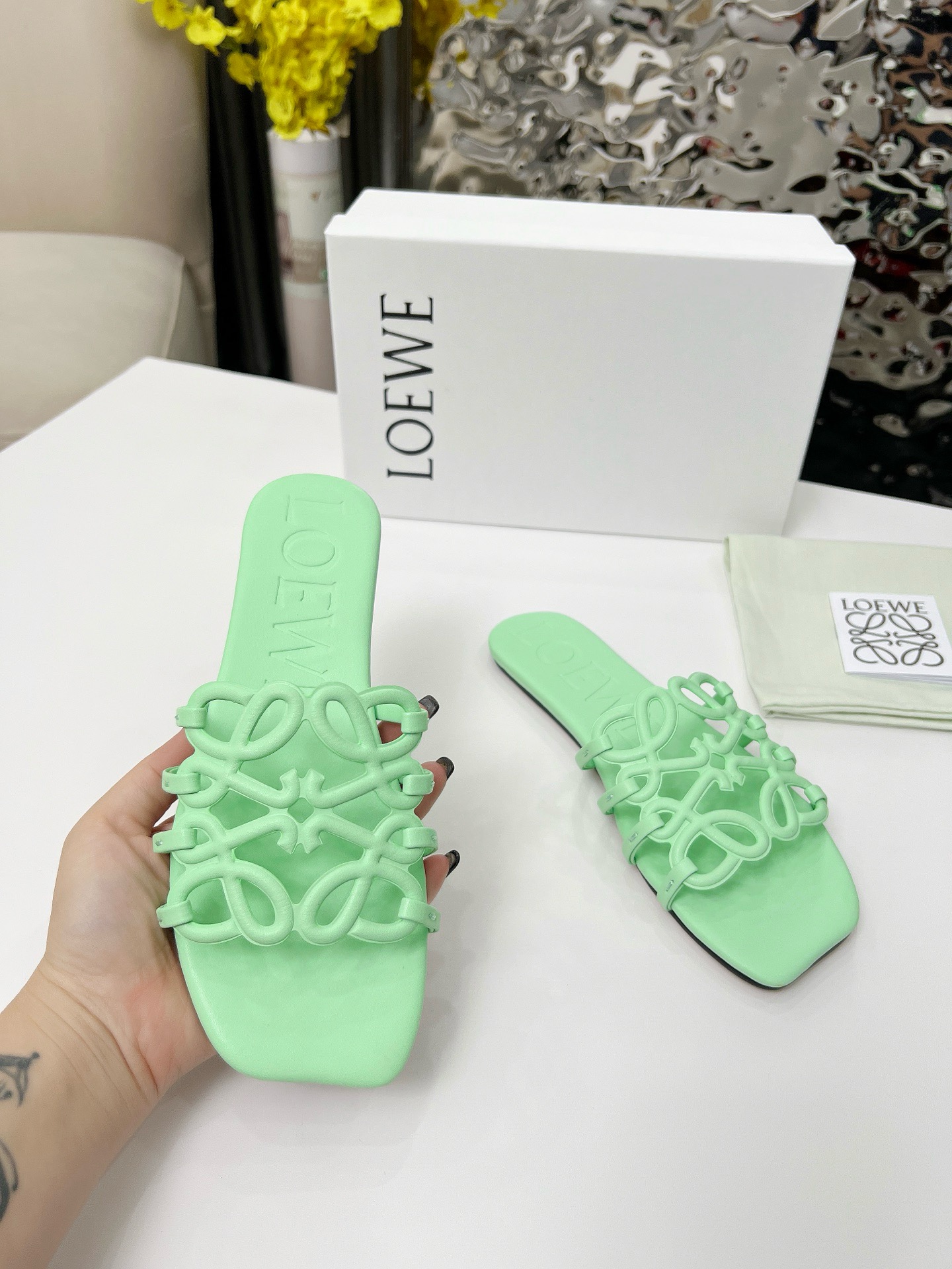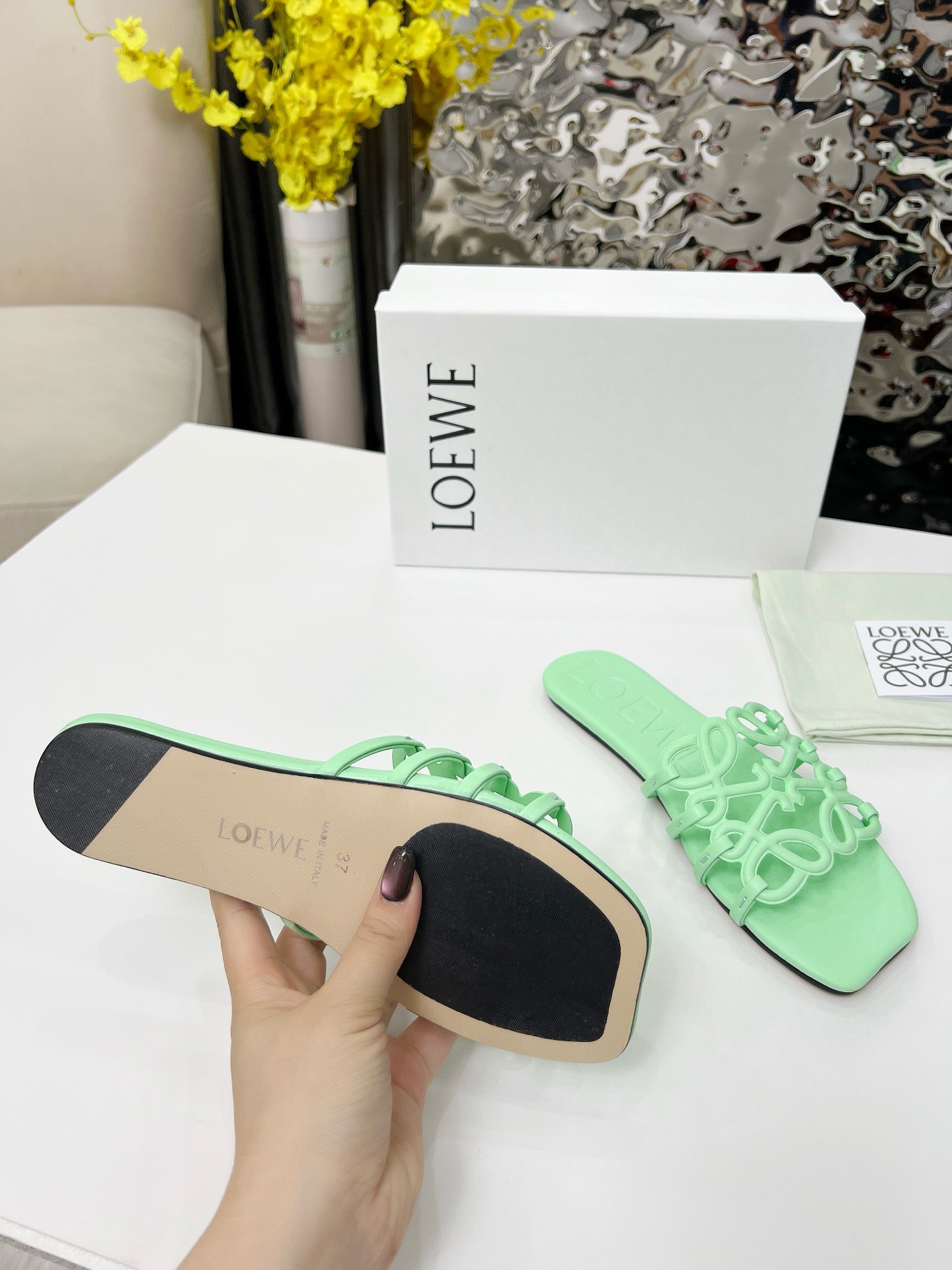 This shoes is AAAAA 1:1 quality (superb). Materials used are identical to the original ones. Loewe trademark marks are indistinguishable to the authentic. Photos take by actual shoes, what you receive will be 100% same with our photos.