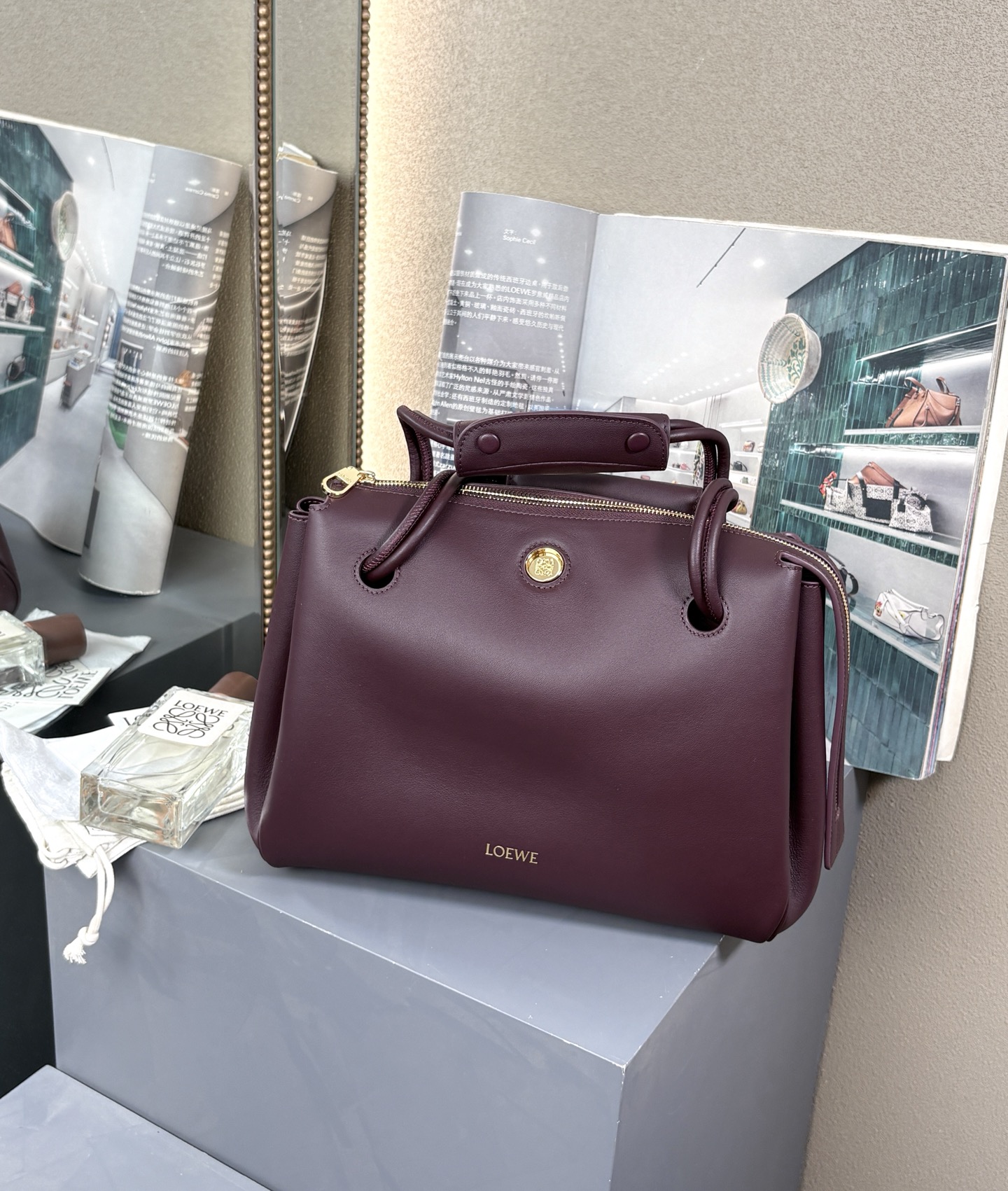 NO:3208514. The bags is from Loewe designer. Measurements : 28.5×11×23 cm (11.2"×4.3"×9.1" inches) . (Factories : Mango)